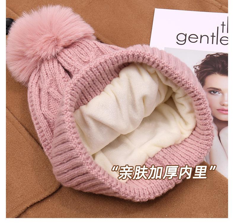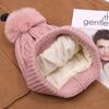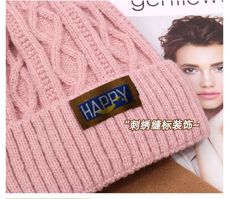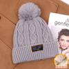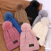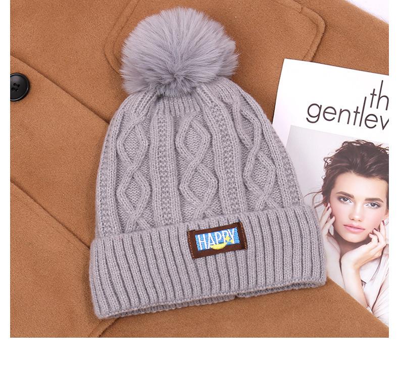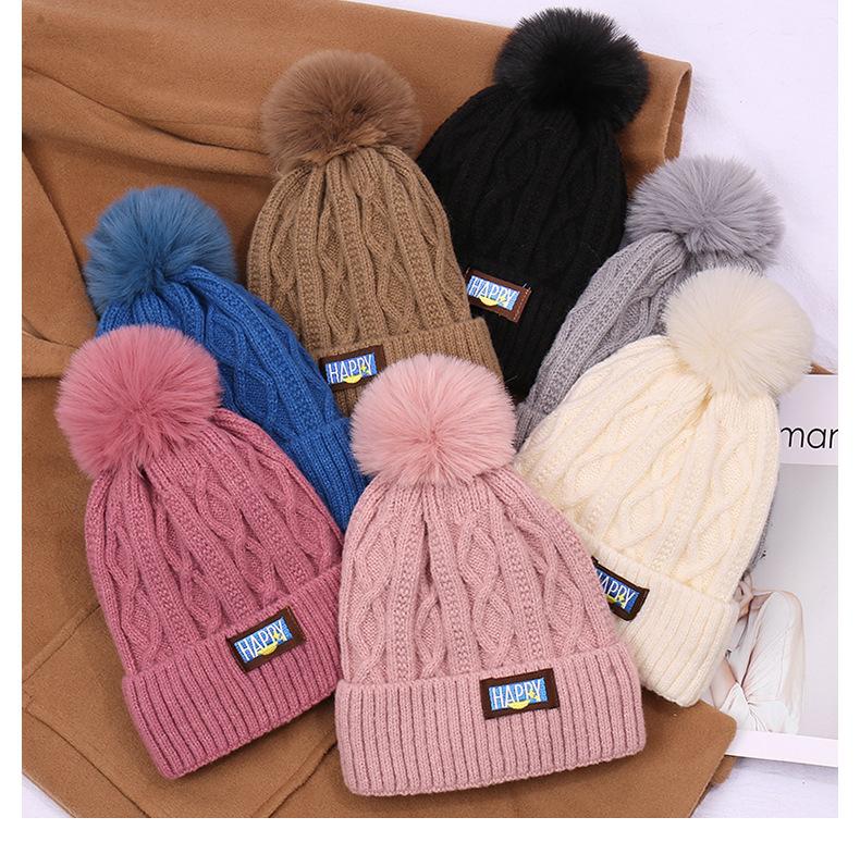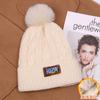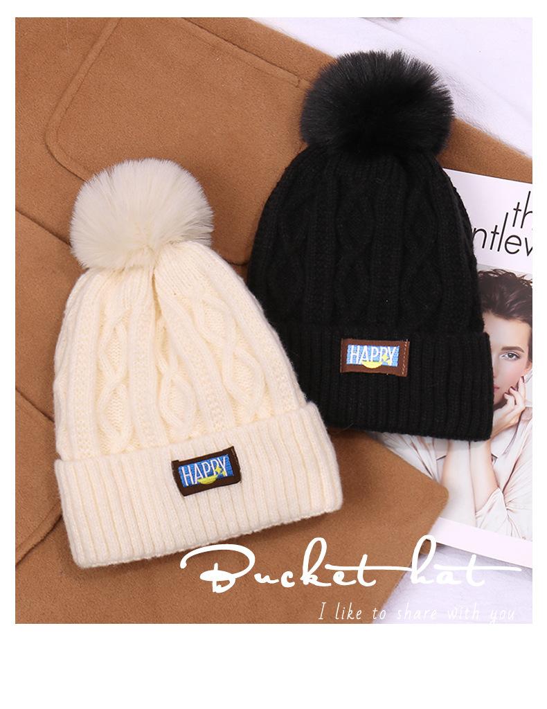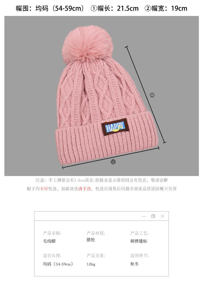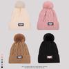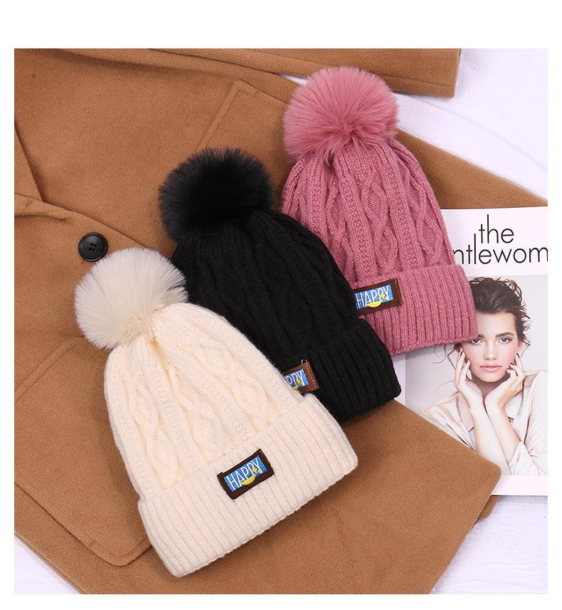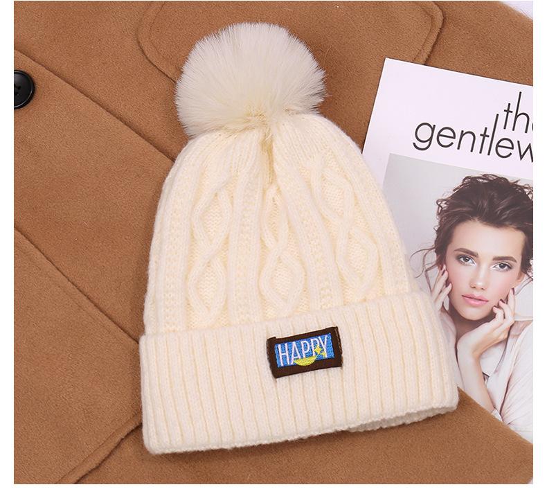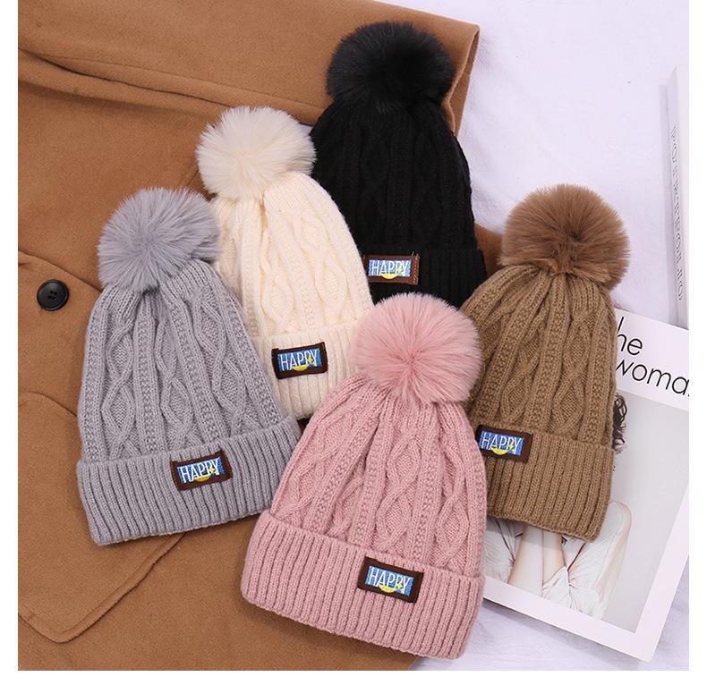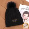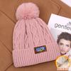 Gorro de lana con bola de pelo para mujer, gorro de punto con letras bordadas, estilo bohemio, cálido y grueso, para otoño e invierno