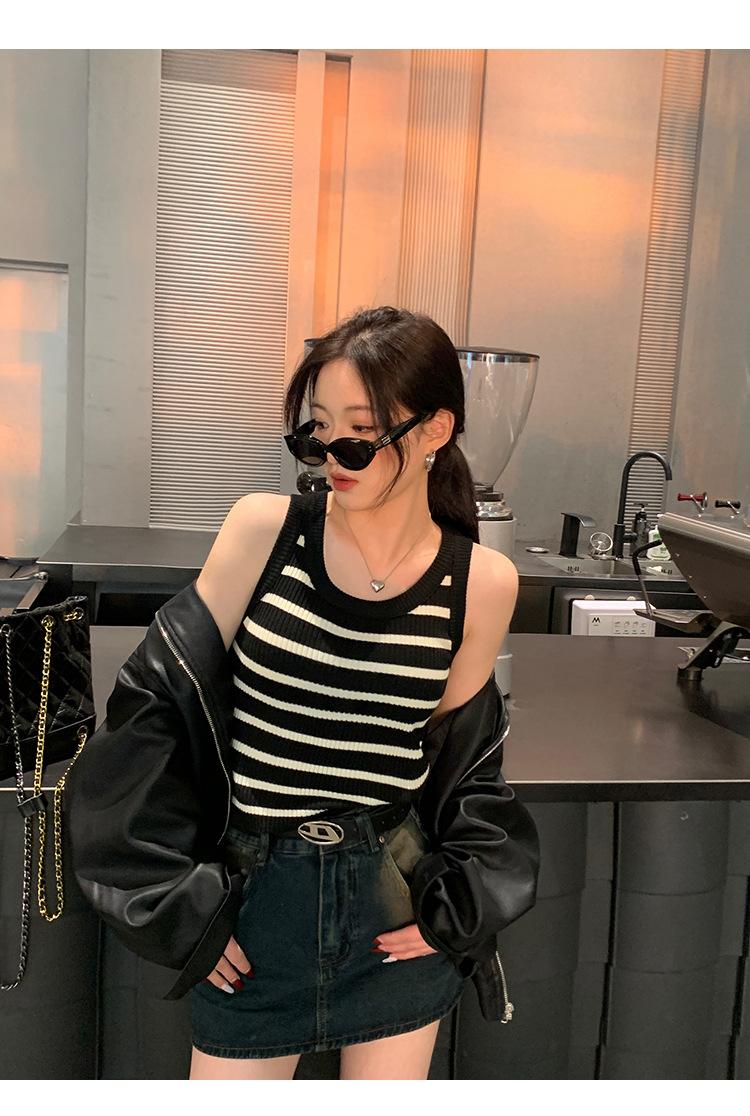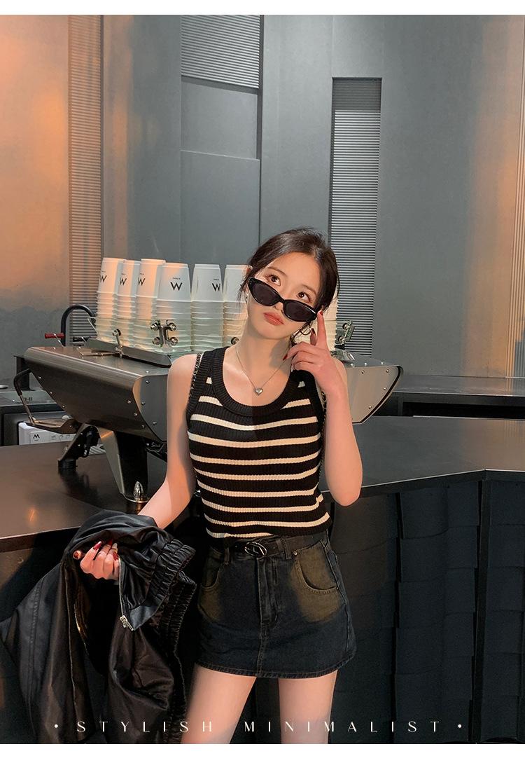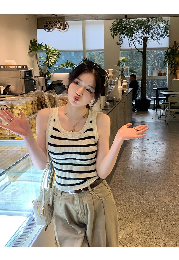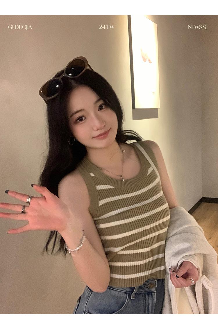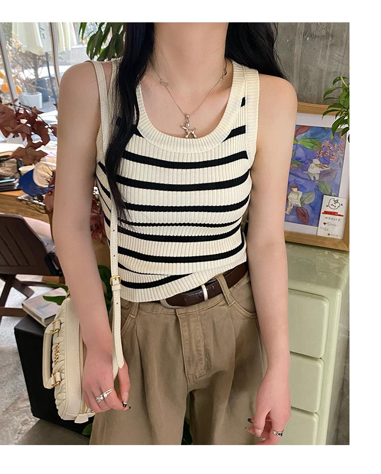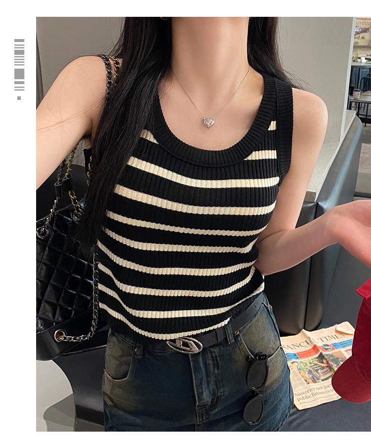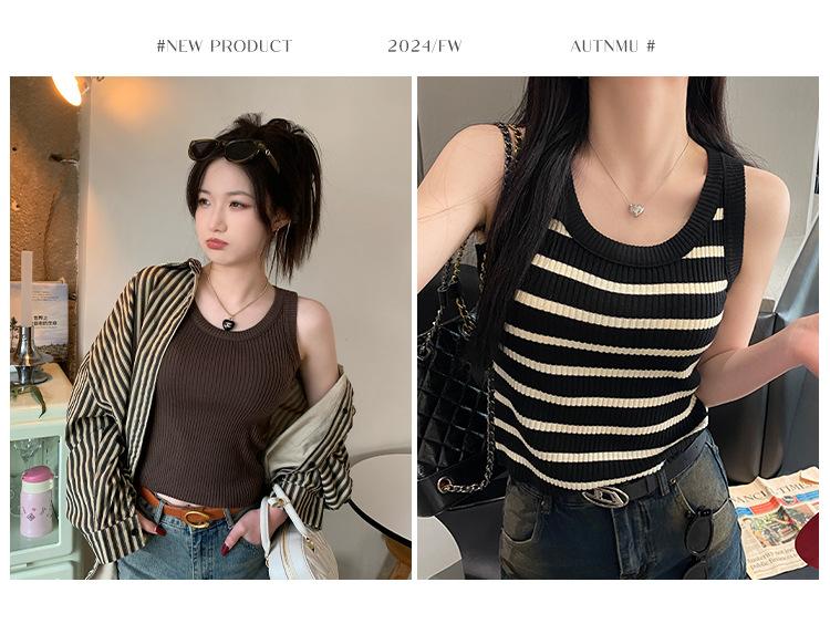 Chaleco de punto a rayas para mujer, nuevo estilo 2024, con tirantes interiores y exterior, diseño de nicho, base negra sin mangas.