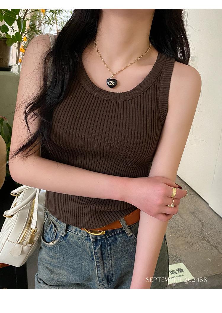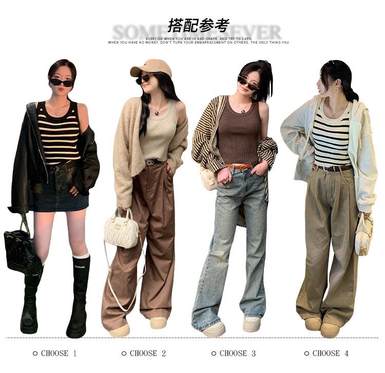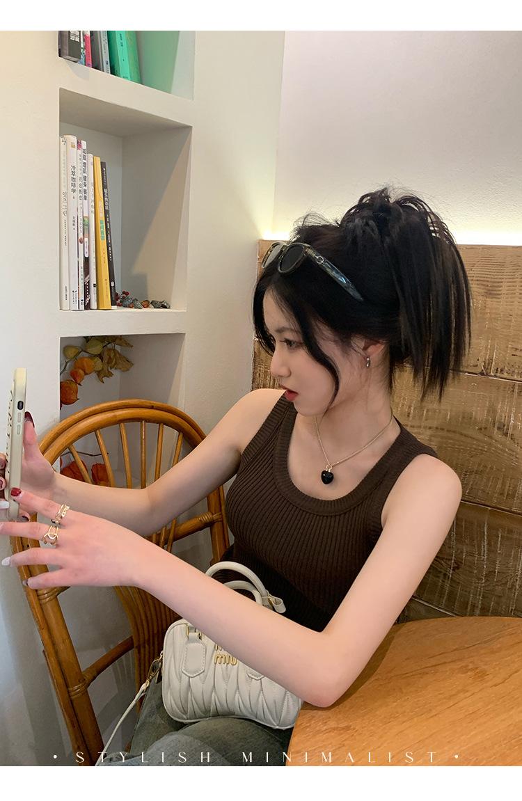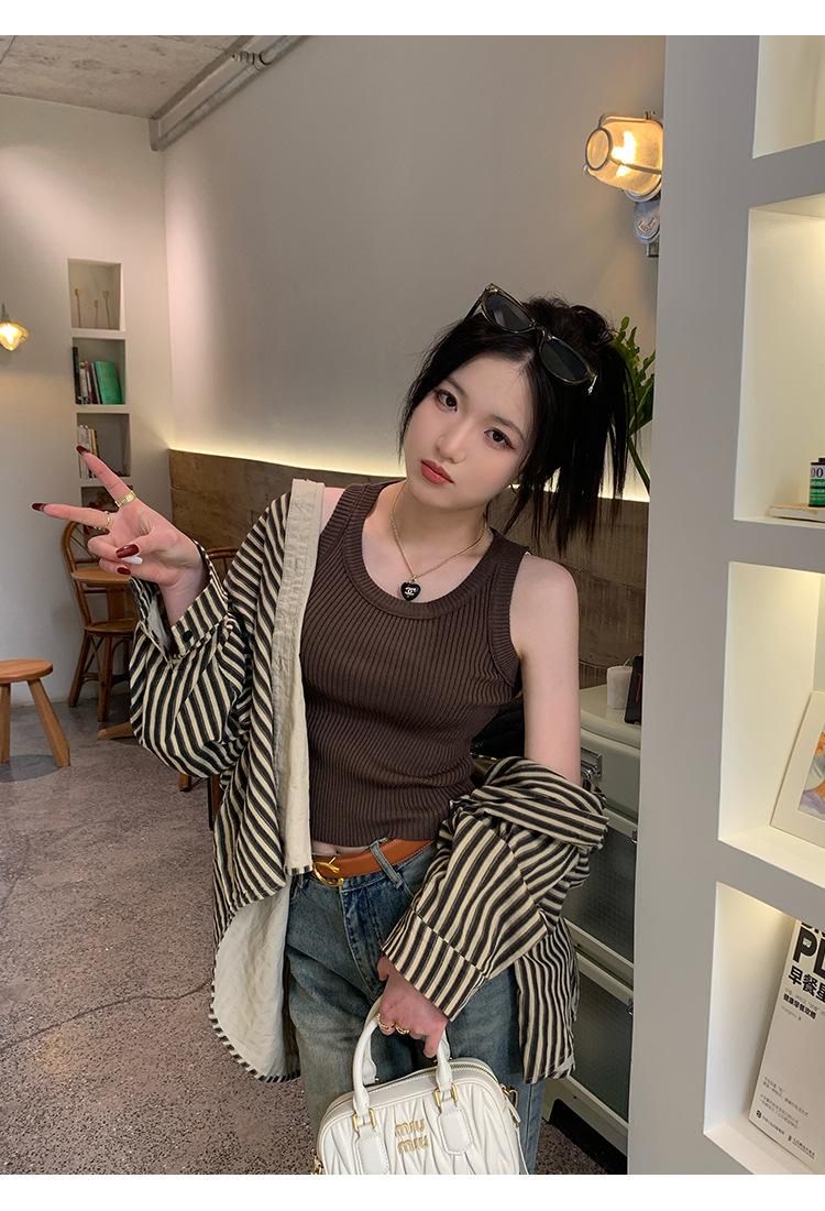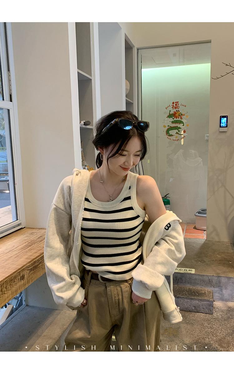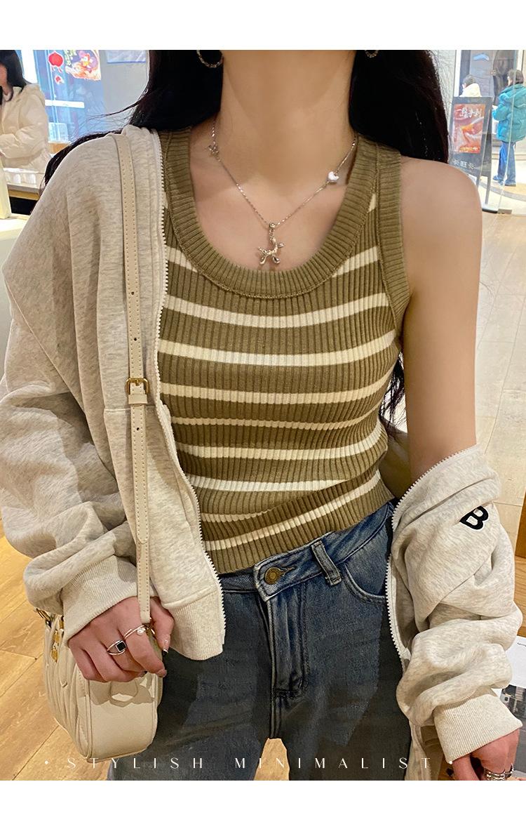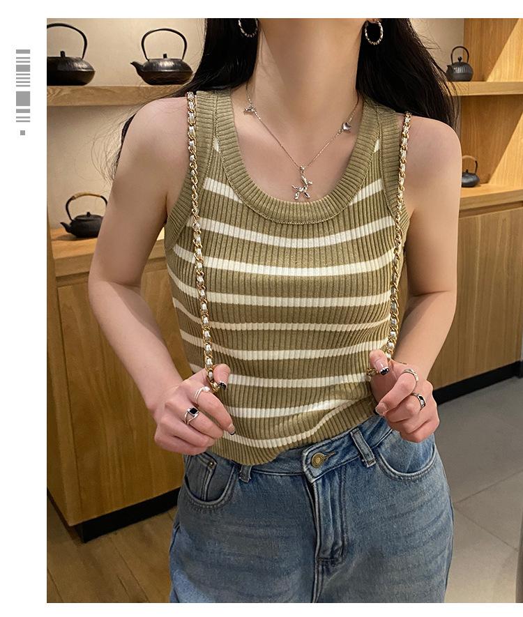 Chaleco de punto a rayas para mujer, nuevo estilo 2024, con tirantes interiores y exterior, diseño de nicho, base negra sin mangas.