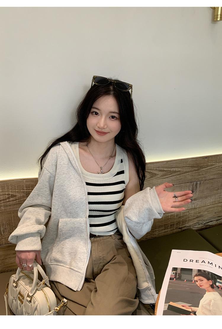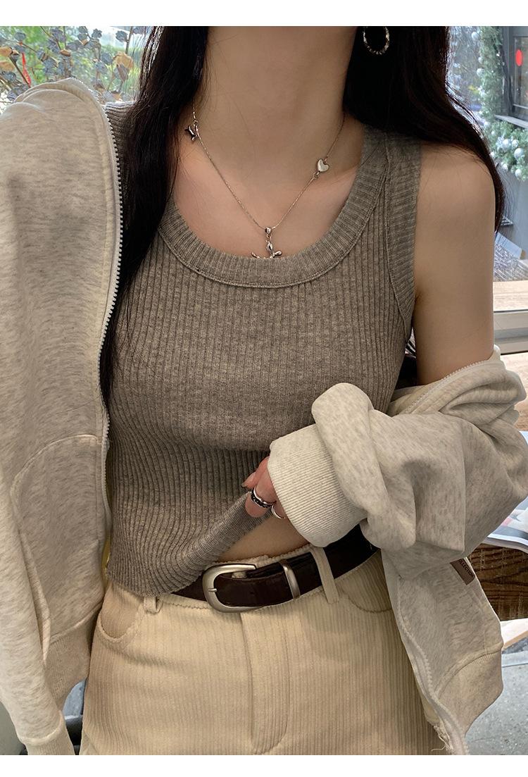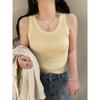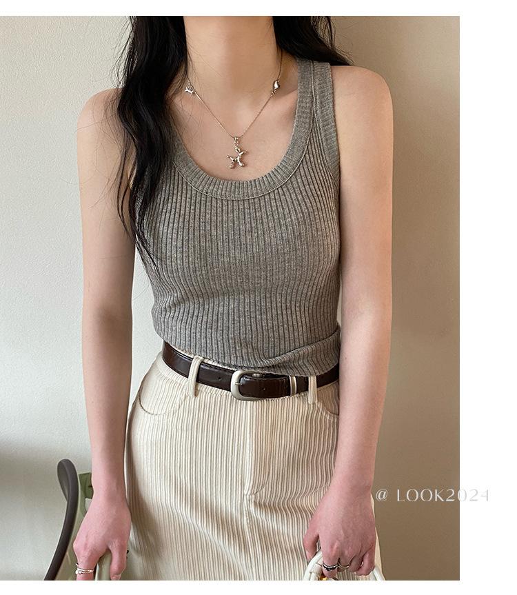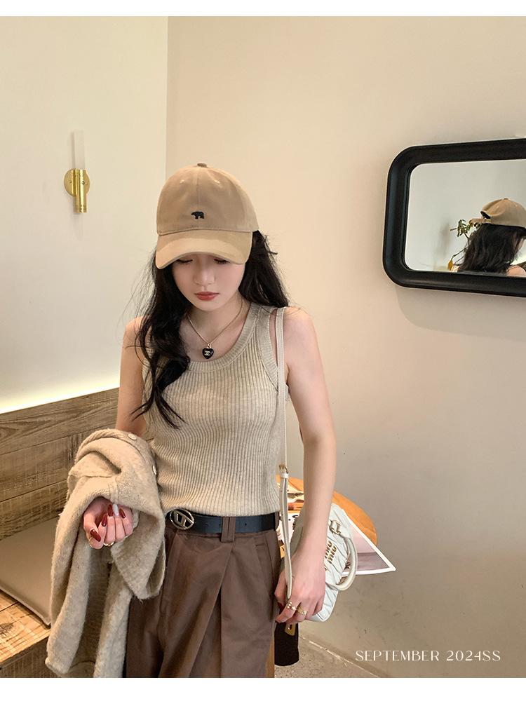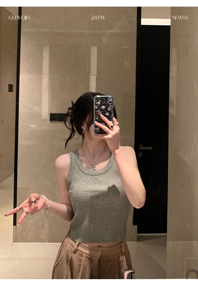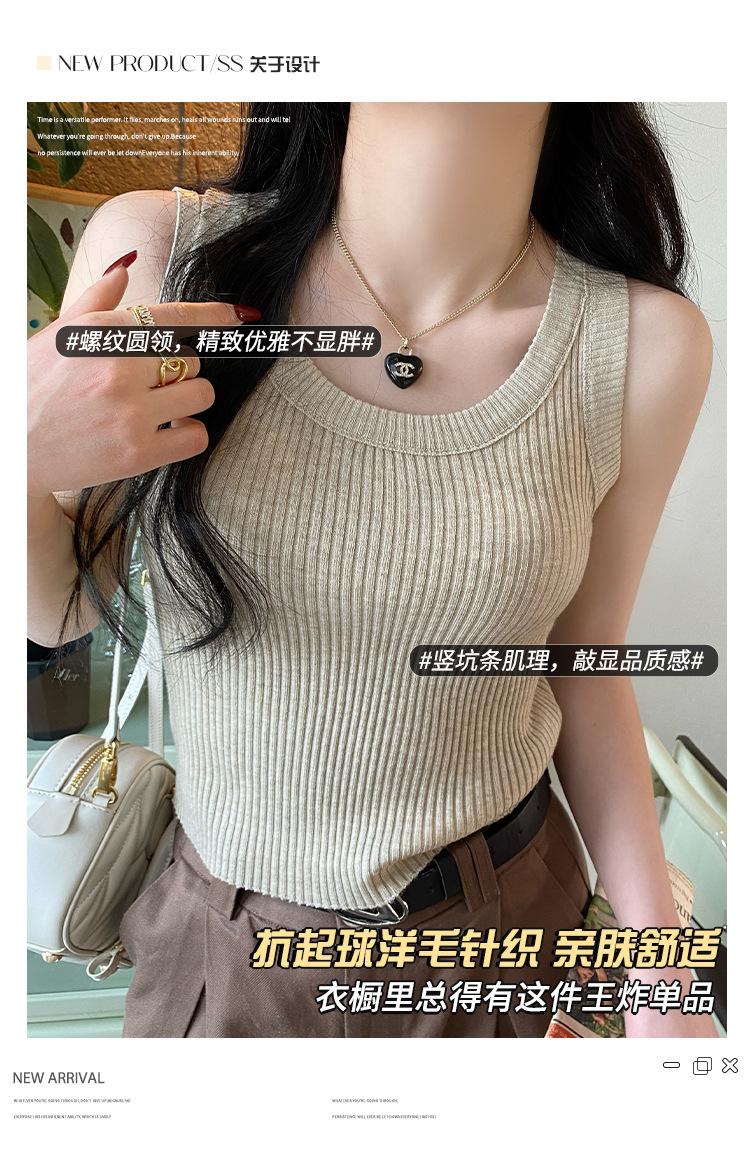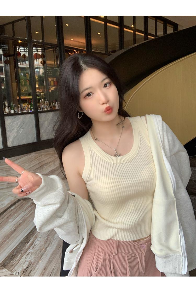 Chaleco de punto a rayas para mujer, nuevo estilo 2024, con tirantes interiores y exterior, diseño de nicho, base negra sin mangas.
