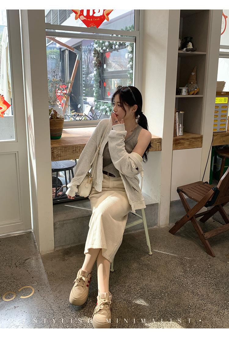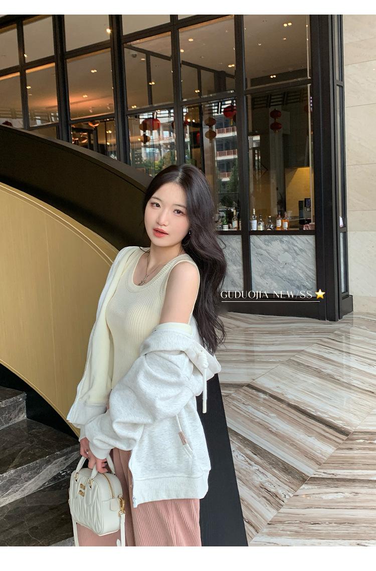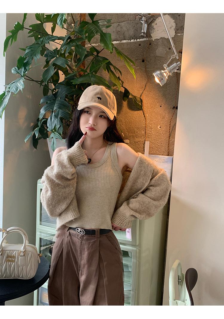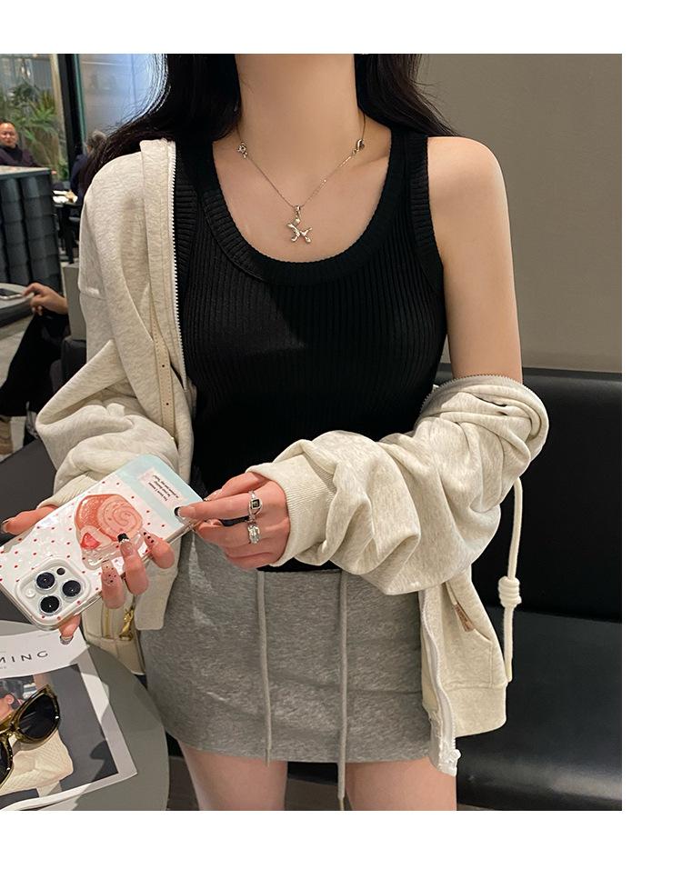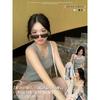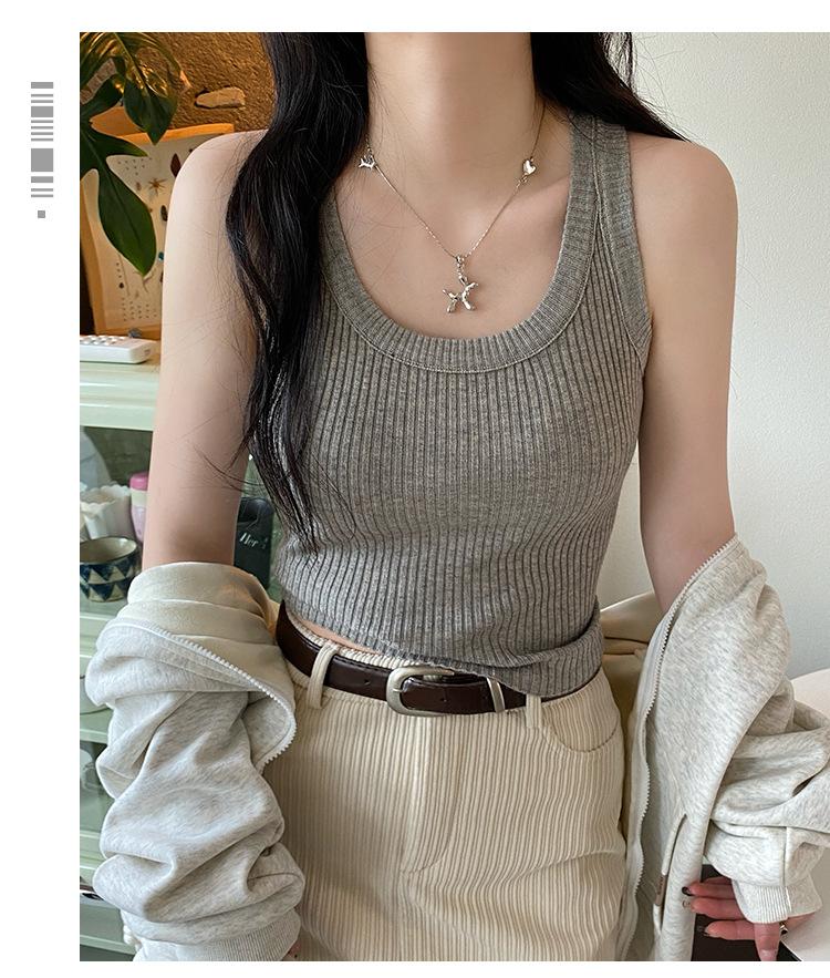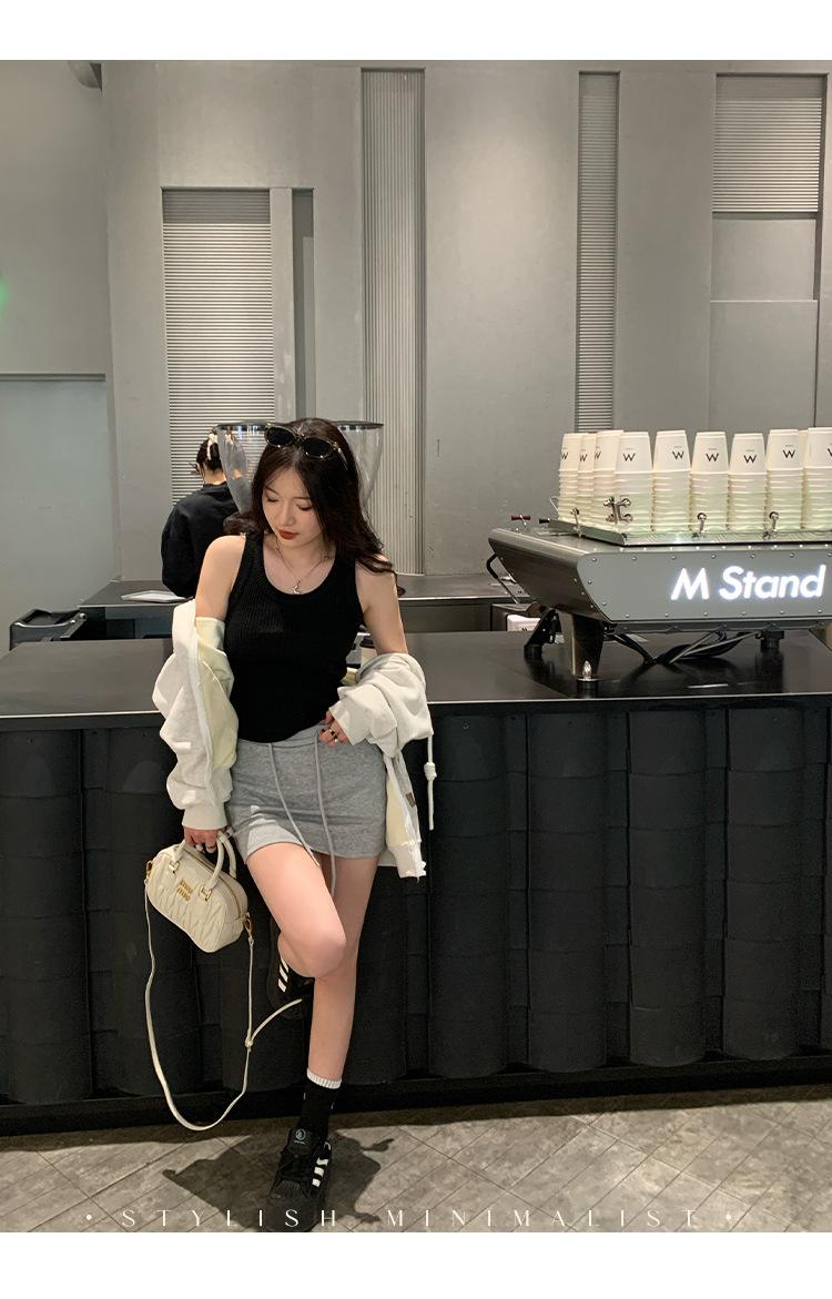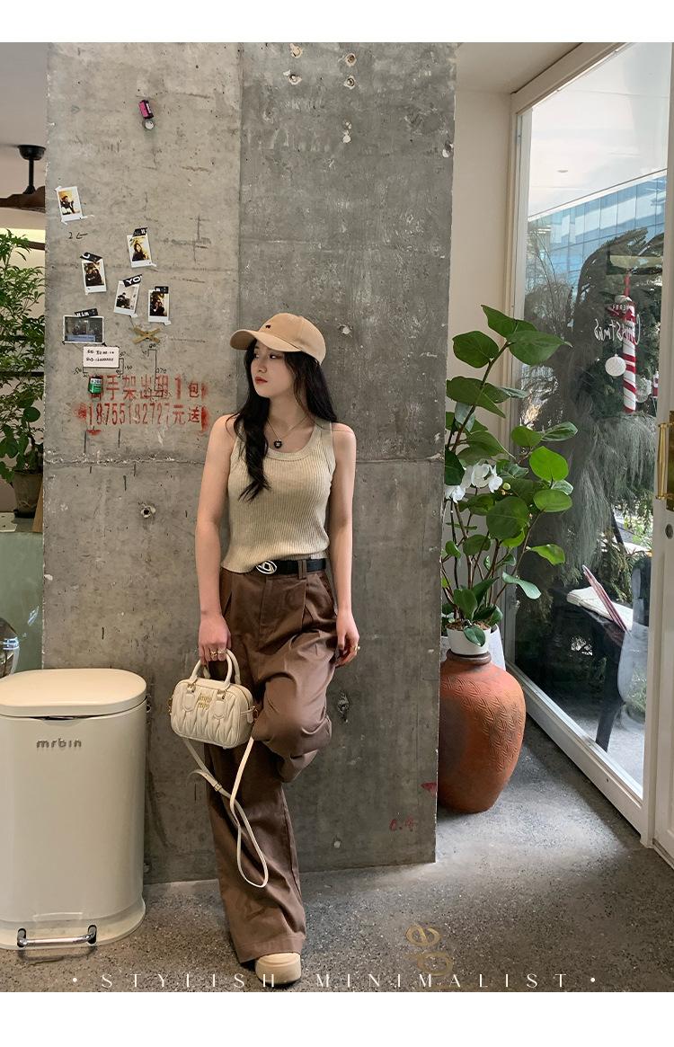 Chaleco de punto a rayas para mujer, nuevo estilo 2024, con tirantes interiores y exterior, diseño de nicho, base negra sin mangas.
