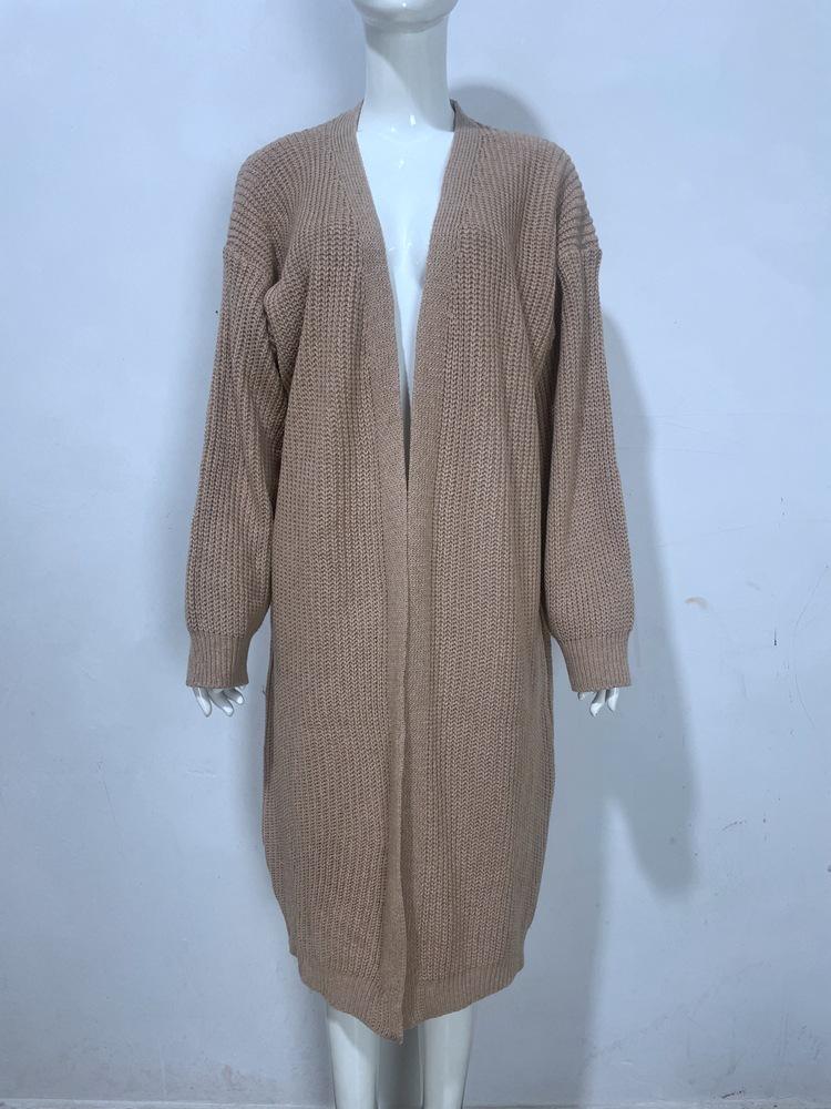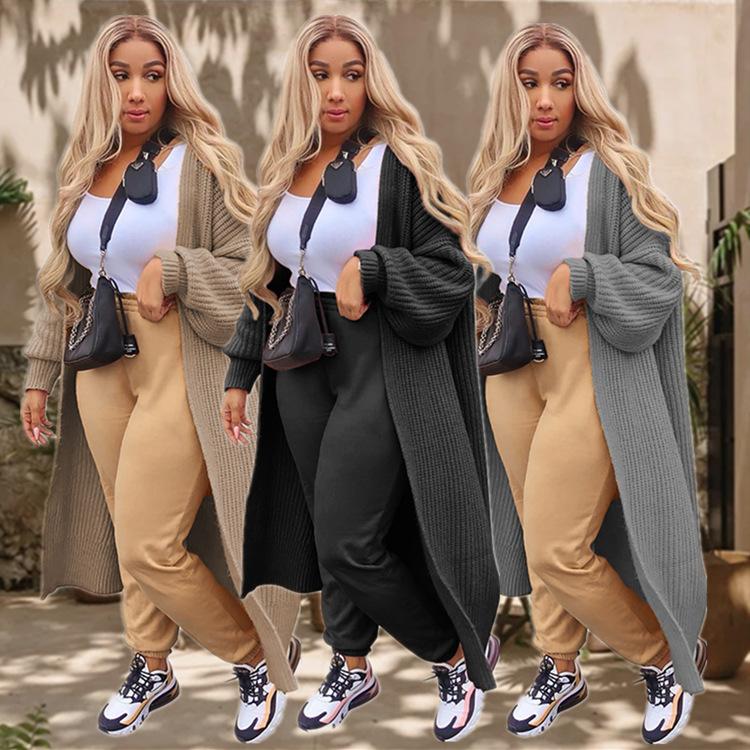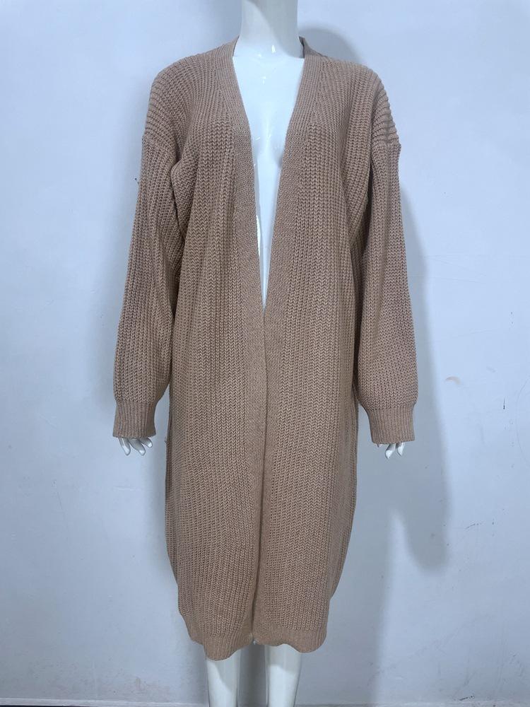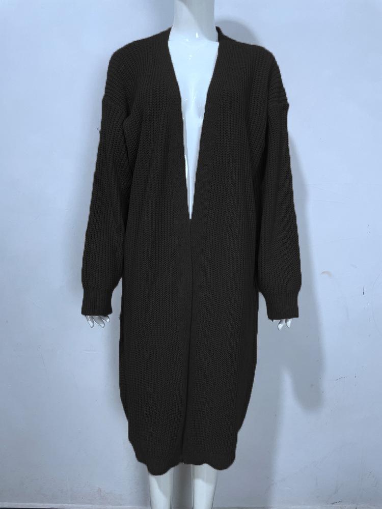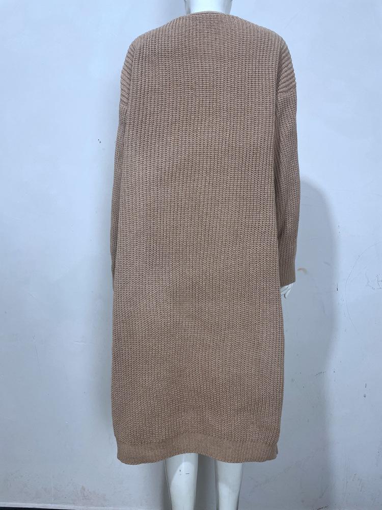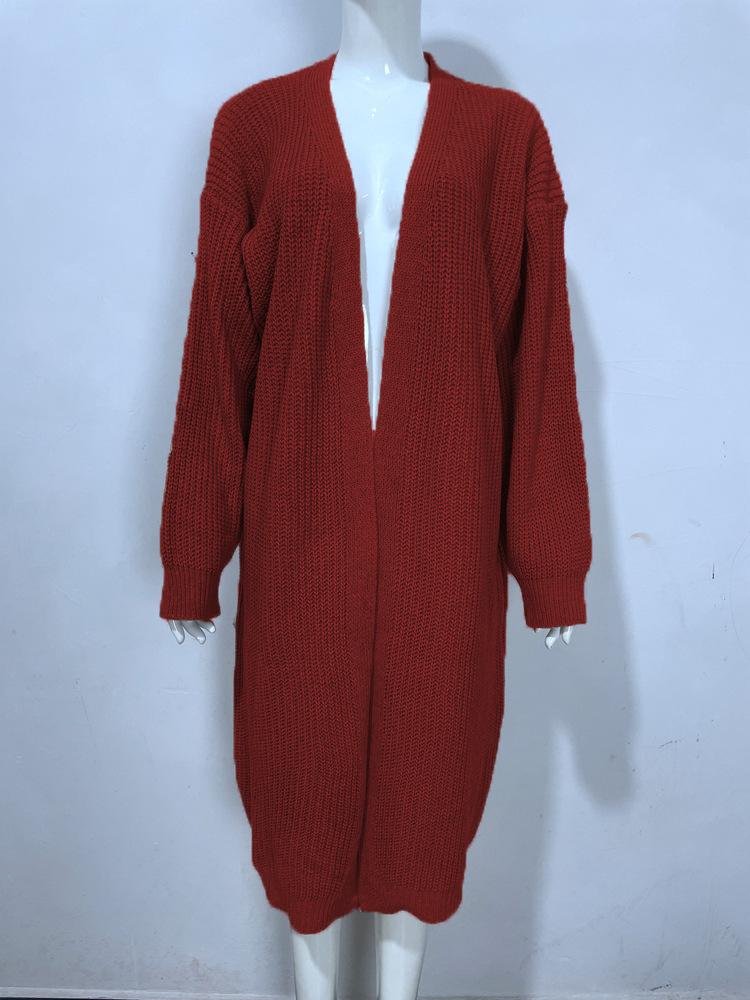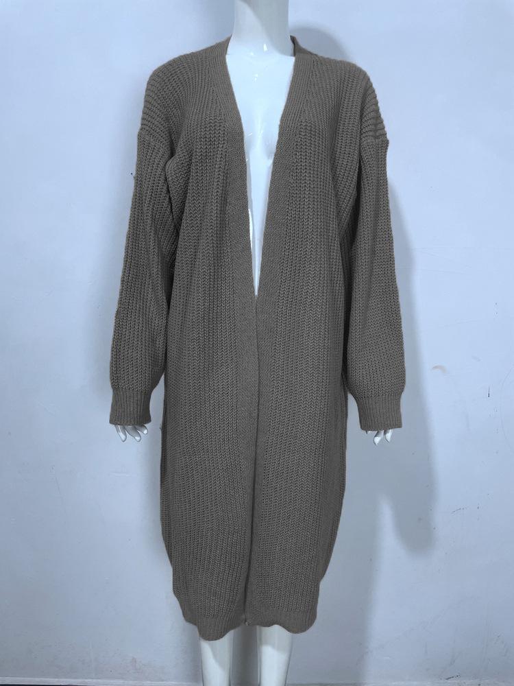 Comercio Exterior Transfronterizo Otoño e Invierno Nuevo Cárdigan de Punto de Largo Medio para Mujer Color Puro Cuello en V Manga Larga Color Puro Suéter Talla Grande