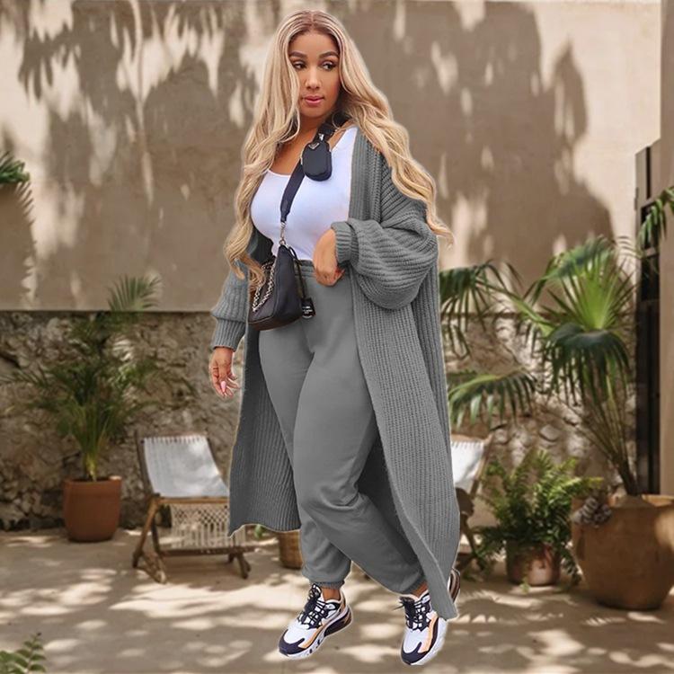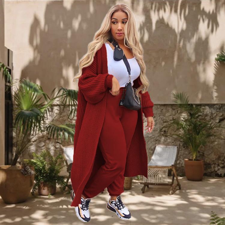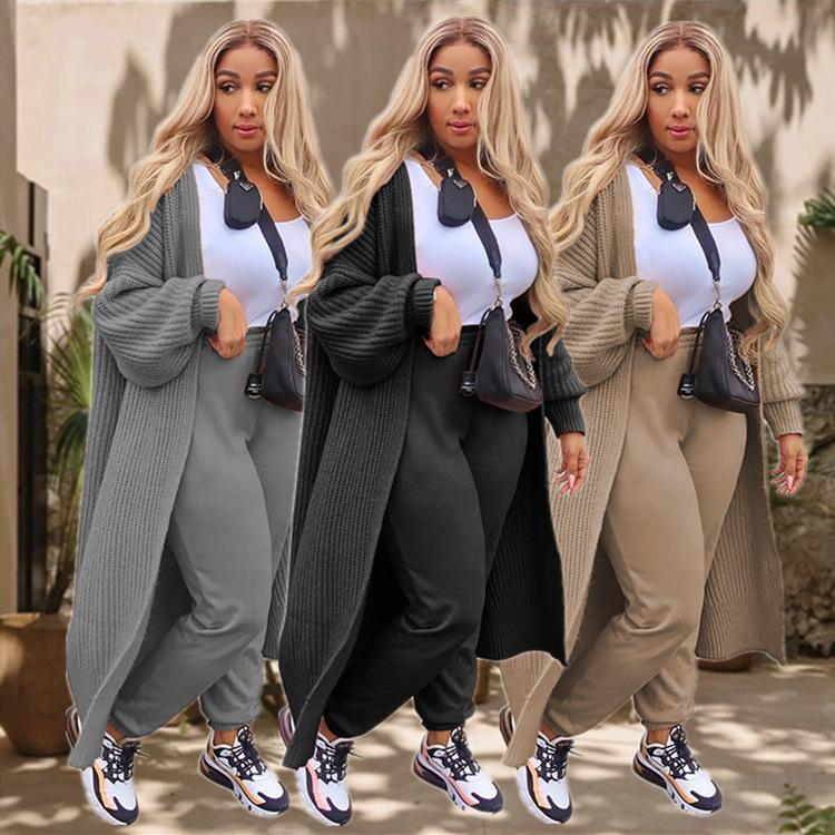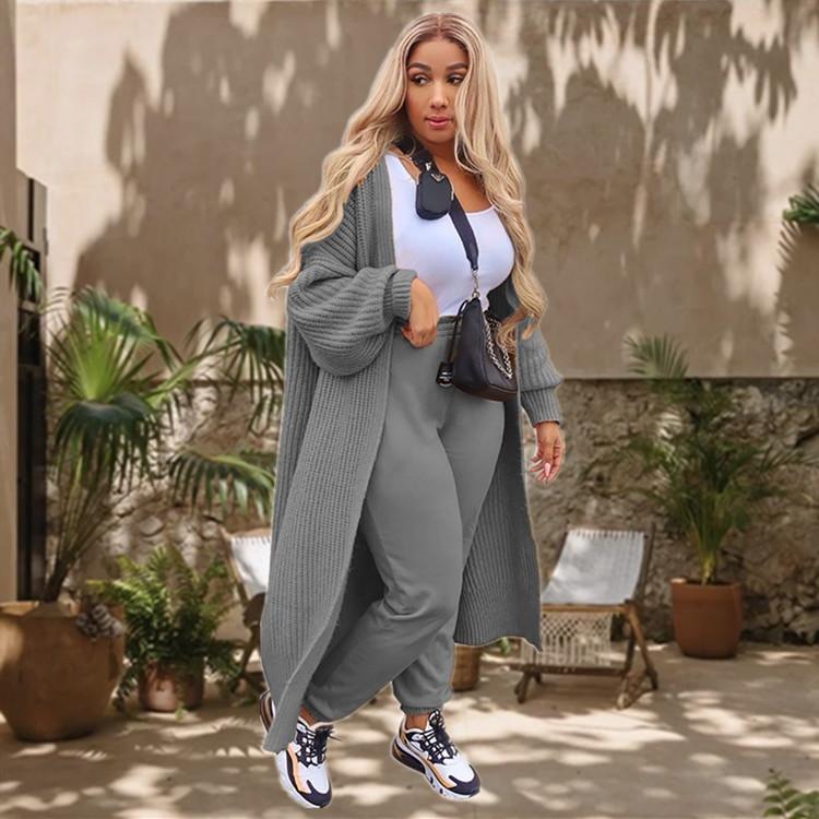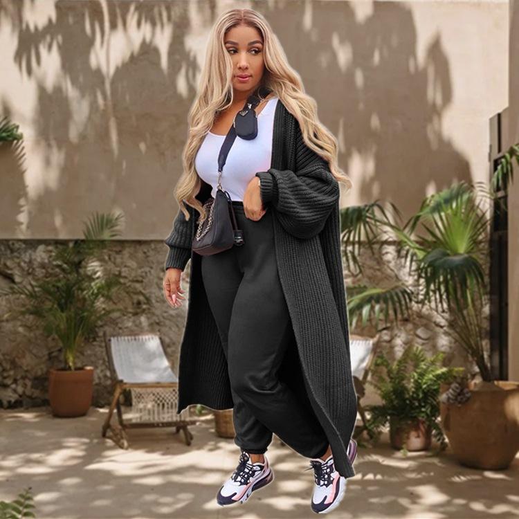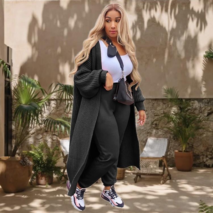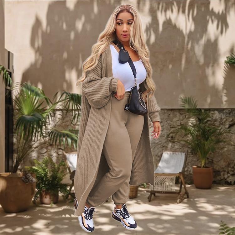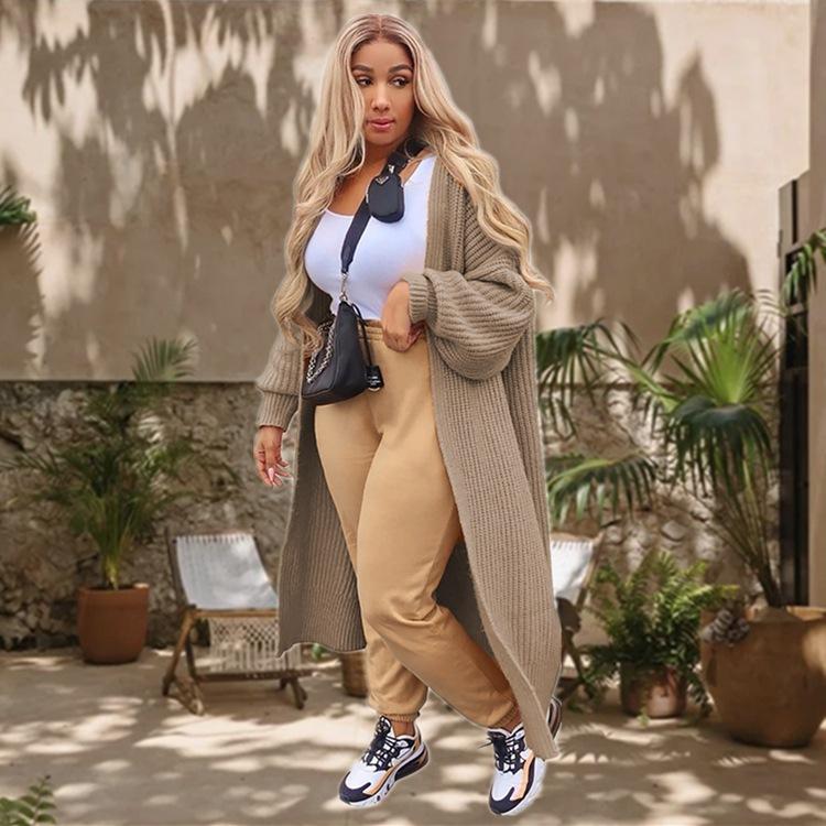 Comercio Exterior Transfronterizo Otoño e Invierno Nuevo Cárdigan de Punto de Largo Medio para Mujer Color Puro Cuello en V Manga Larga Color Puro Suéter Talla Grande