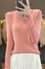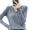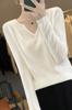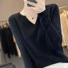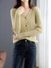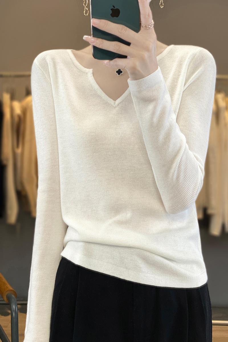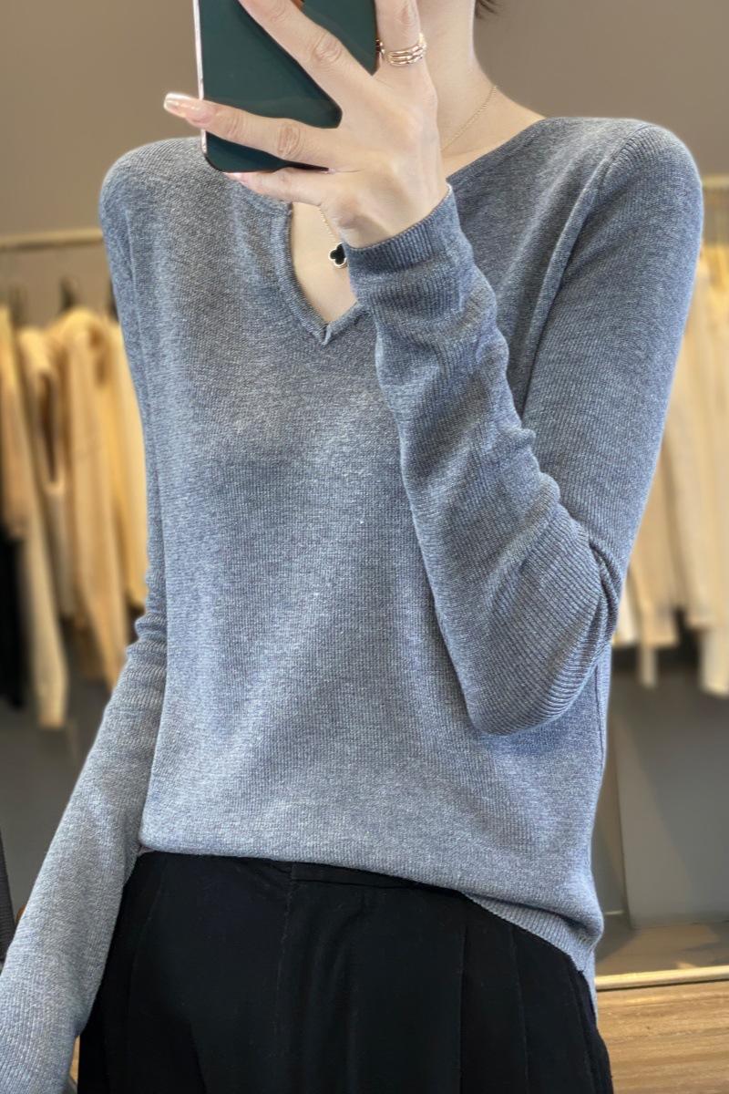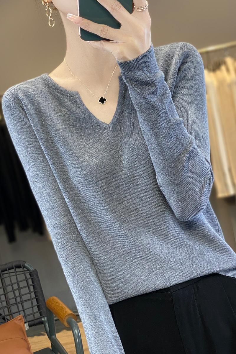 Suéter fino de punto de color liso a la moda para mujer, con cuello en V y corte entallado de lana peinada, para otoño e invierno.