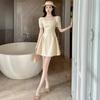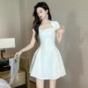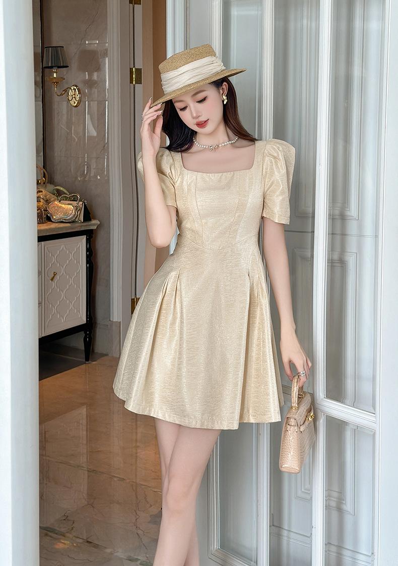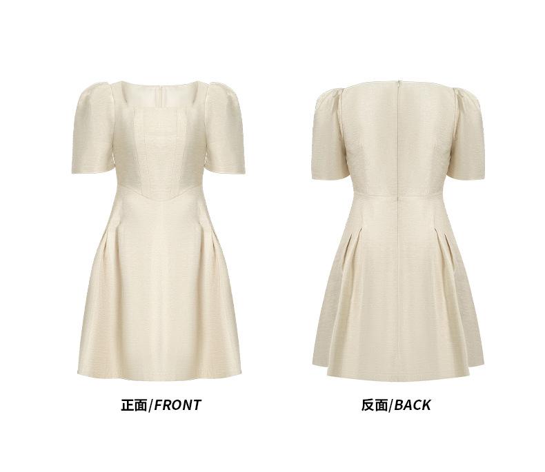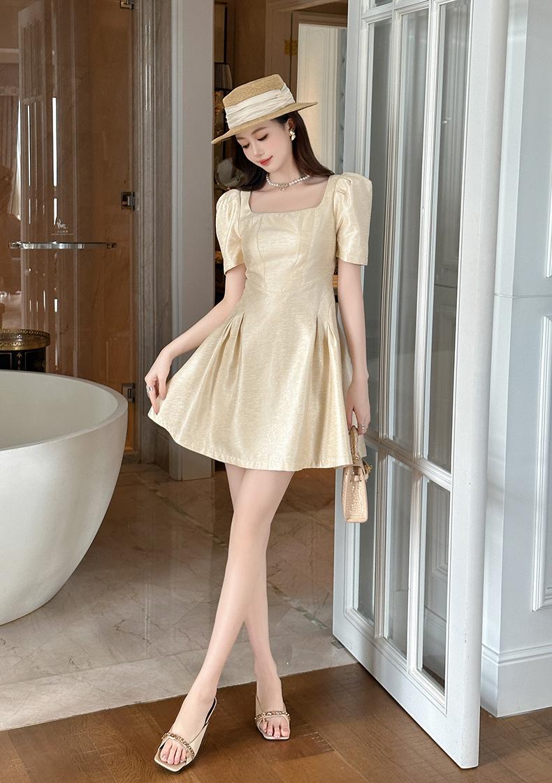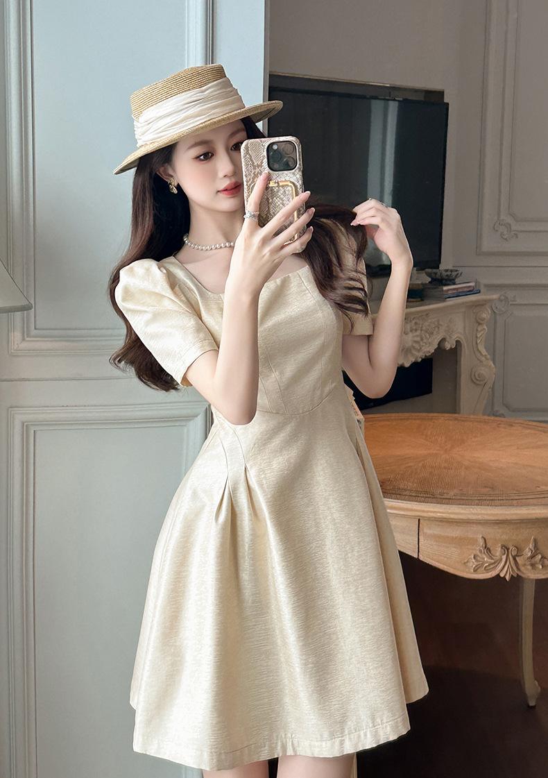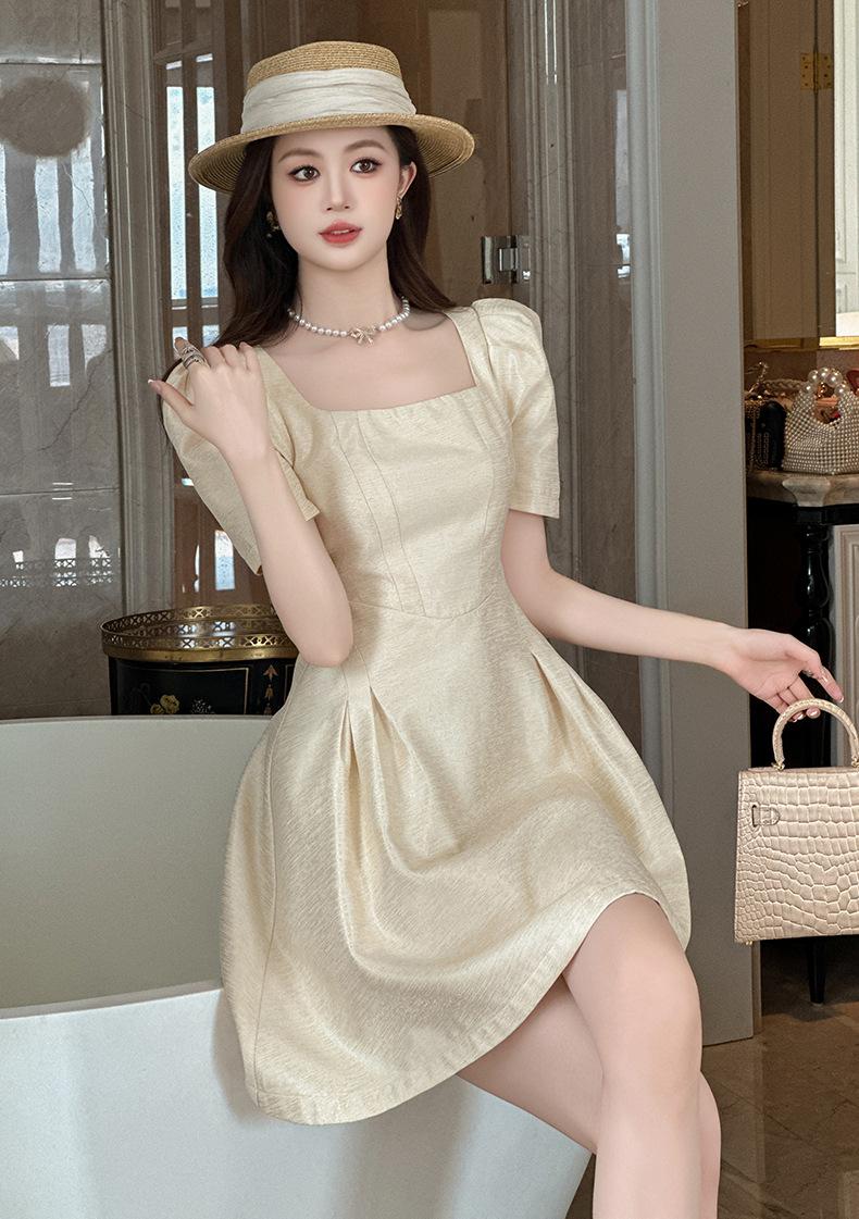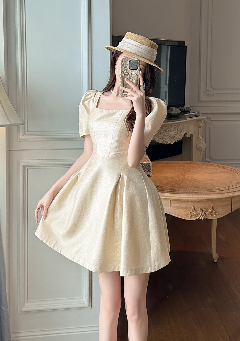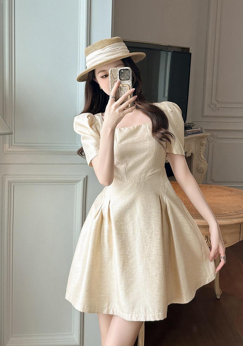 2025 Nuevo Vestido Puff de Verano para Mujer con Cuello Cuadrado Francés en la Cintura Socialité Petite Falda A-Line 212955