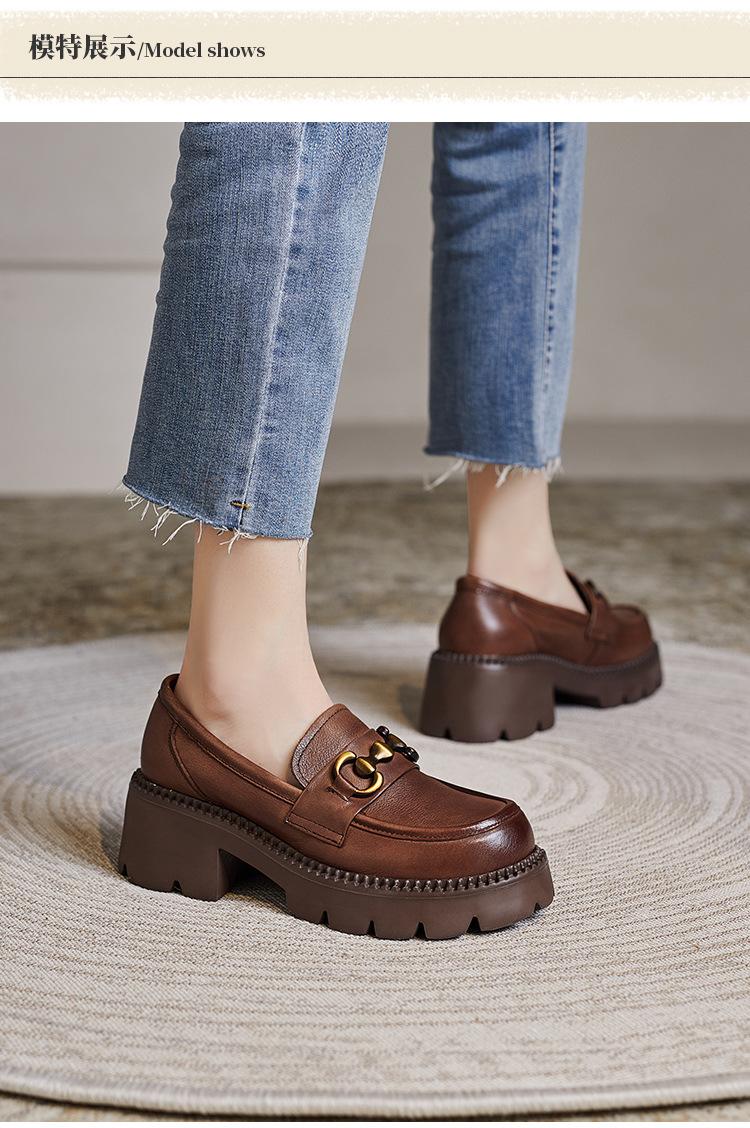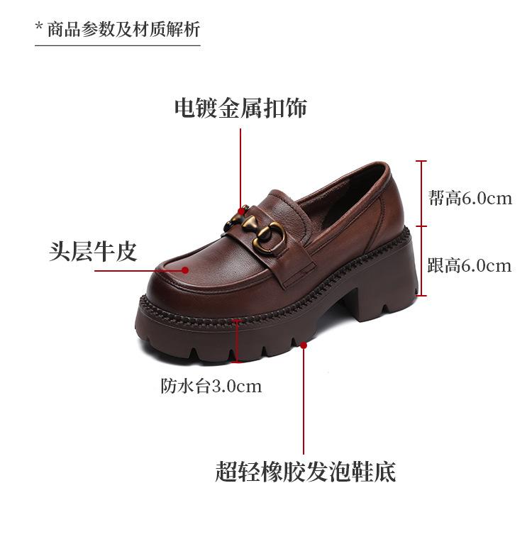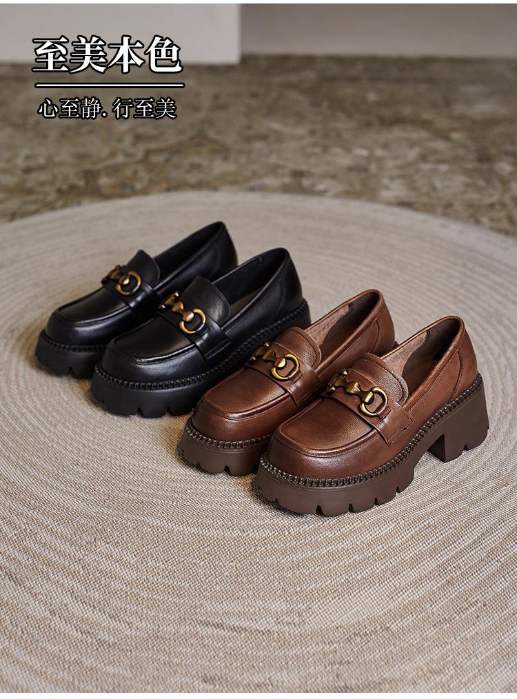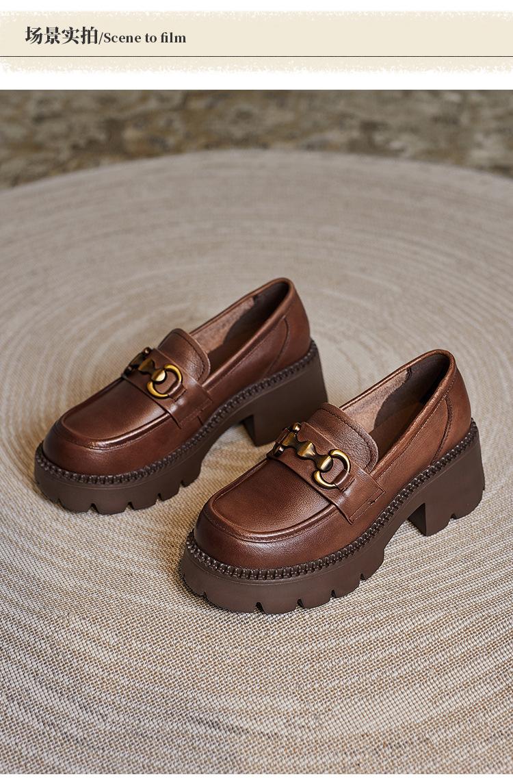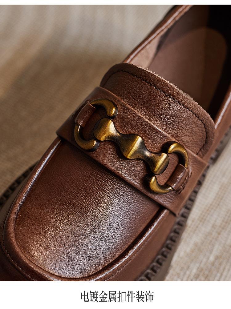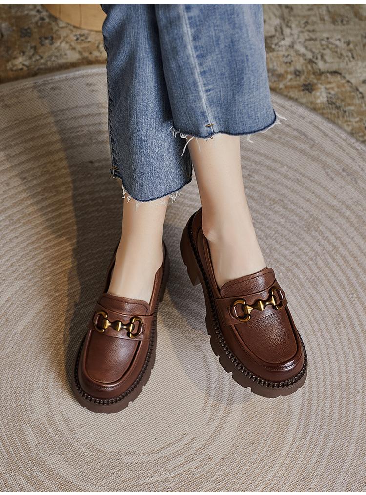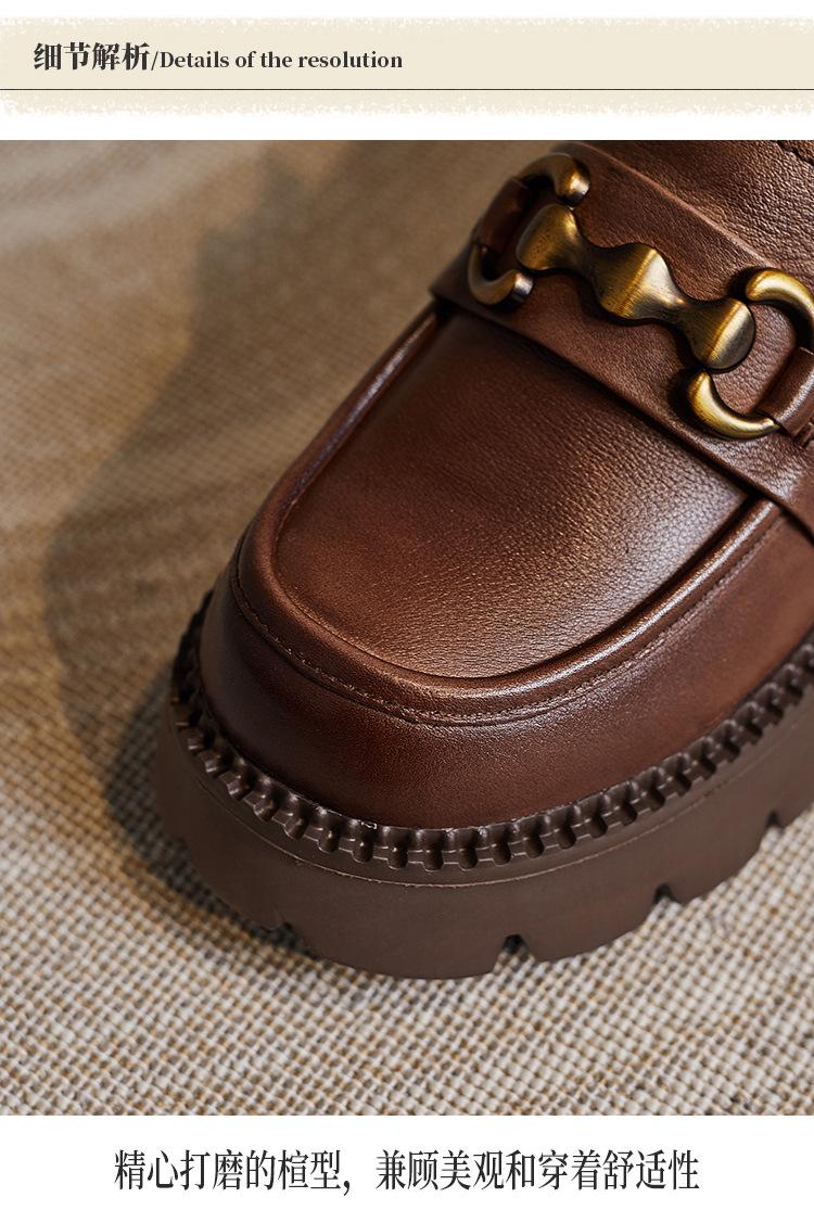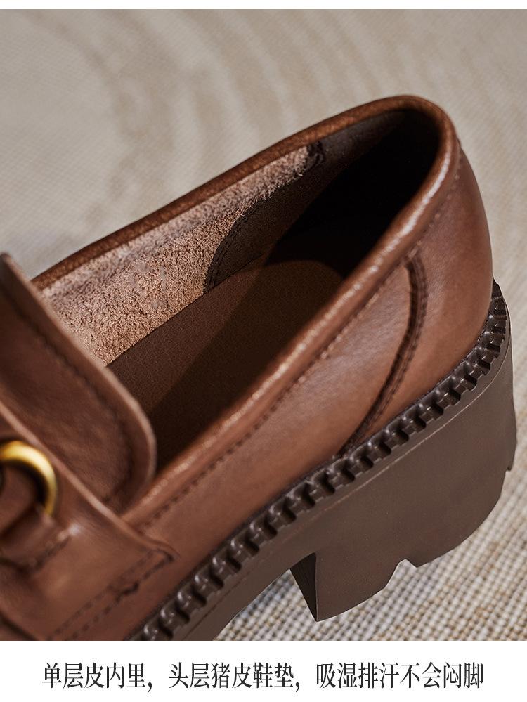 Zapatos Lefu para mujer, estilo británico, otoño 2024, nuevos zapatos de mujer de cuero genuino con suela gruesa y suela suave, zapatos vintage marrones.