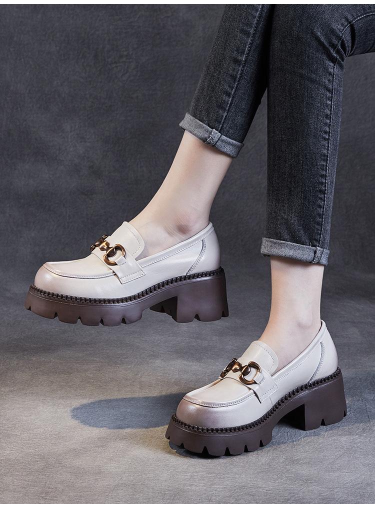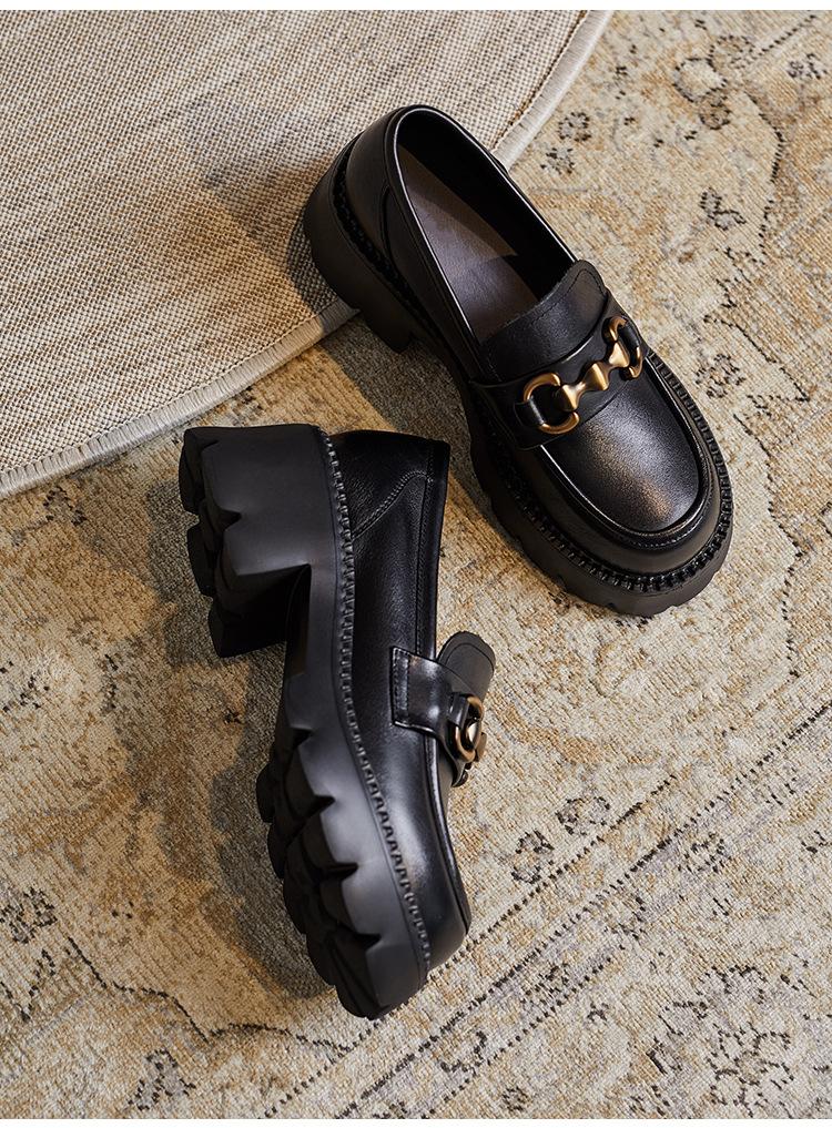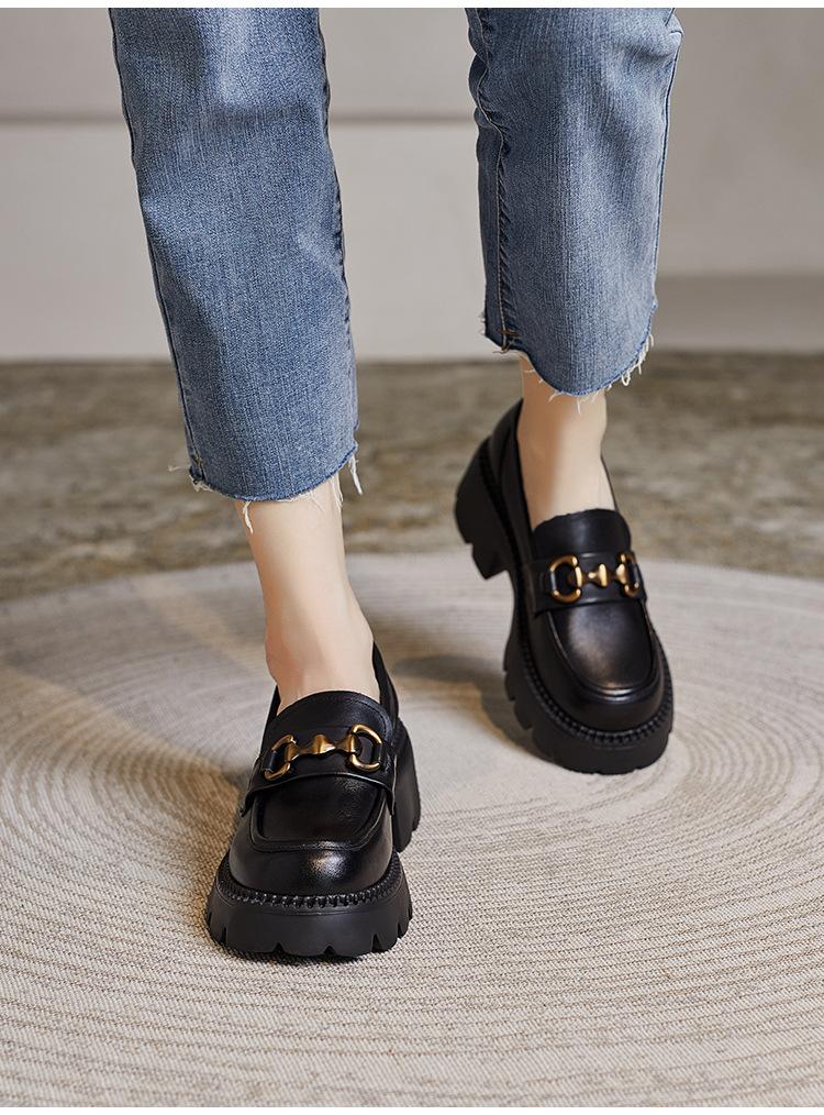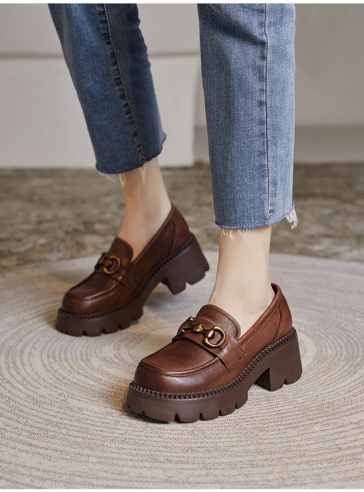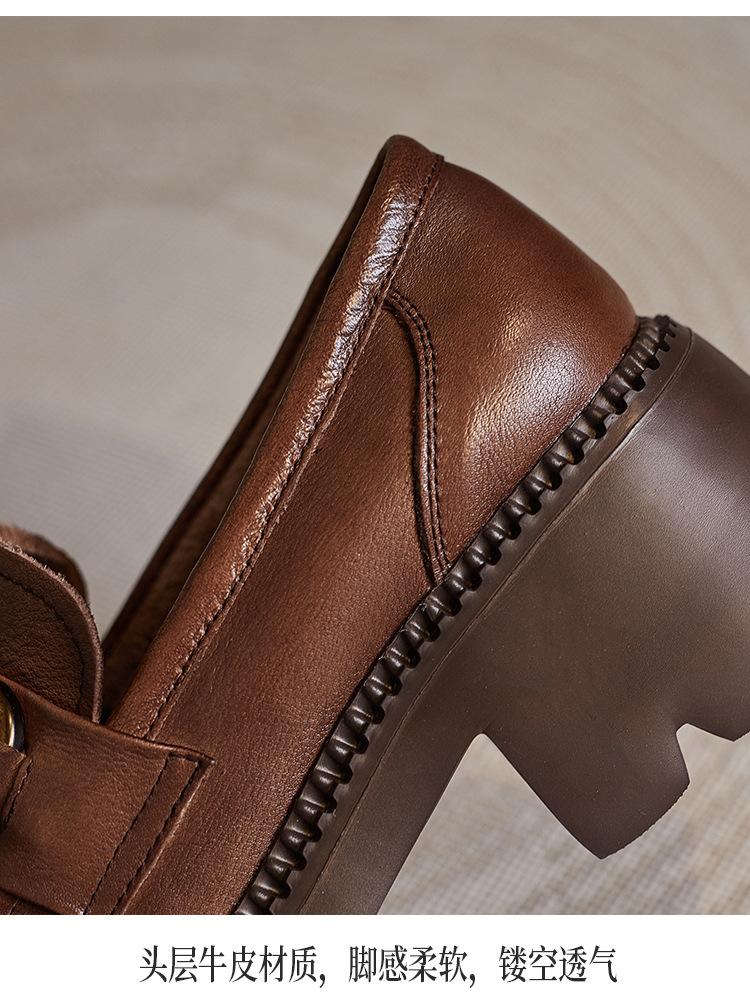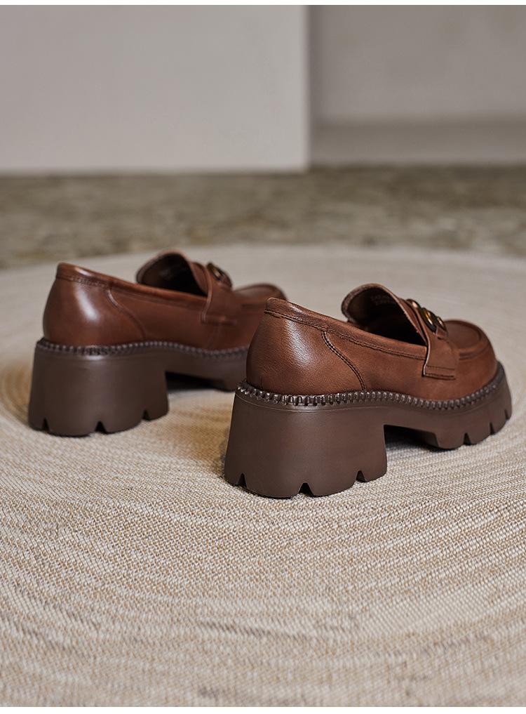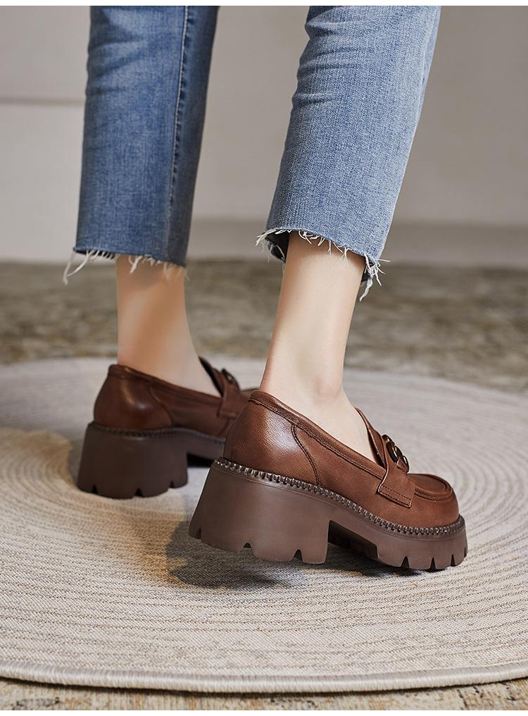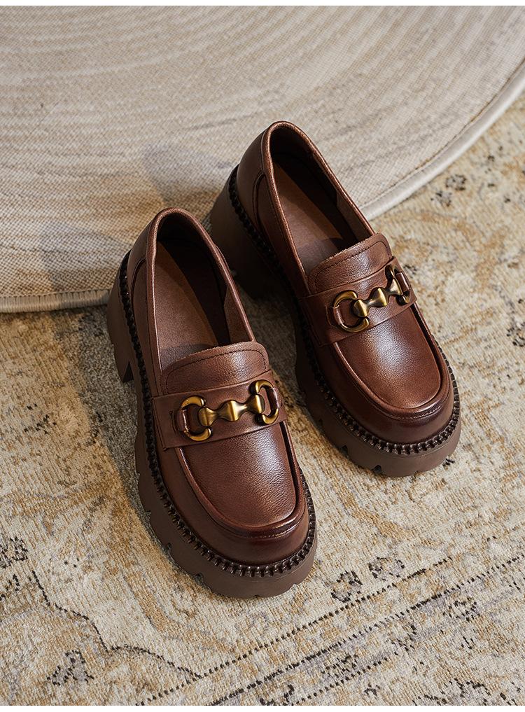 Zapatos Lefu para mujer, estilo británico, otoño 2024, nuevos zapatos de mujer de cuero genuino con suela gruesa y suela suave, zapatos vintage marrones.