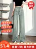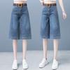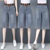 Jeans de Pierna Ancha de Cintura Alta para Mujer, Verano 2025 Nuevos Pantalones Rectos Recortados de Color Claro, Pantalones Cortos Delgados que Moldean y Cubren las Caderas