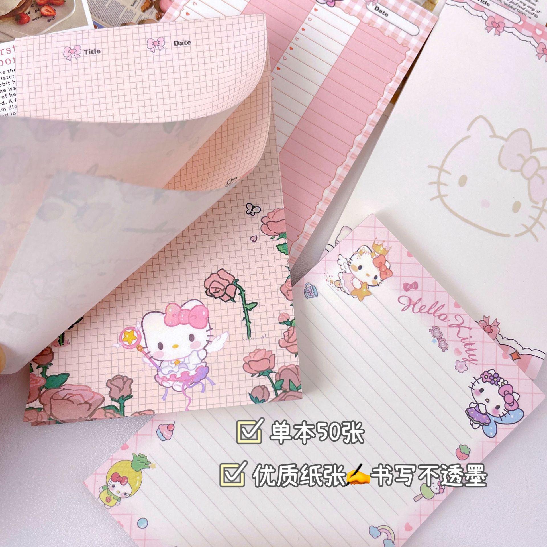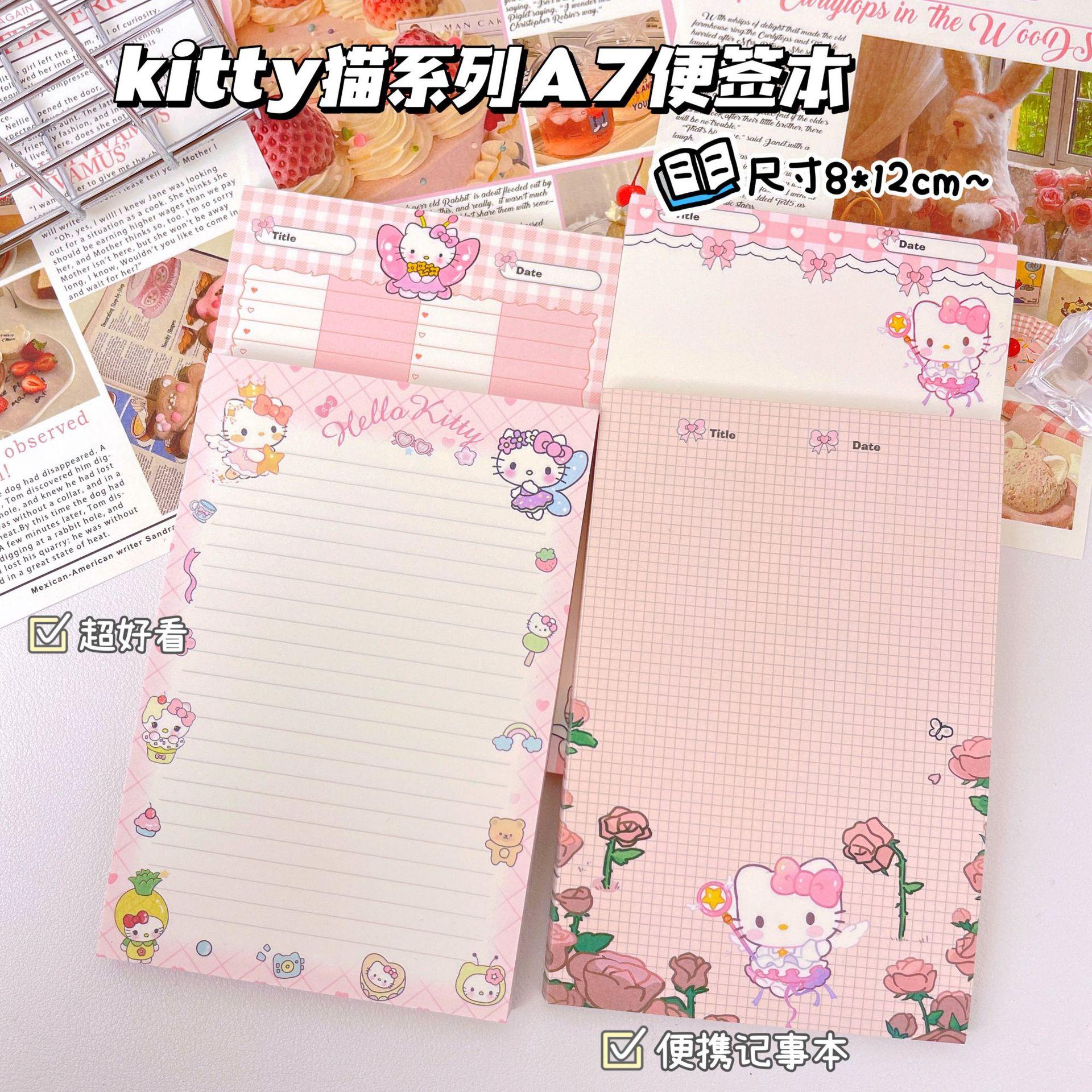 Libreta A7 con diseño de gato KT rosa, con notas de niña adorable, corazón, de alto valor de color, para estudiantes, con dibujos animados