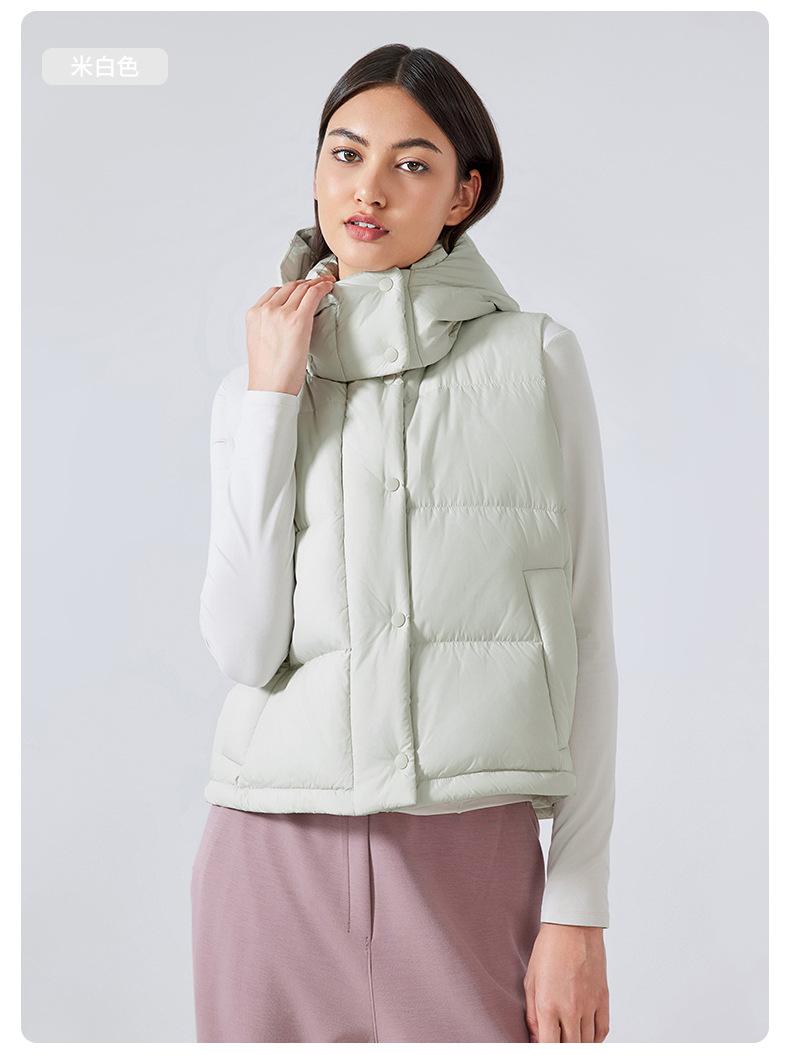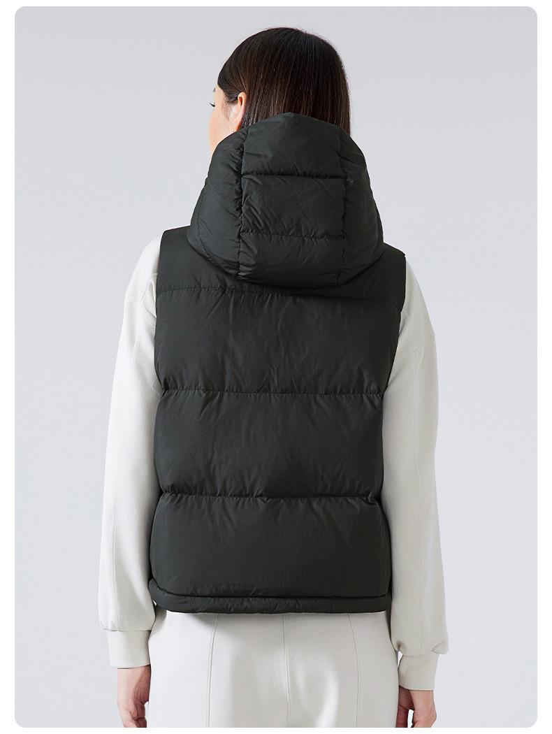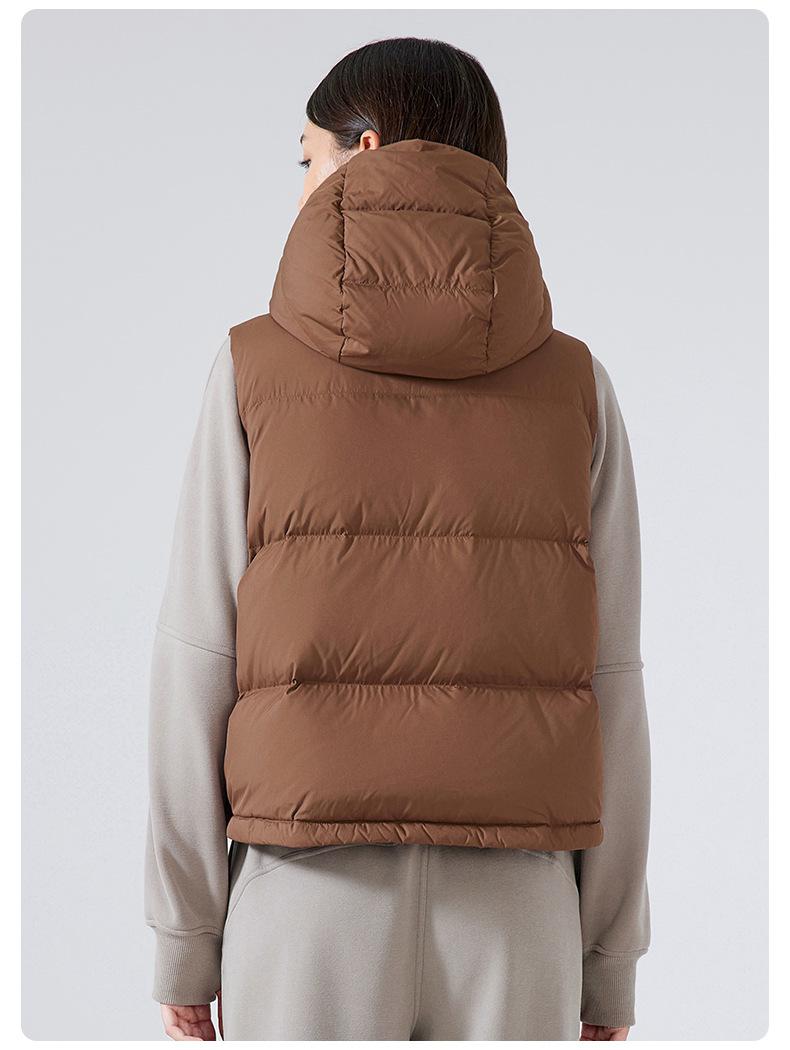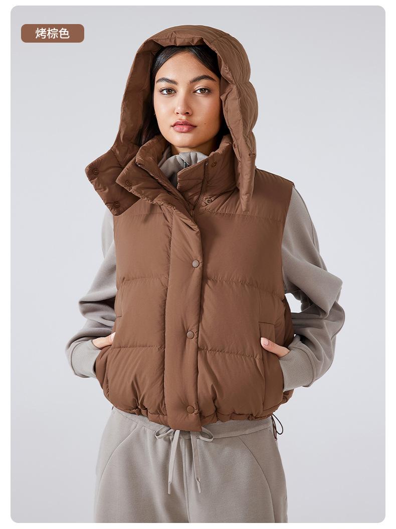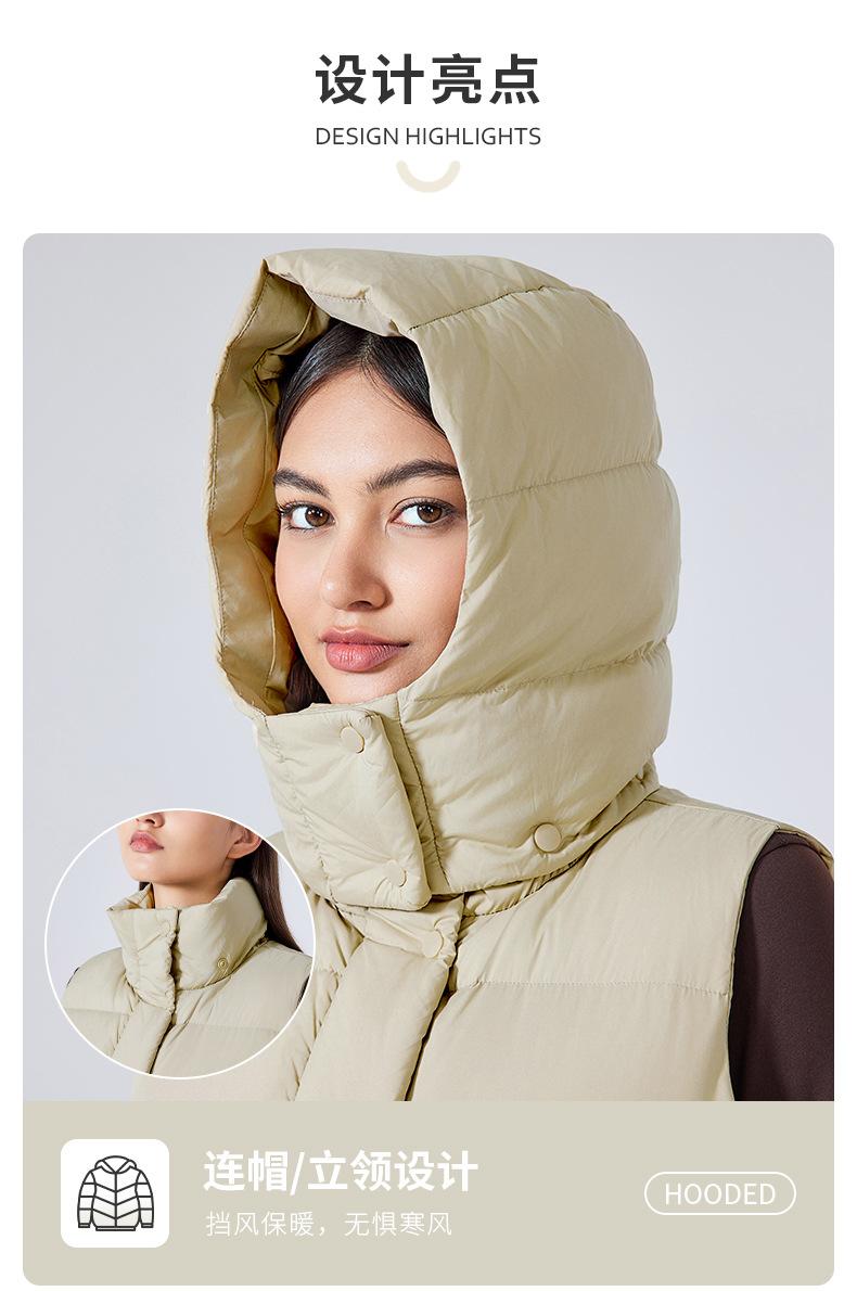 Chaleco de plumón para mujer con cuello alto a prueba de viento para invierno, versátil, grueso, con capucha, chaqueta Daw159