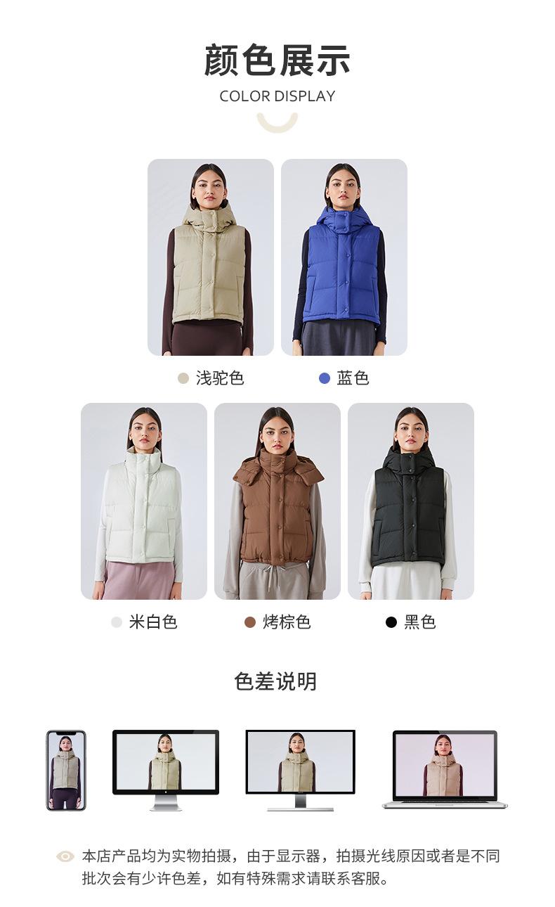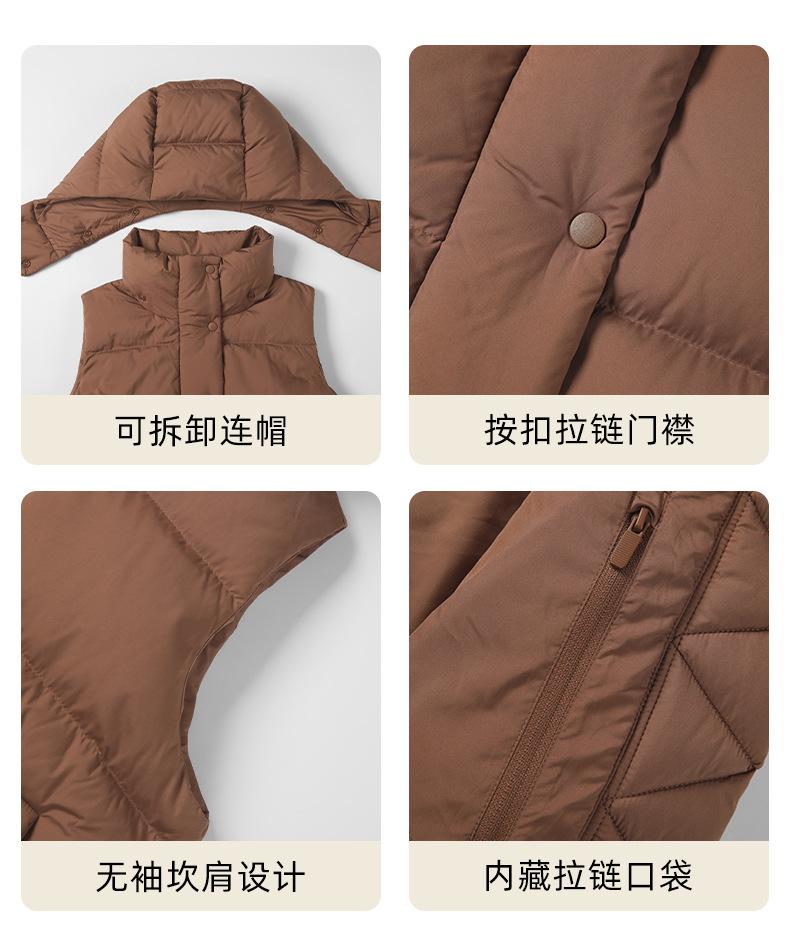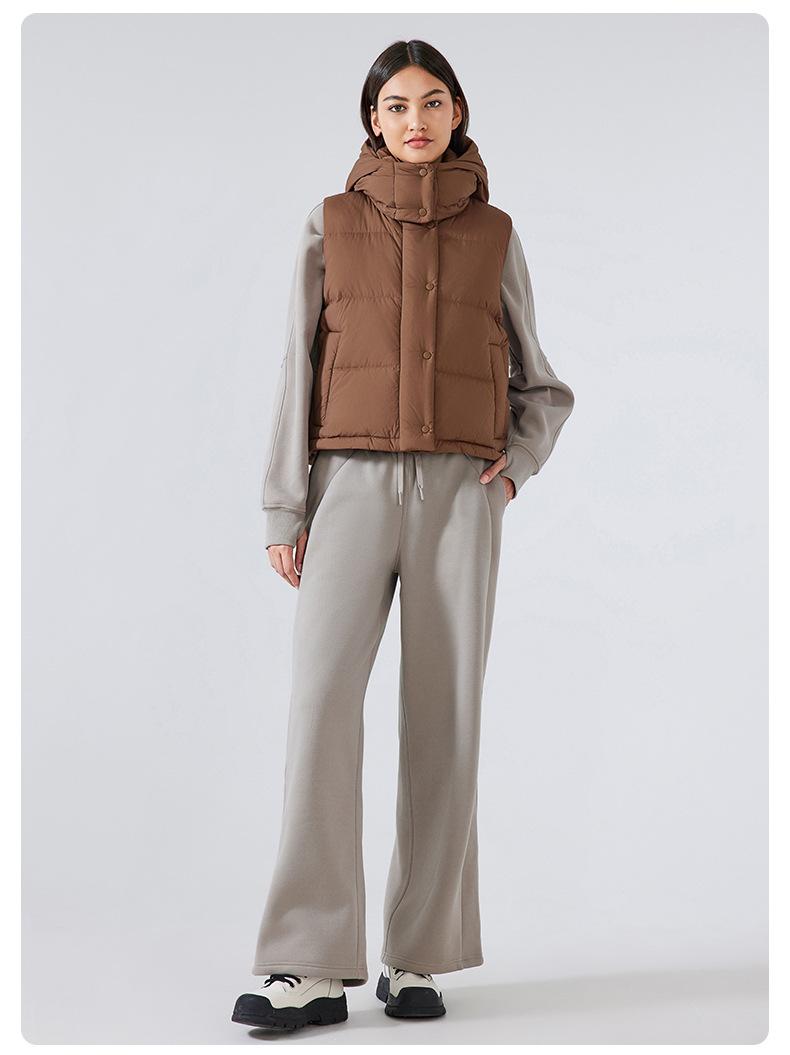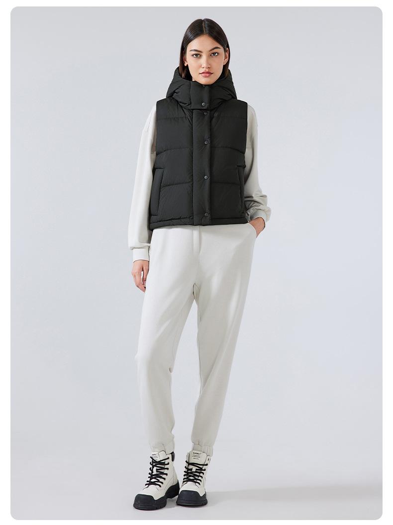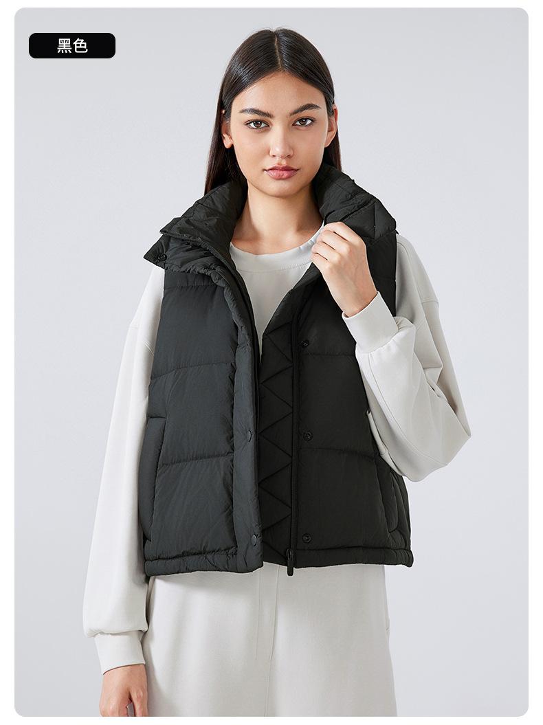 Chaleco de plumón para mujer con cuello alto a prueba de viento para invierno, versátil, grueso, con capucha, chaqueta Daw159