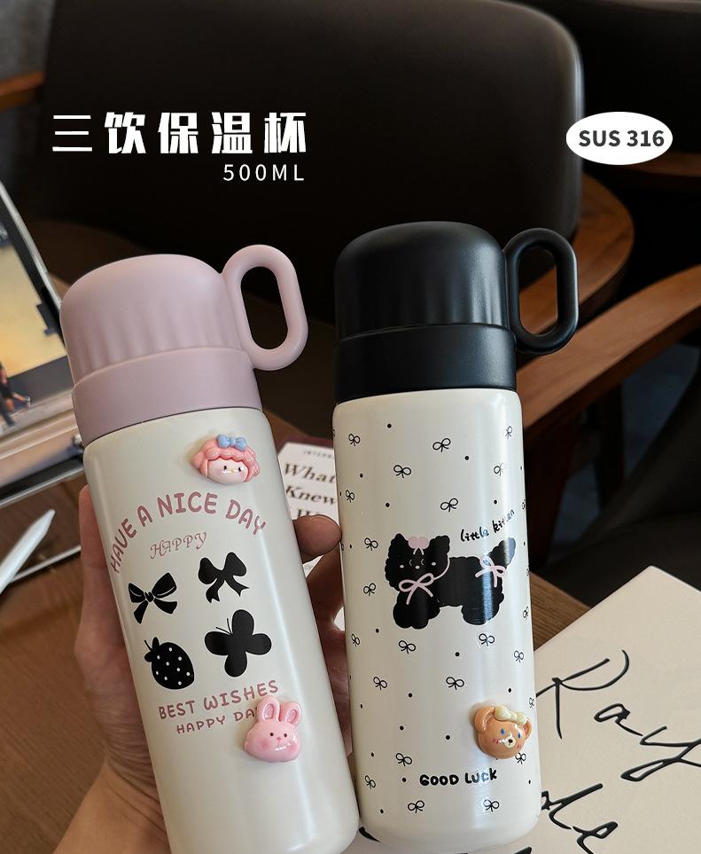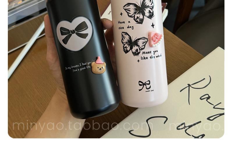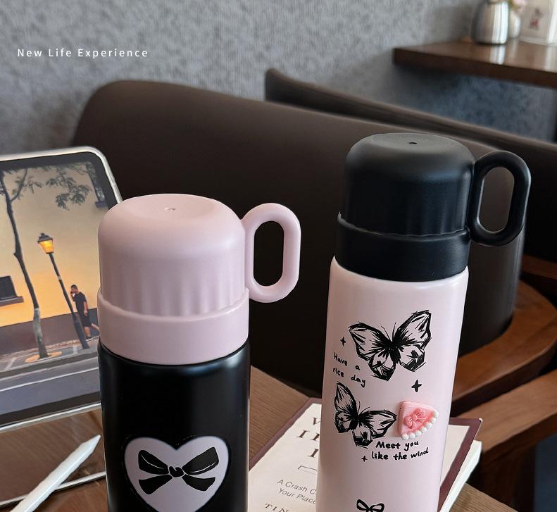Termo Bow Girls, nuevo y de alta calidad, para estudiantes, portátil, de una sola tapa, de acero inoxidable de doble uso, regalo.