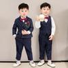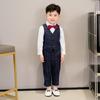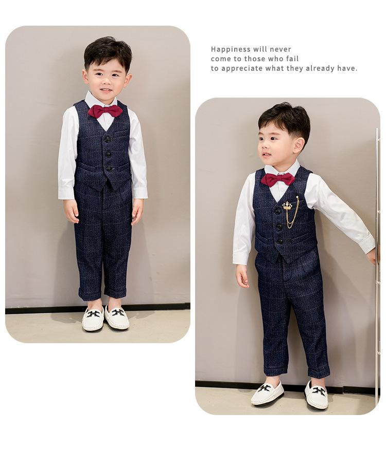 Deep Blue Vest Pants Long Sleeve Shirt Brooch Red Pointed Bow tie