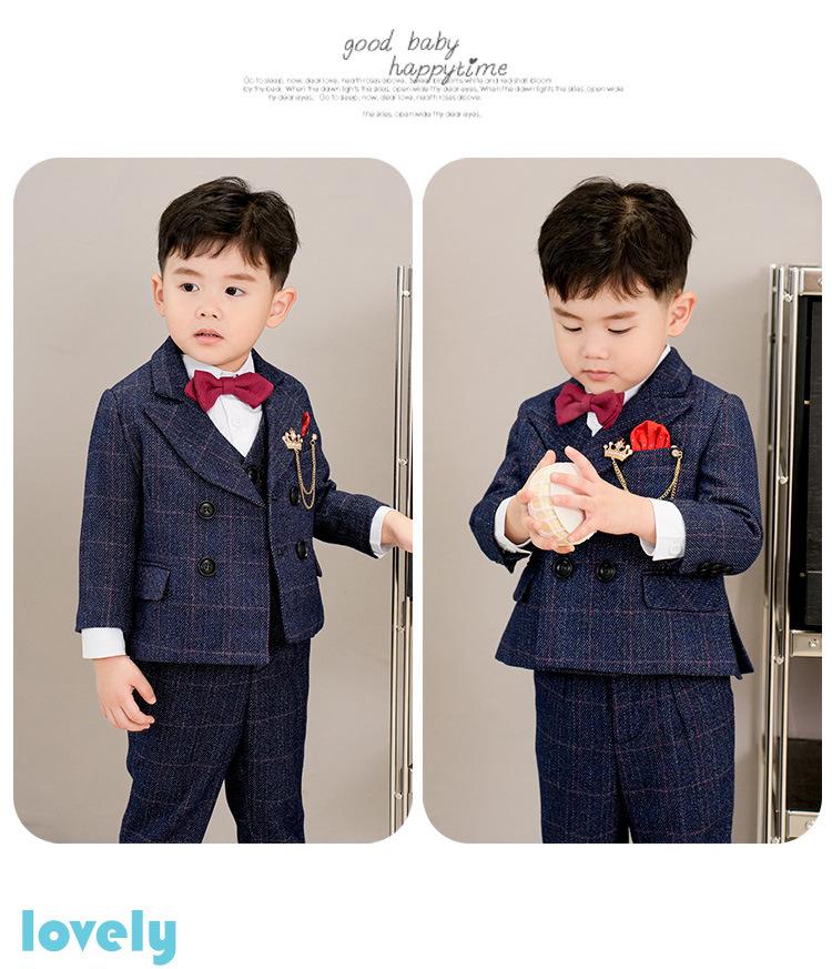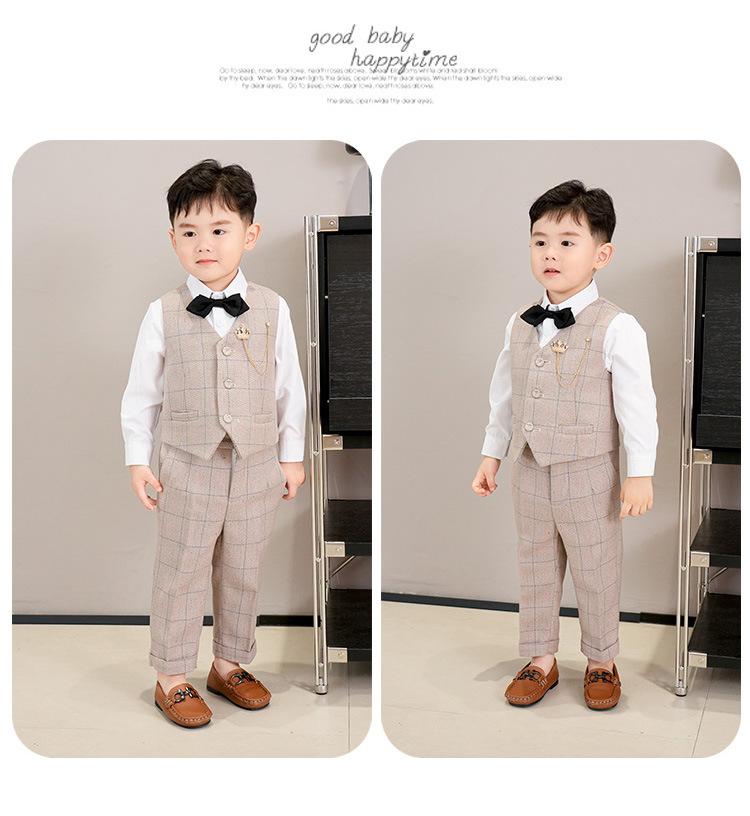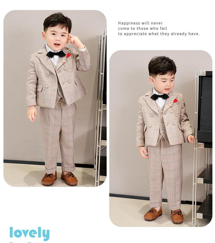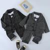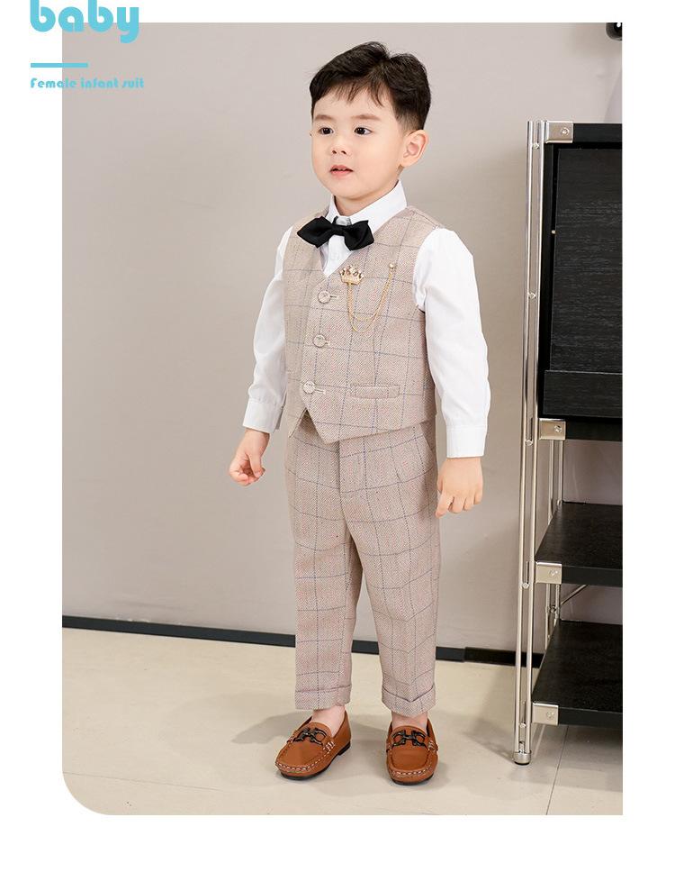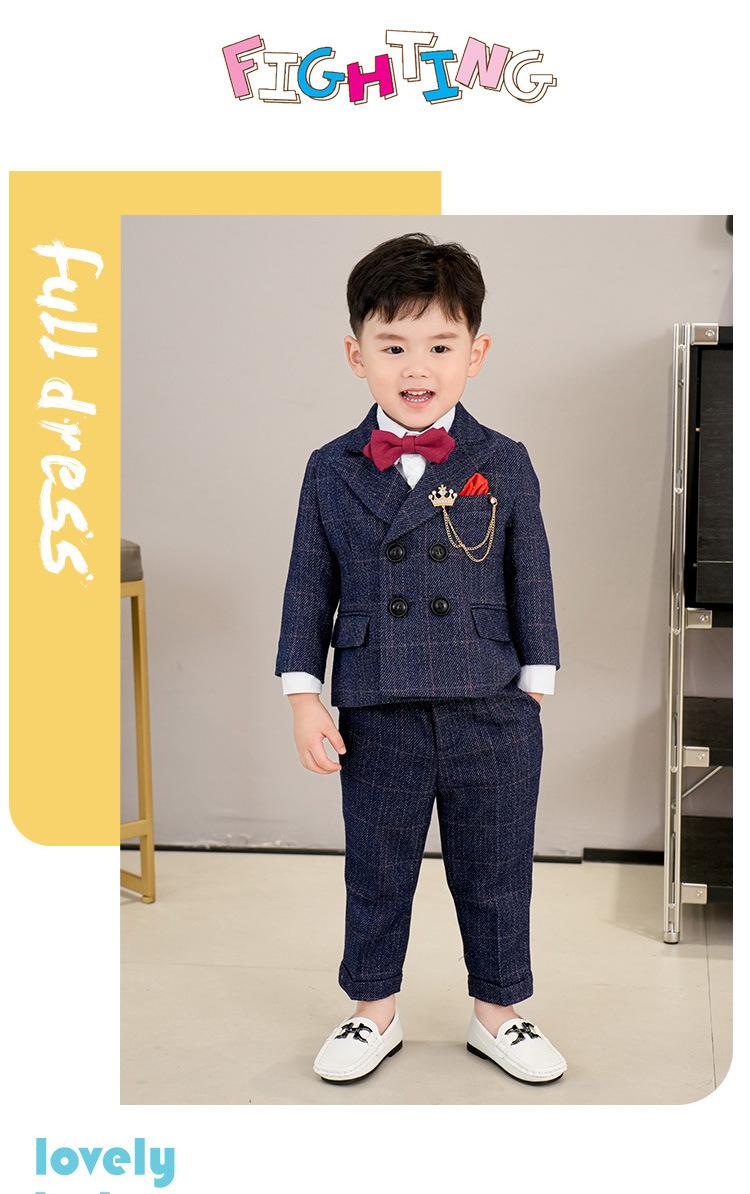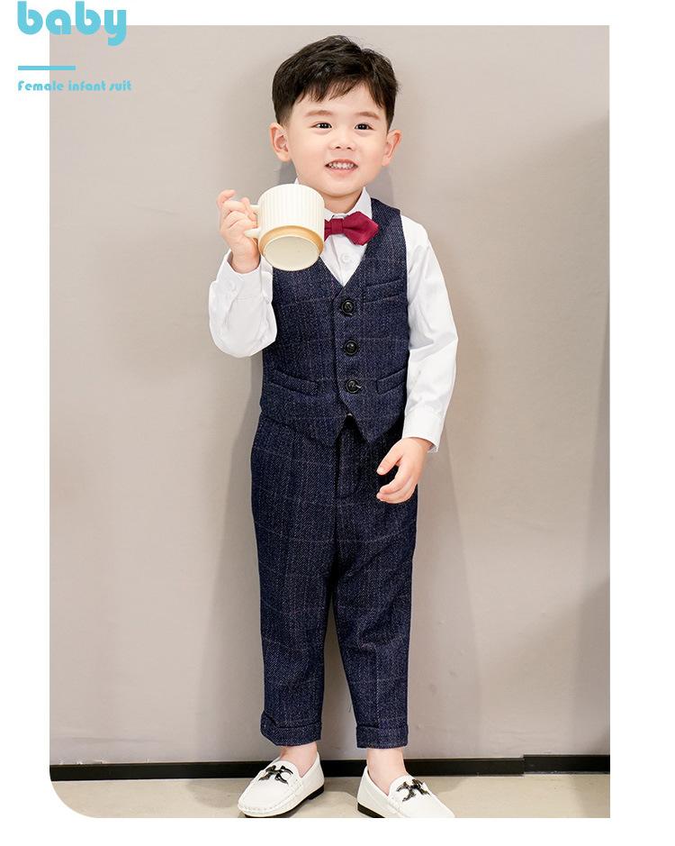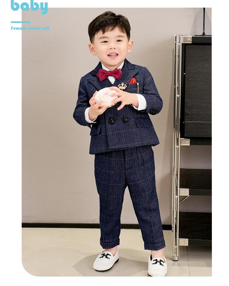 Vestido infantil de otoño, traje a cuadros estilo británico, conjunto de dos piezas, niño, bebé, niño de flores, boda, traje de foto de un año.