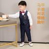 Deep Blue Vest Pants Brooch Red Pointed Bow tie, Deep Blue Vest Pants Long Sleeve Shirt Brooch Red Pointed Bow...