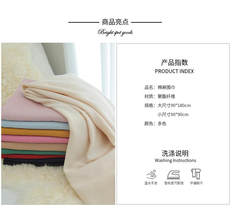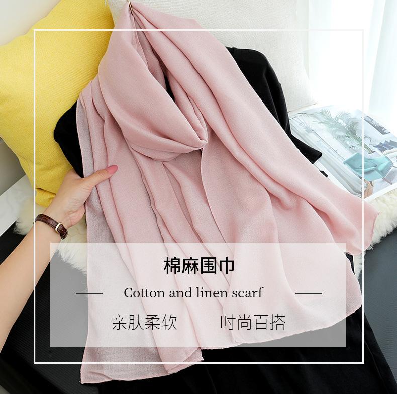 Bufanda de algodón y lino para mujer, de seda, de color liso, cuadrada, de estilo moderno, fina y artística, larga, combinable.