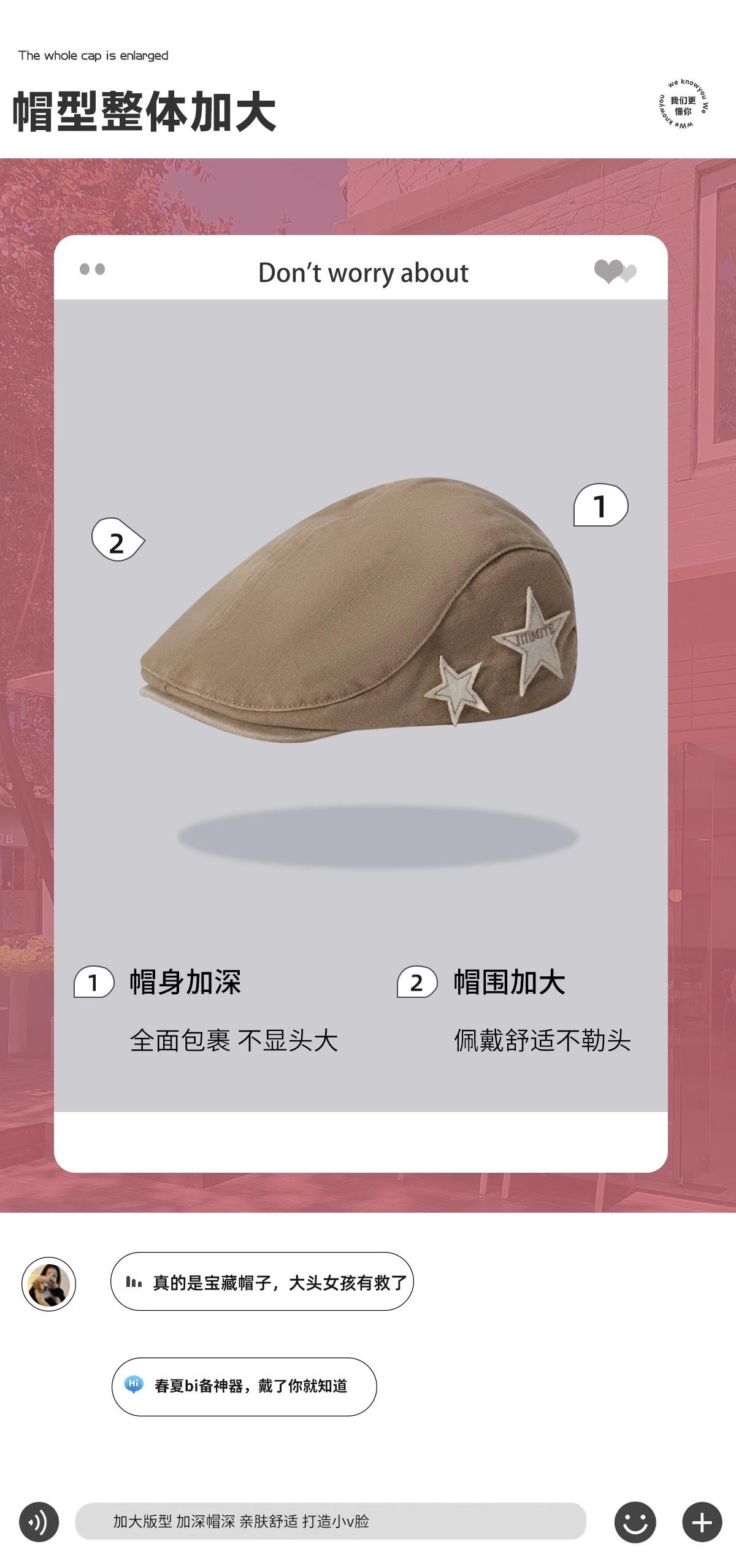 Estilo Británico Circunferencia de Cabeza Grande Dulce Cool Gorra Forward Retro Boina Pico de Pato Estrella Sombrero de Mujer Y2K Retro Americano