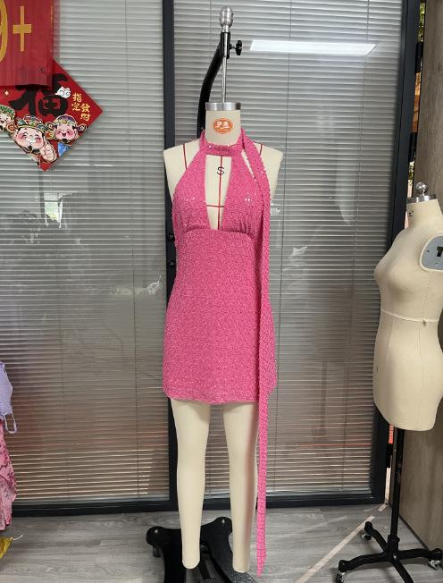 Vestido ajustado sin espalda, cuello escotado y sexy, estilo europeo y americano, primavera 2024