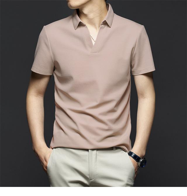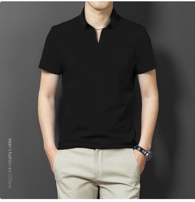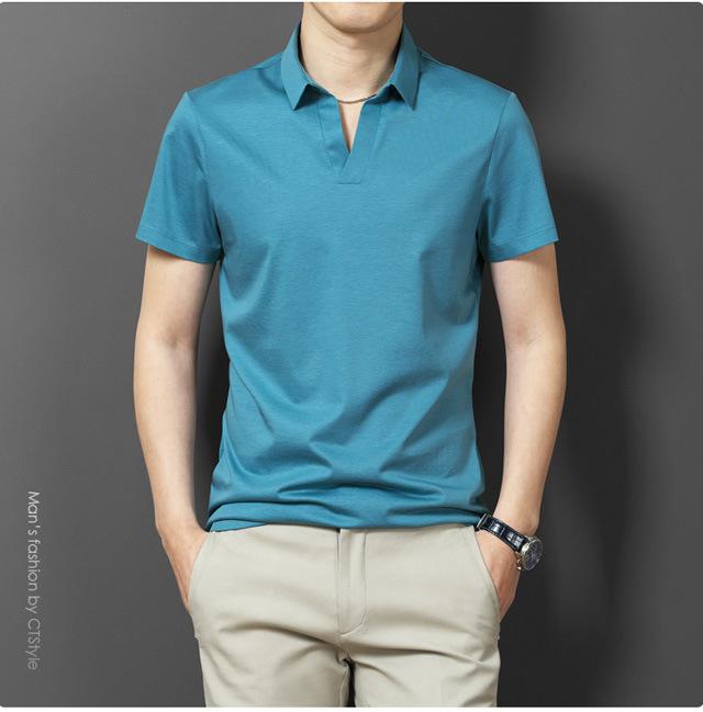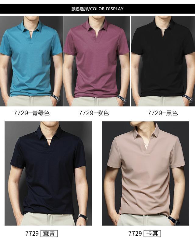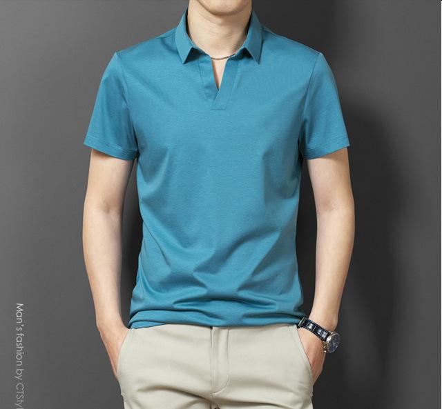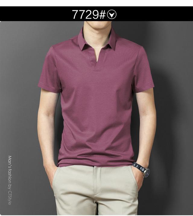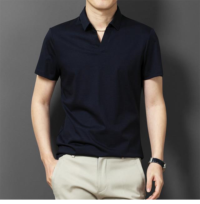 Nueva camiseta de algodón mercerizado para hombre, de manga corta con solapa, de verano, fina, de negocios, tipo POLO, transpirable, suave, de seda helada, de media manga, a la moda.