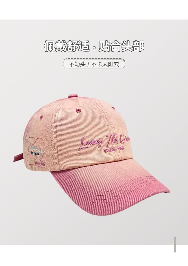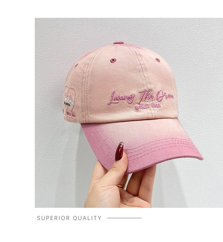 Gorra de béisbol bordada con letras en degradado para mujer, con alero curvo, suave, estilo coreano, con cara brillante para verano.