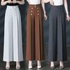 Culottes casuales de seda de hielo de pierna ancha para mujer Verano 2025 Nuevo Cintura elástica Aspecto adelgazante Color puro Versátiles pantalones de pierna ancha