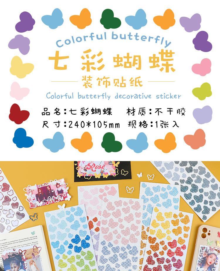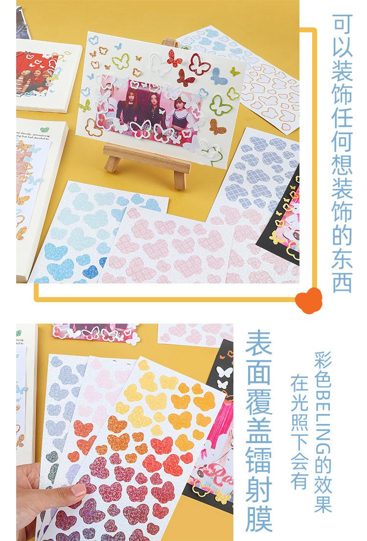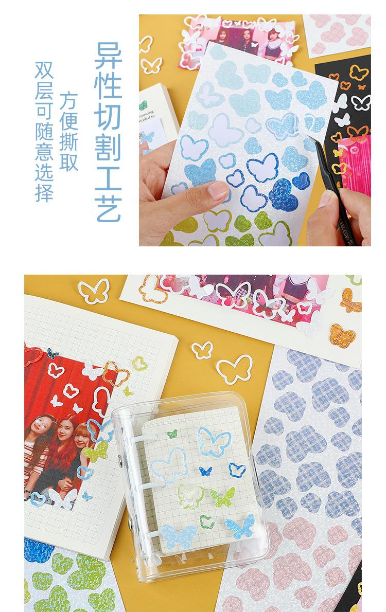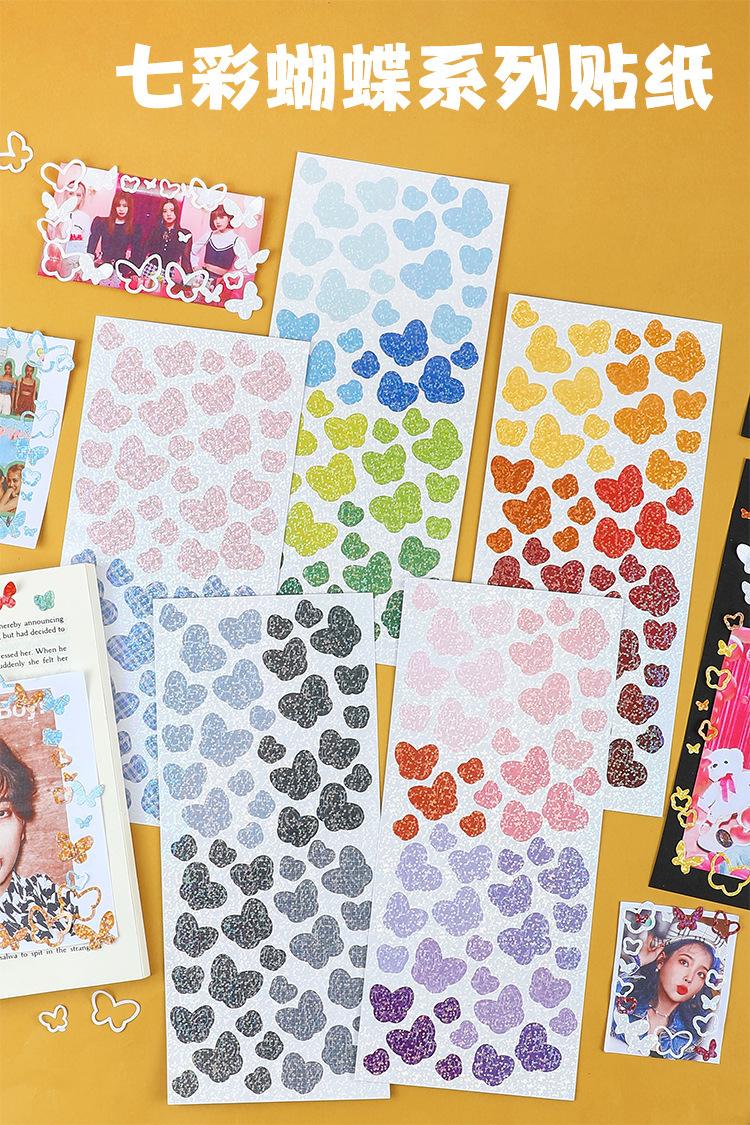 Pegatinas de papel para manualidades de la serie de mariposas coloridas Yuezhen, pegatinas láser de colores, pegatinas pequeñas coreanas lindas para decoración de tarjetas.