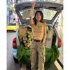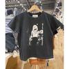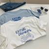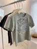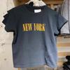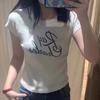 Estilo Bm Retro Americano Verano Nuevo Ray Estampado de Letras Top Ajustado Femenino Sexy Cuello Redondo Cintura Alta Camiseta de Manga Corta