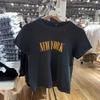 Estilo Bm Nuevo Americano Retro Nueva York Letra Estampada Top Corto de Cintura Alta Sexy Camiseta de Manga Corta para Mujer Verano
