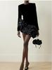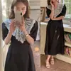 Vestido Hepburn Estilo Retro Deseo Puro Otoño y Verano 2025 Cuello V Negro Cintura Vestido Pastel Falda Midi 1727