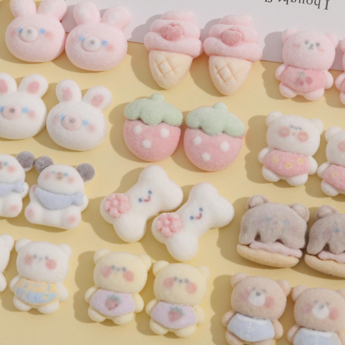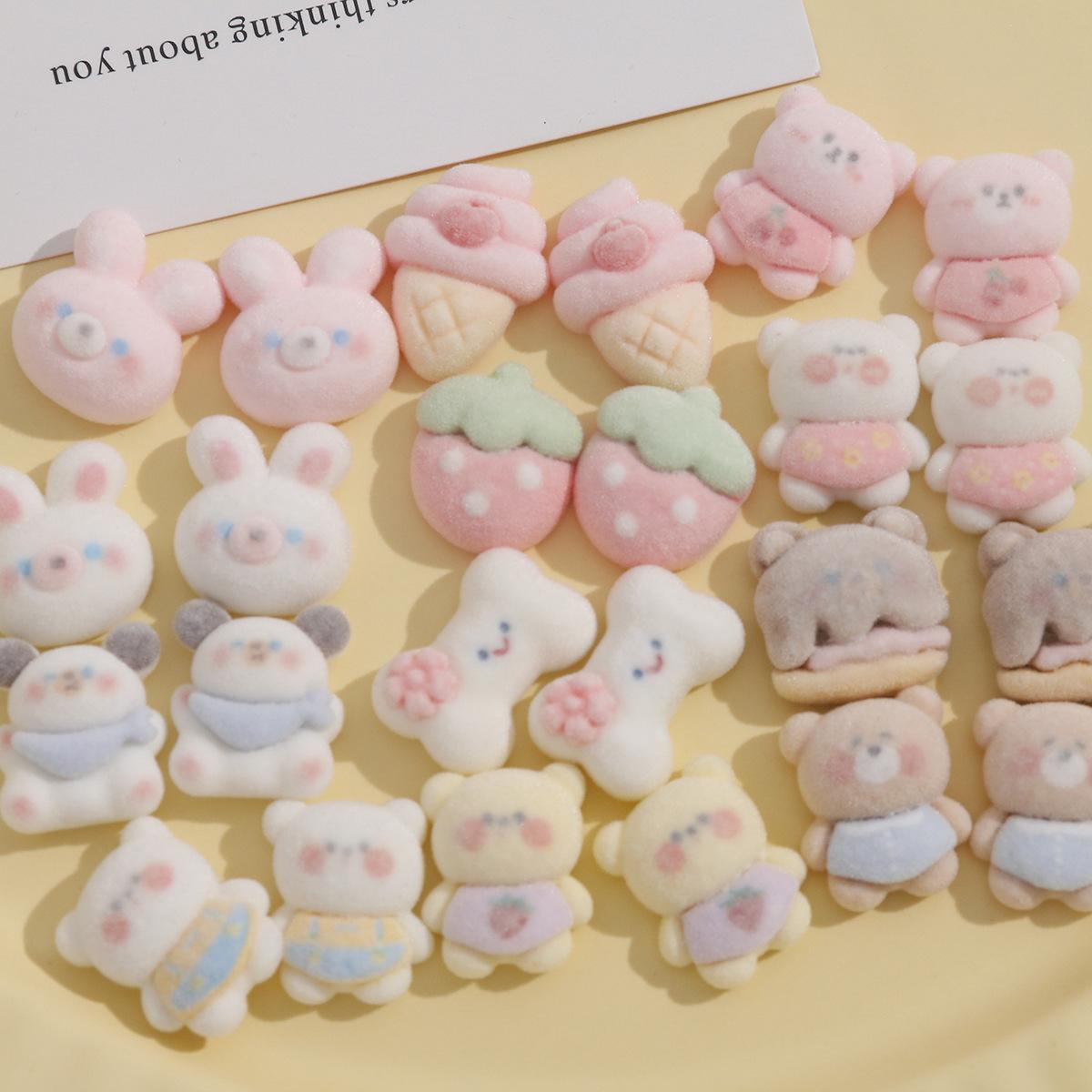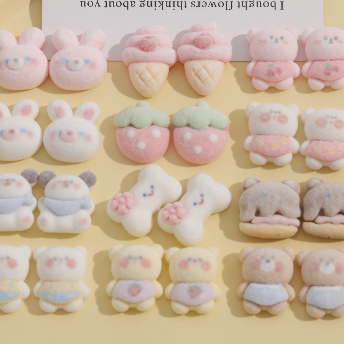 Parche de resina con pegamento para helado, fresa y crema, con diseño creativo de conejo rosa de peluche y oso de café. |