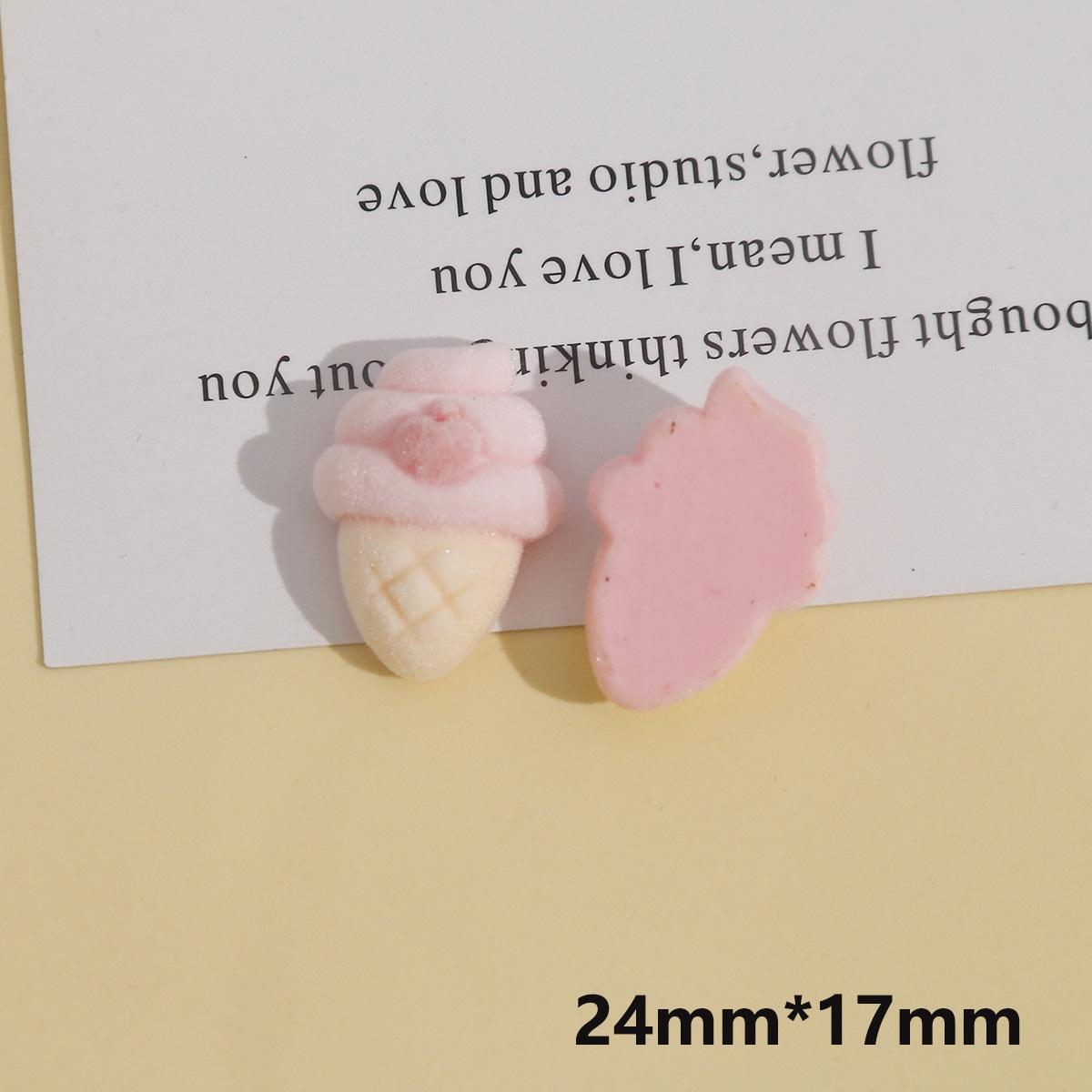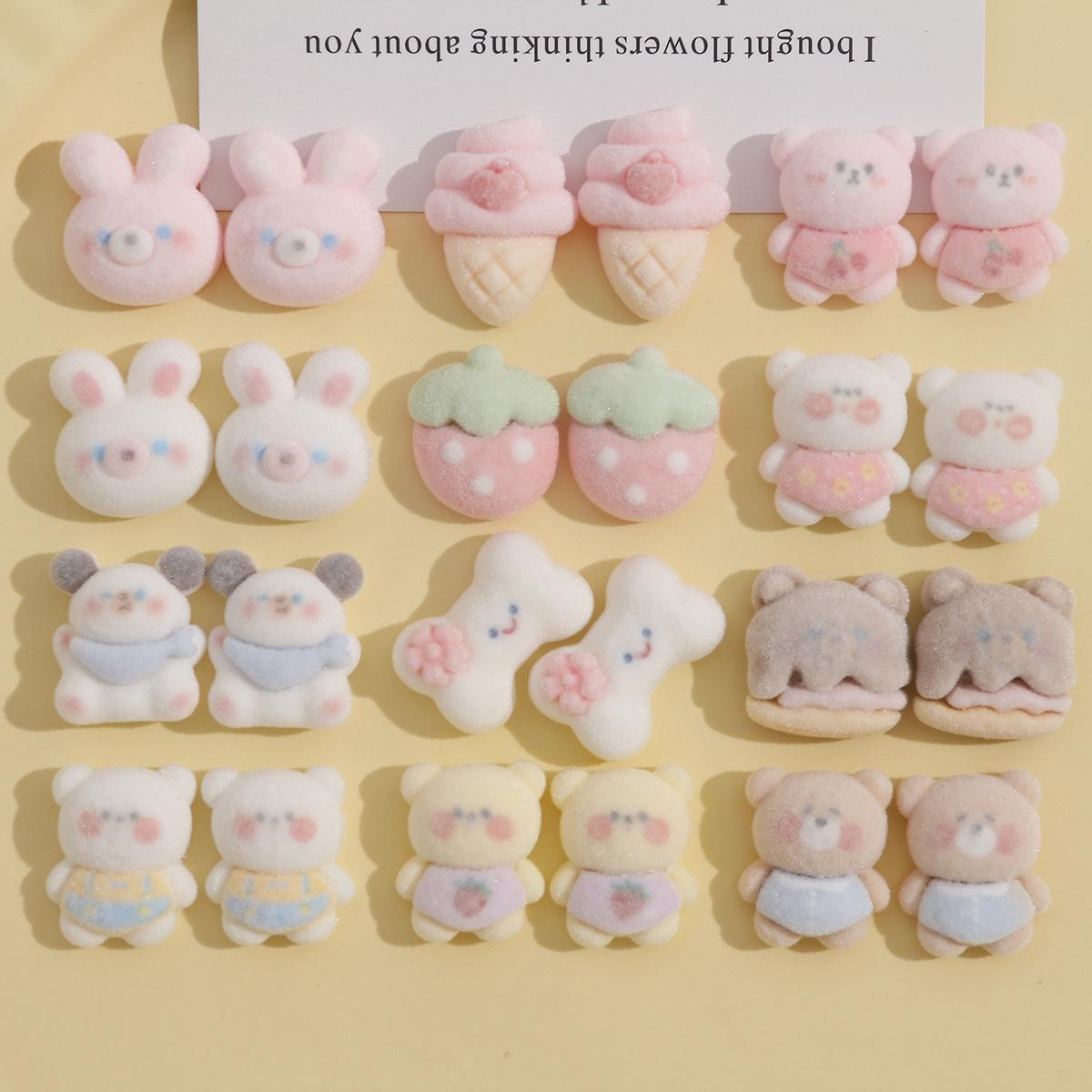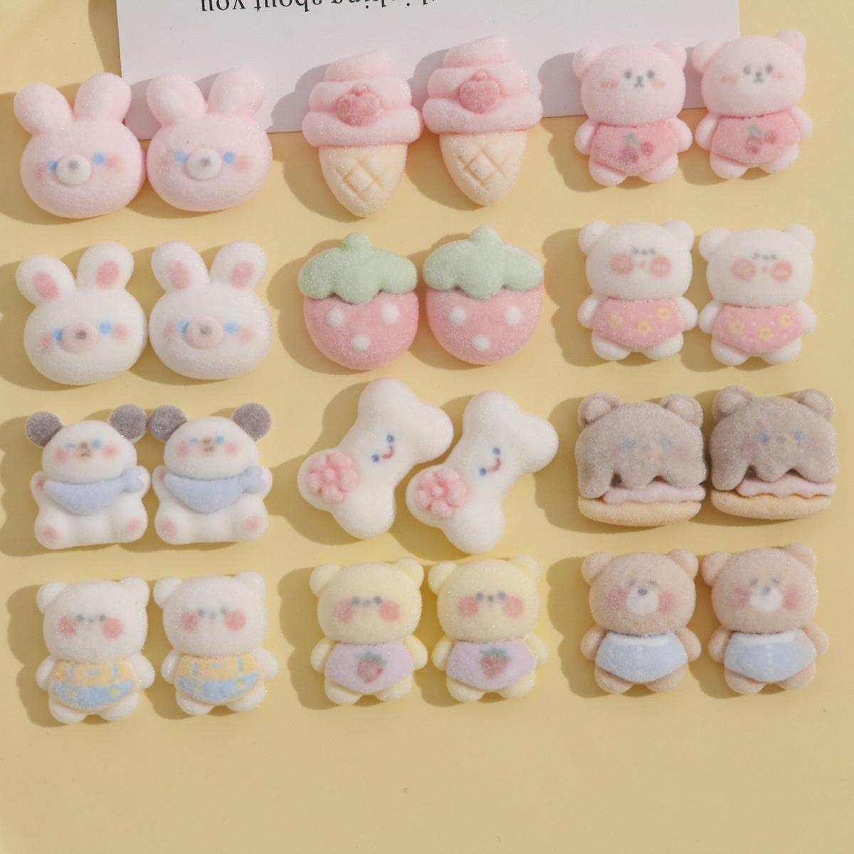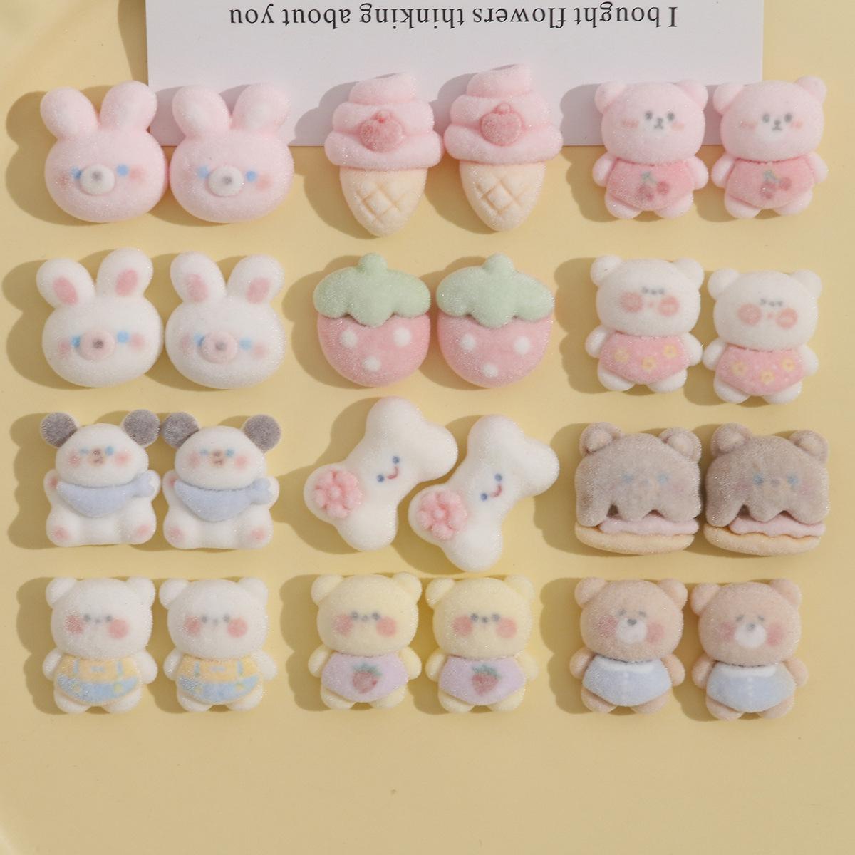 Parche de resina con pegamento para helado, fresa y crema, con diseño creativo de conejo rosa de peluche y oso de café. |