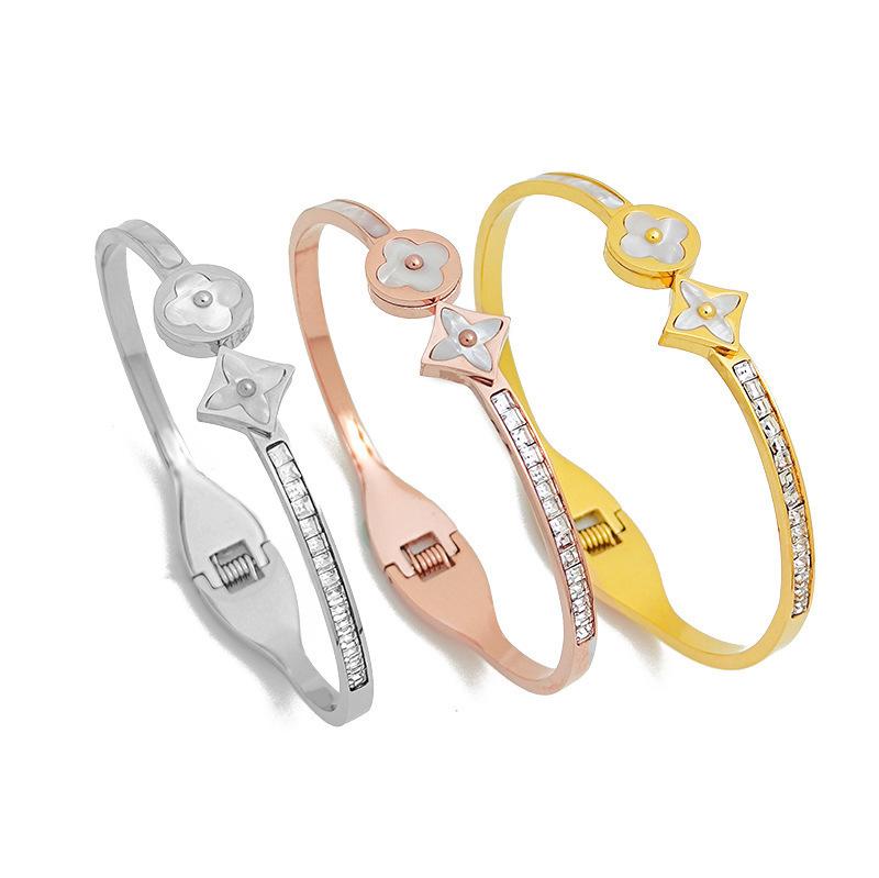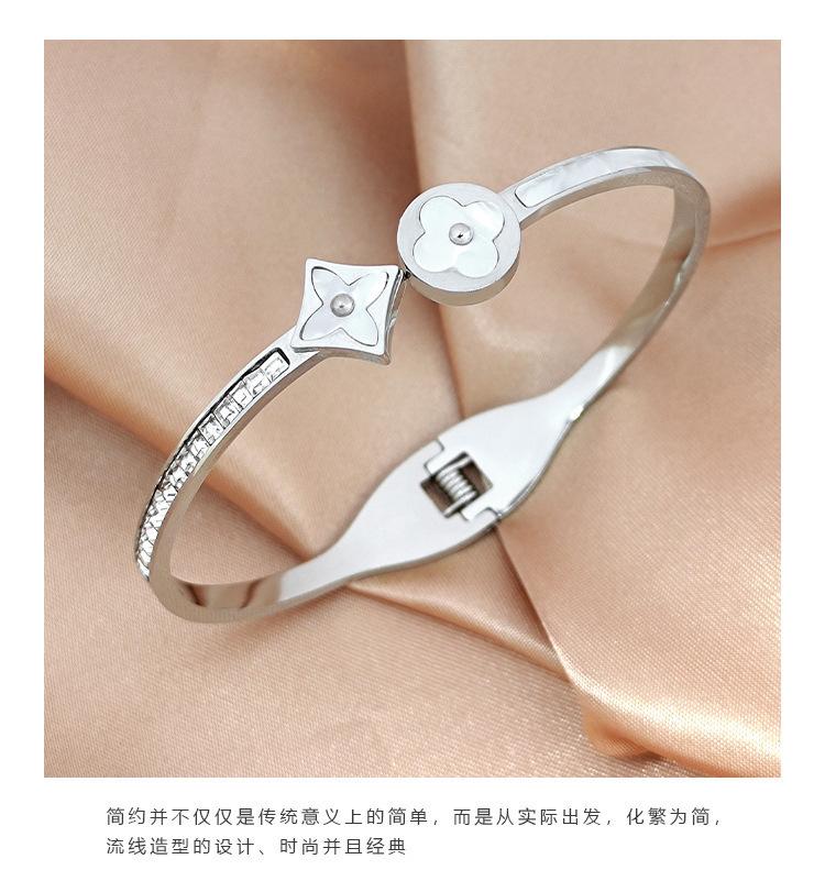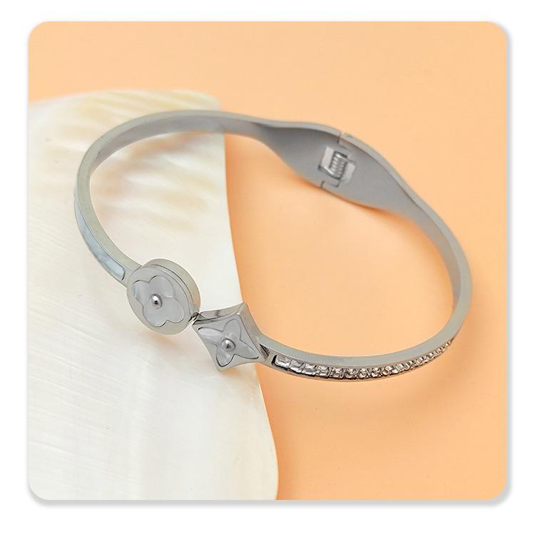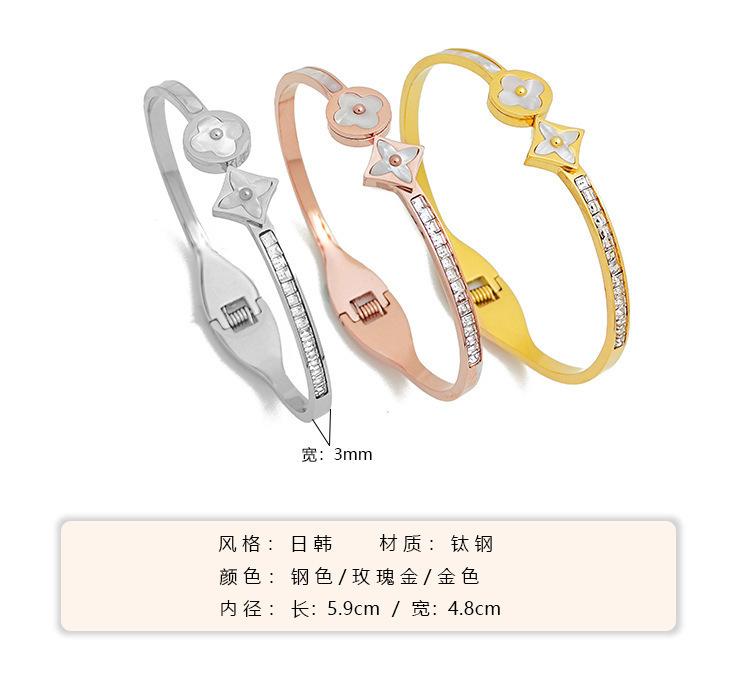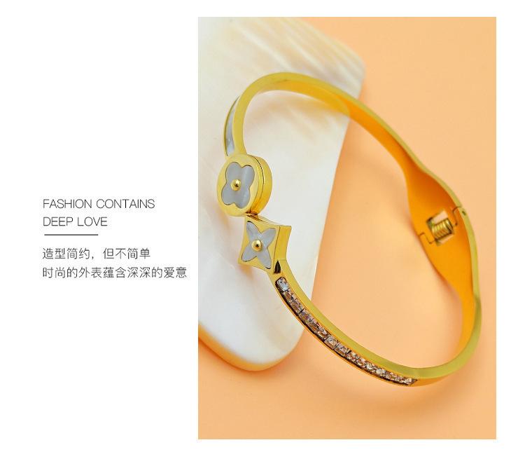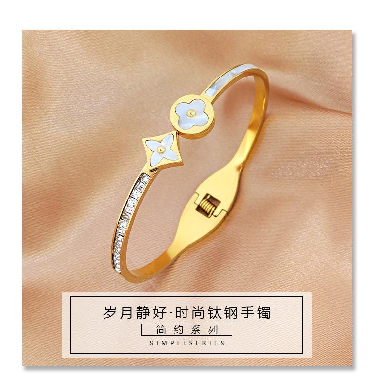 Pulsera de Moda Estilo Coreano Trébol de Cuatro Hojas Fritillaria Chapado en Diamantes Oro de 18K Lujo Ligero Diseño Simple Ins Pulsera de Acero Titanio para Mujer