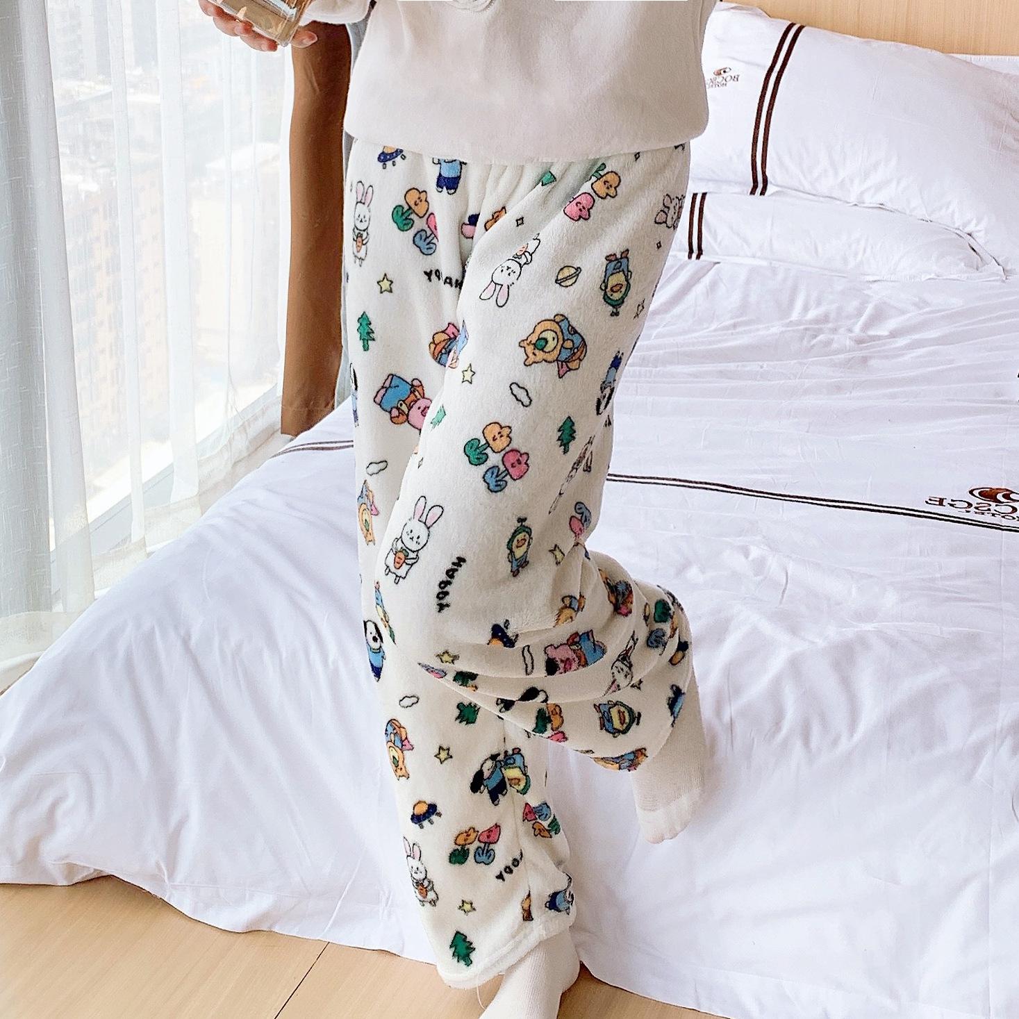 Pijama de Franela de Animal Volador de Dibujos Animados para Mujer Otoño e Invierno Nuevo Terciopelo Coral Espesado Cálido Casual Pantalón de Casa