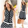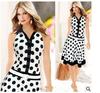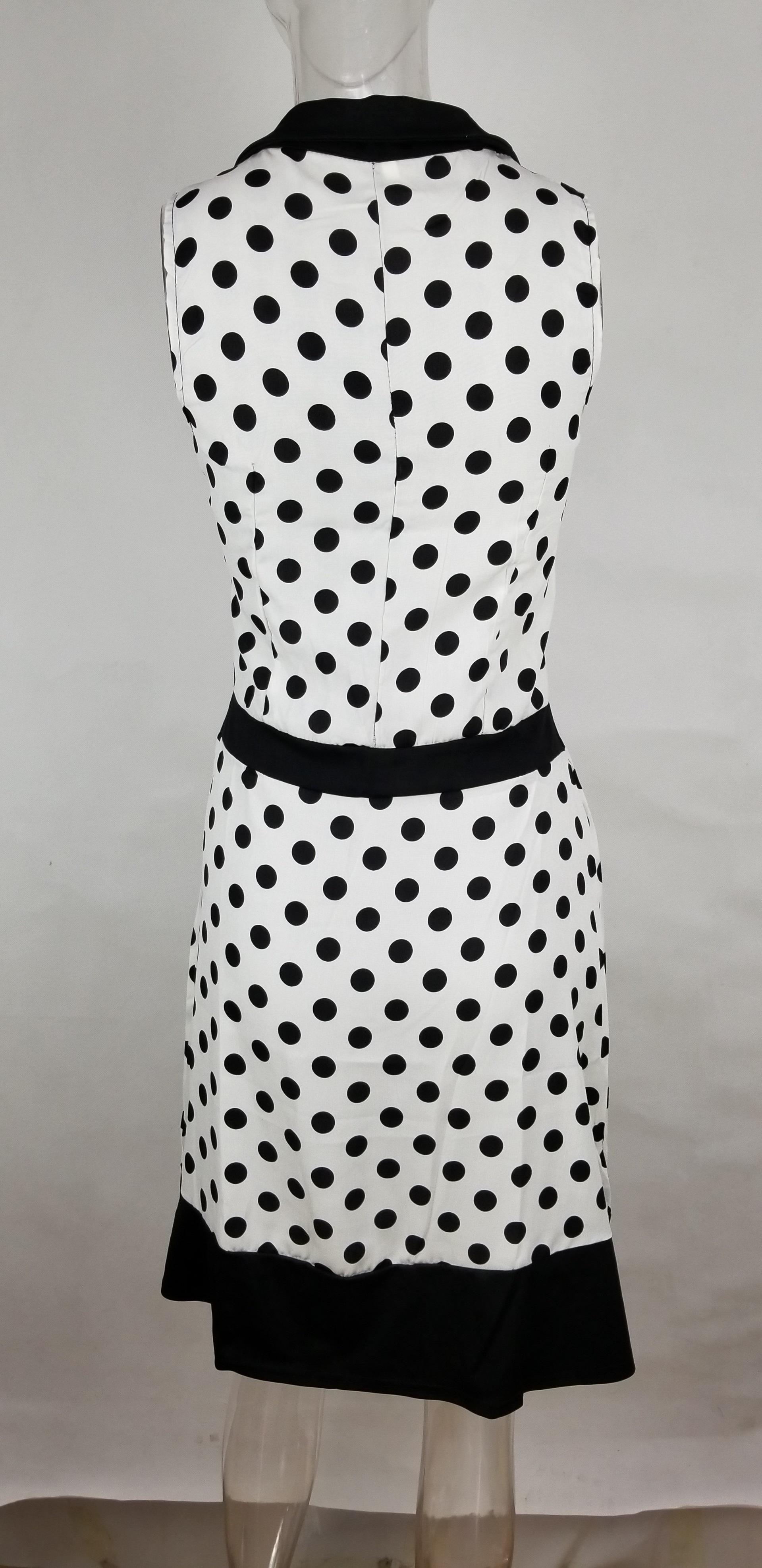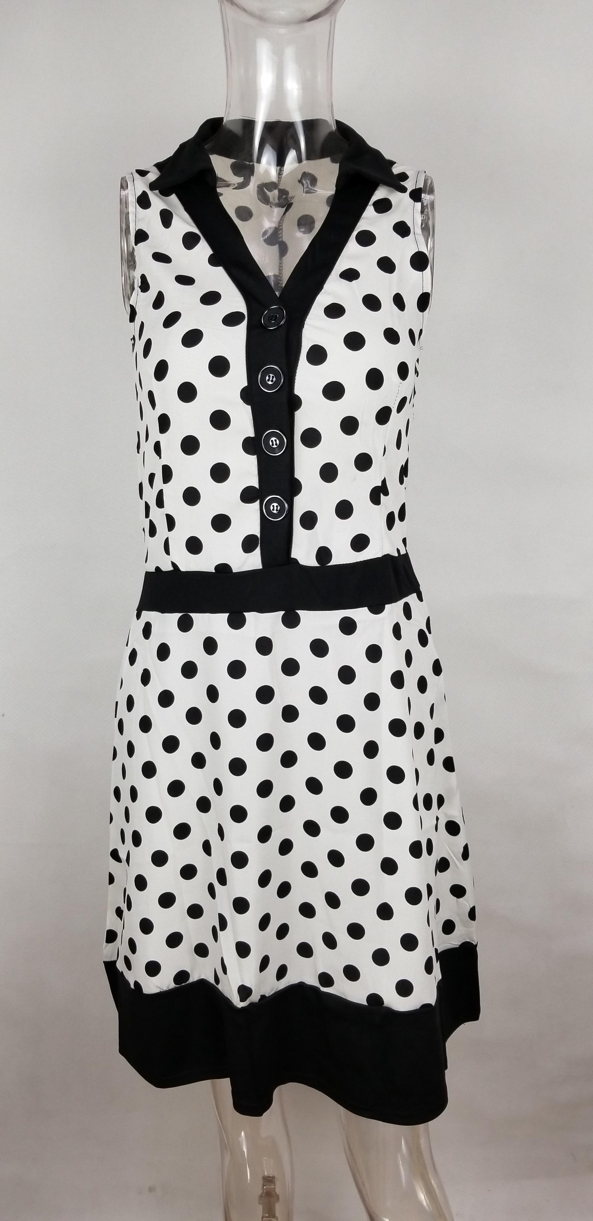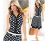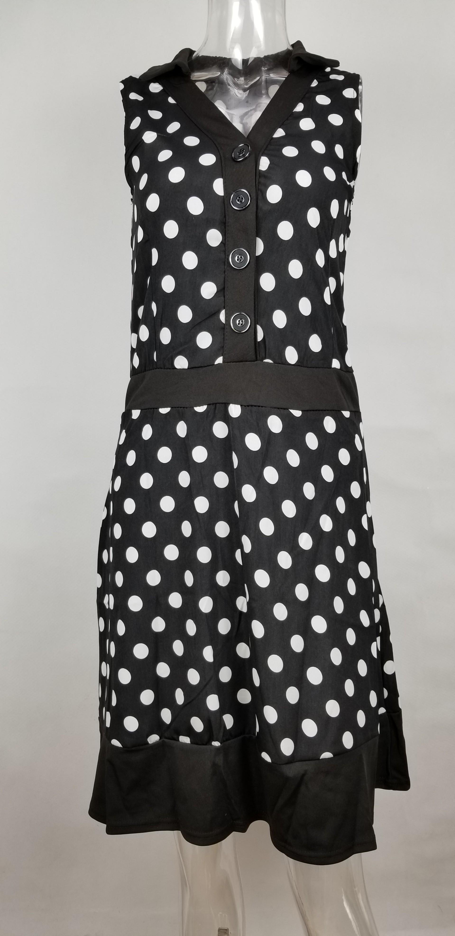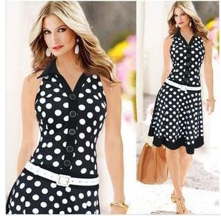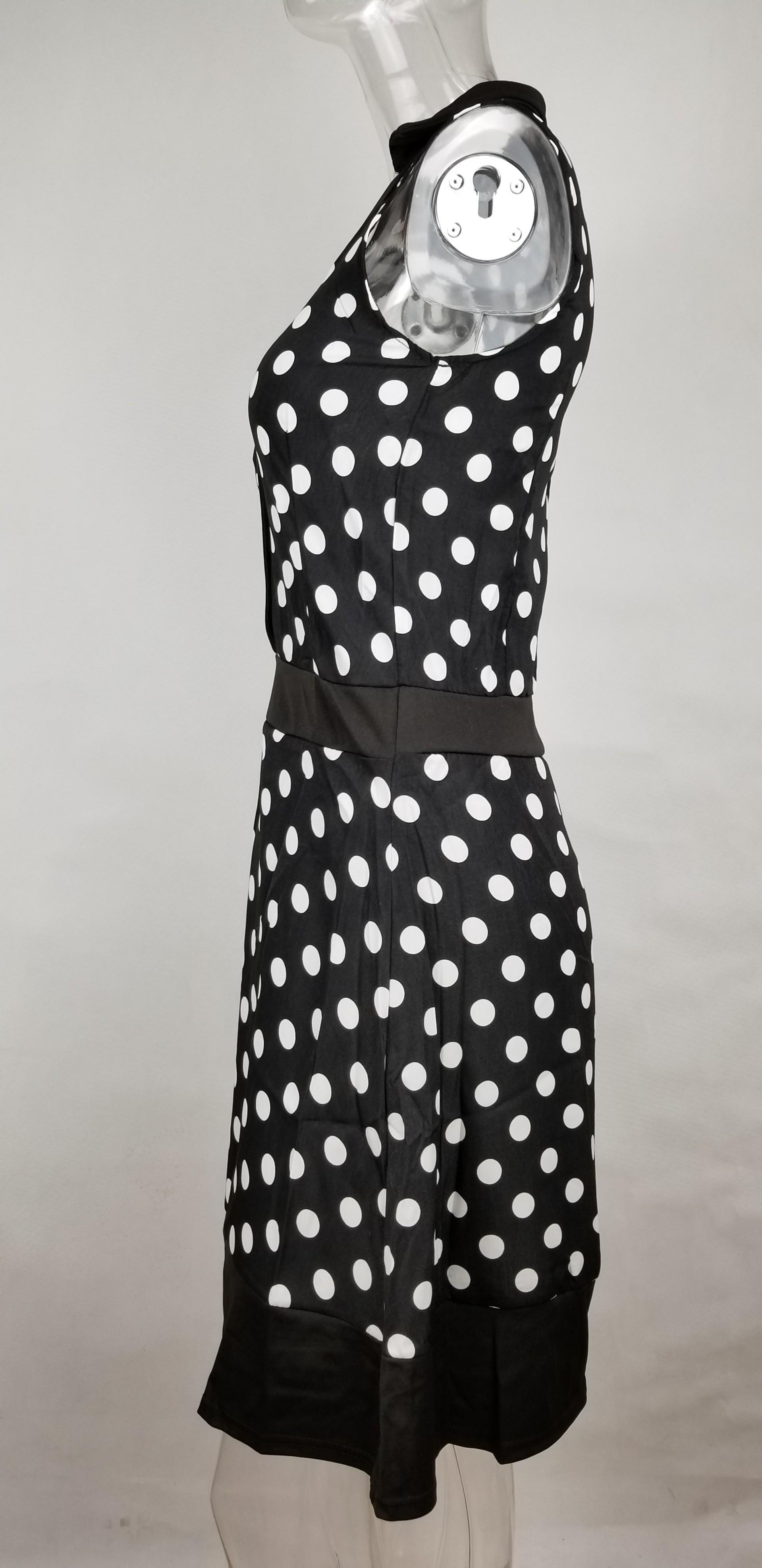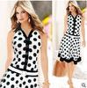 2183 Vestido de Solapa sin Mangas con Lunares Estilo Europeo y Americano de Ebay Aliexpress con Dobladillo Grande y Cinturón