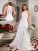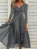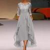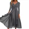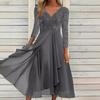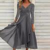 Vestido de gasa de manga larga de otoño e invierno de Amazon europeo y americano con encaje de corte y cuello en V empalmado, vestido de noche para dama de honor