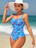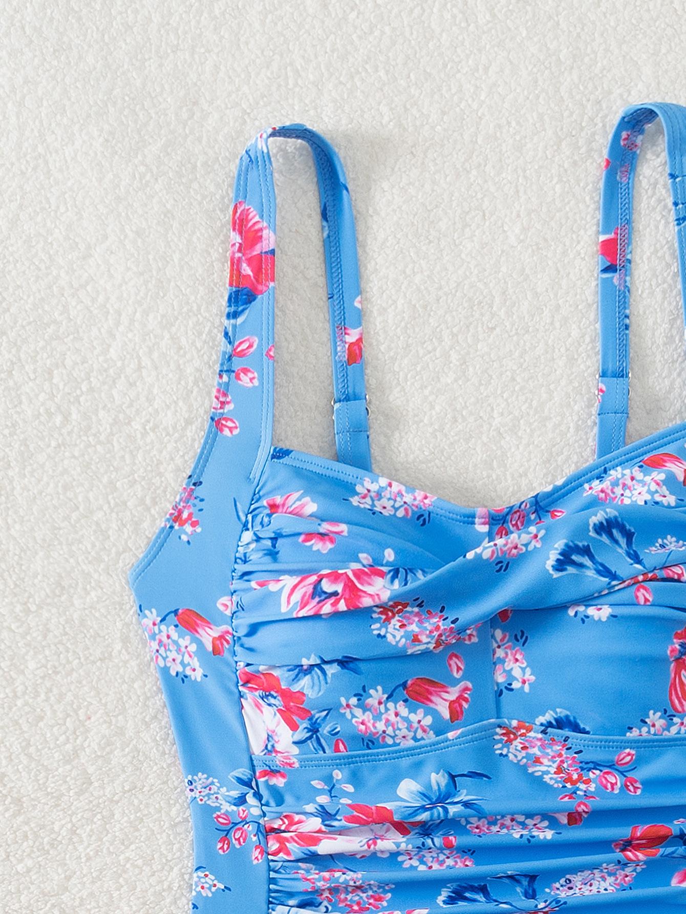 Traje de baño de una pieza para mujer, estampado floral, con tirantes ajustables, SH268