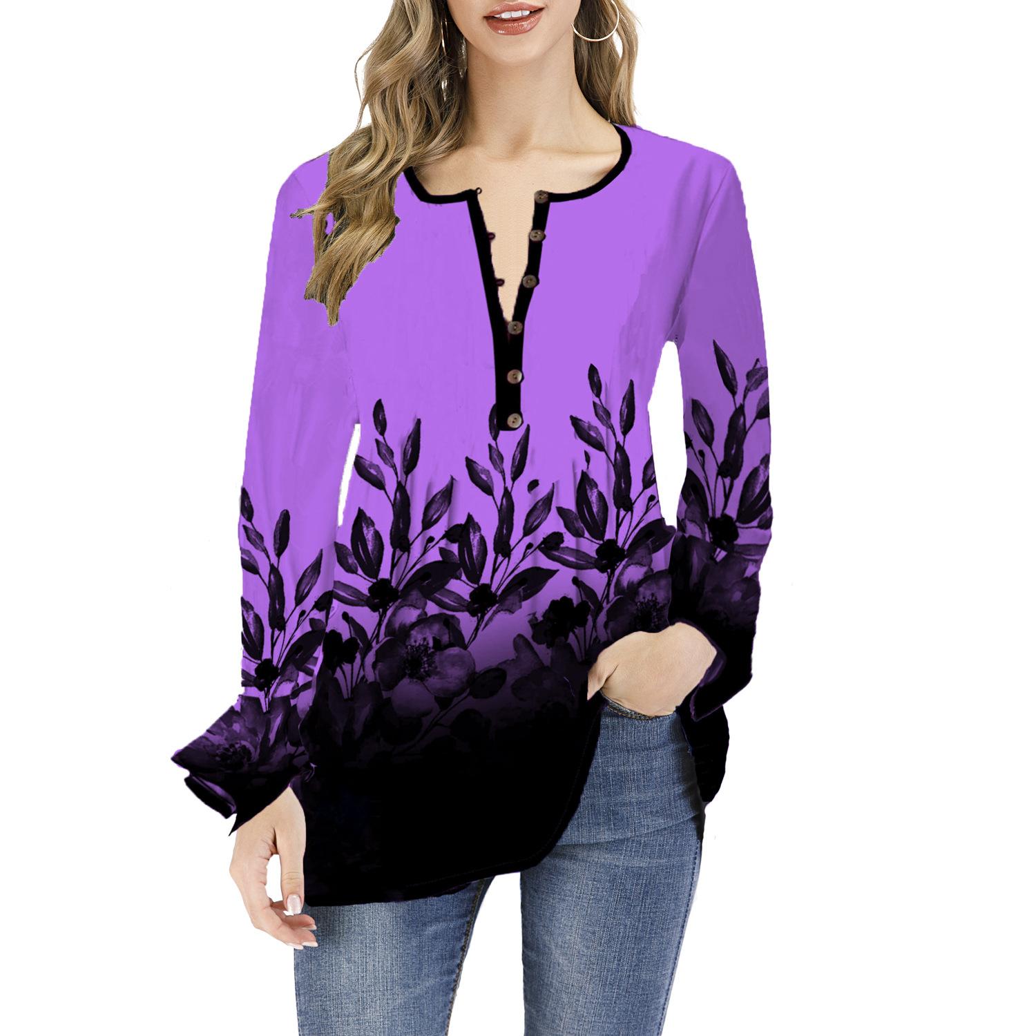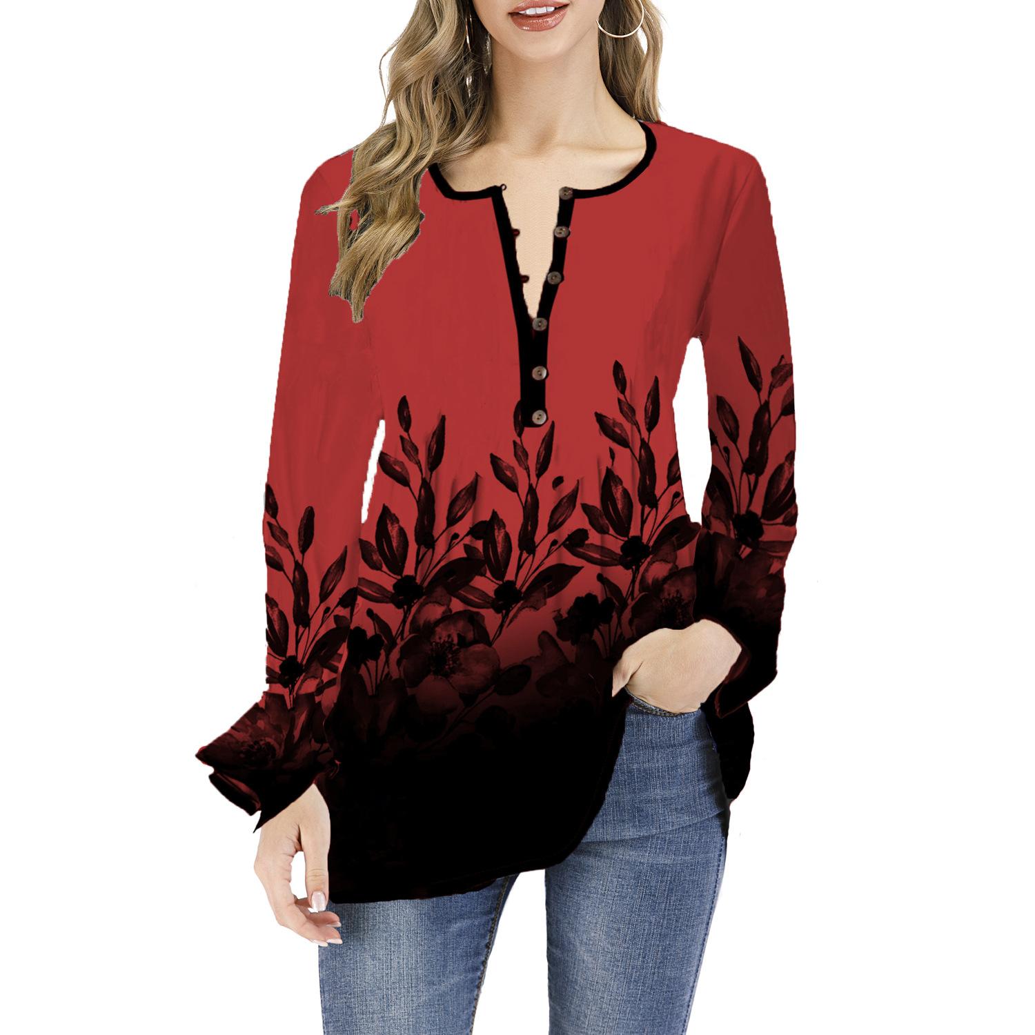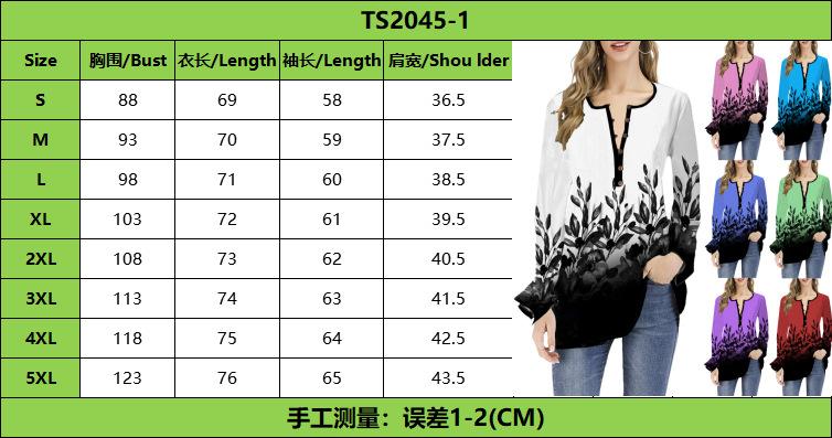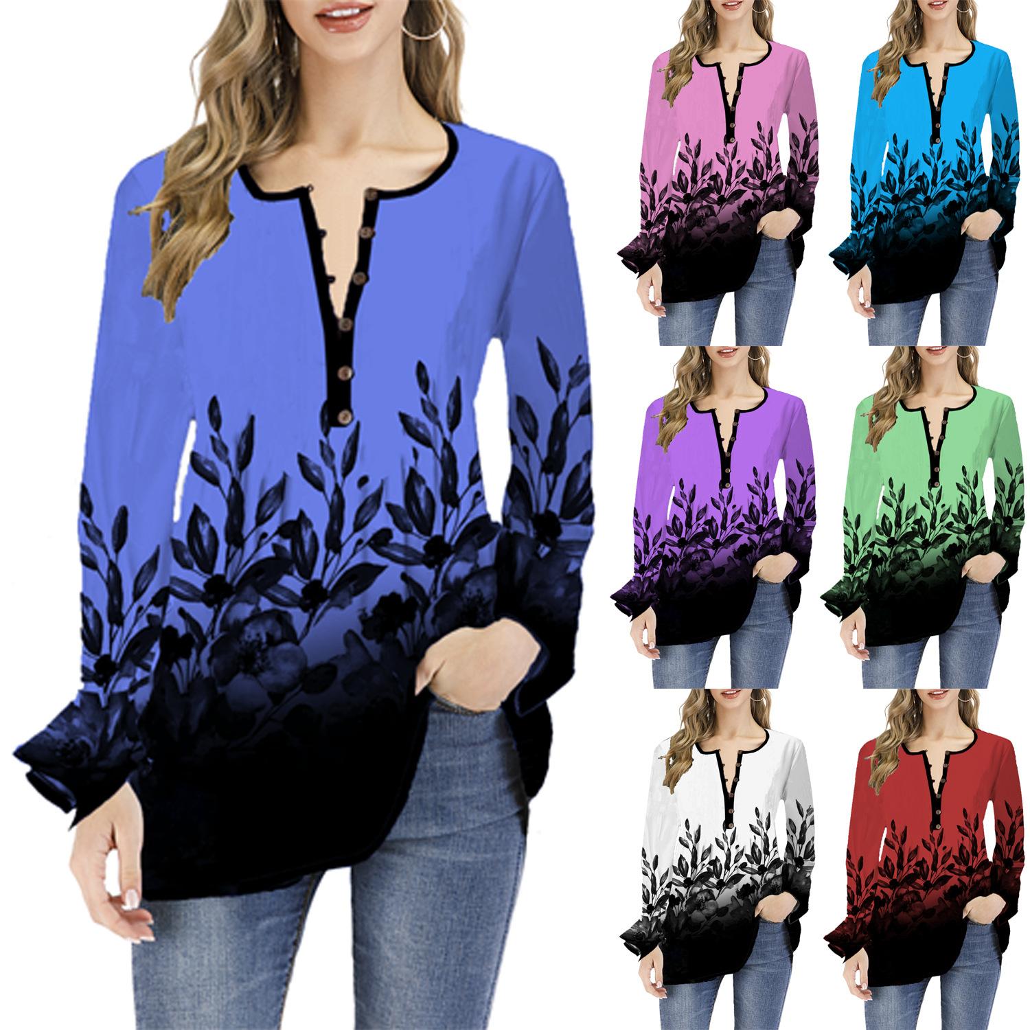 Nuevos estilos de otoño e invierno en Europa y América, camiseta de manga de hoja de loto estampada en 3D con cuello abierto, 7 colores y 8 tallas