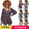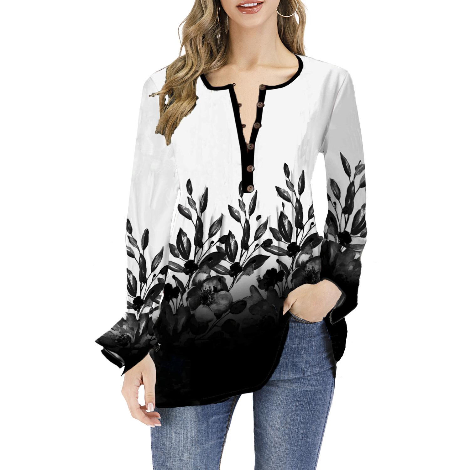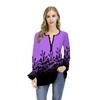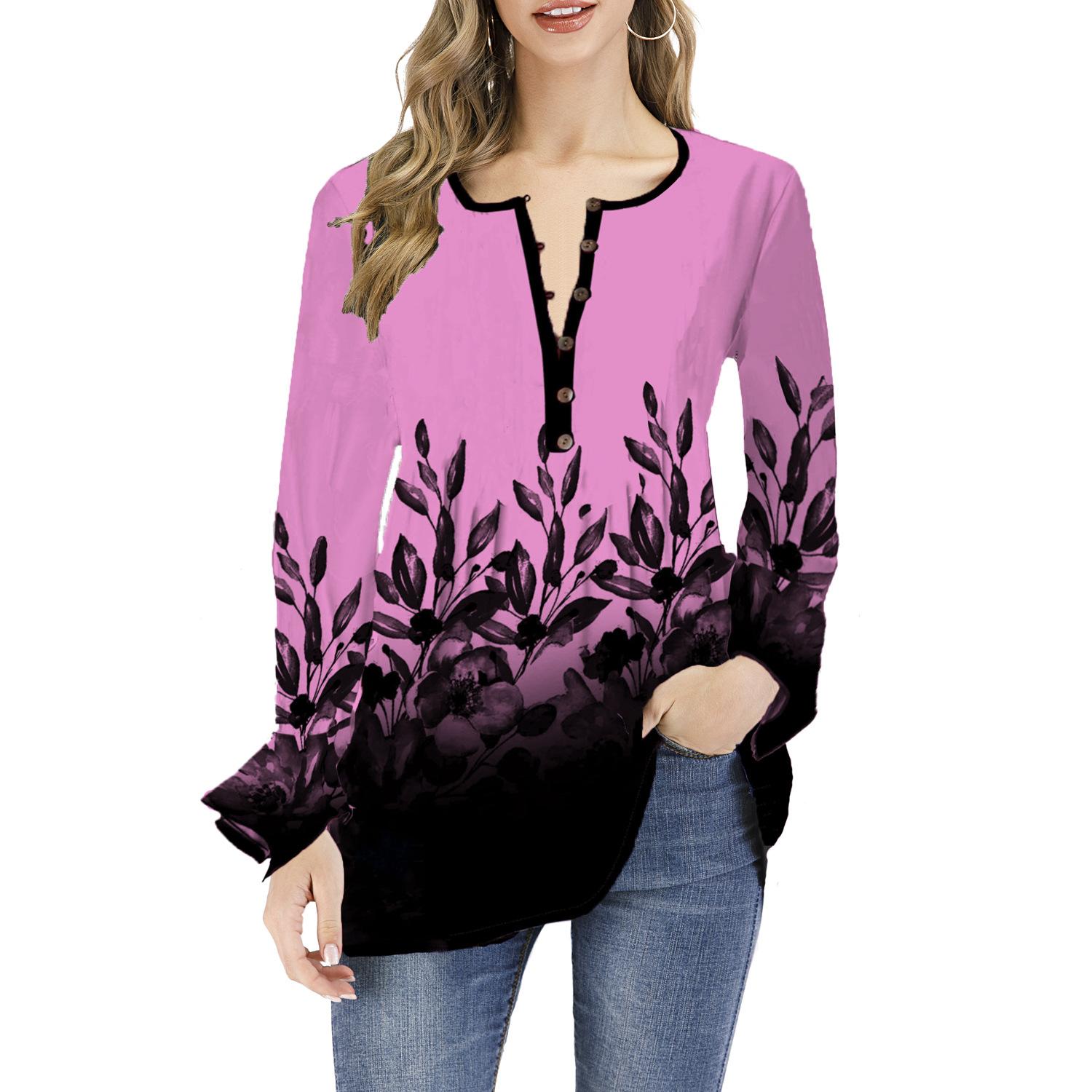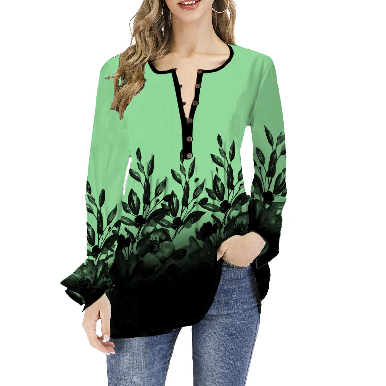 Nuevos estilos de otoño e invierno en Europa y América, camiseta de manga de hoja de loto estampada en 3D con cuello abierto, 7 colores y 8 tallas
