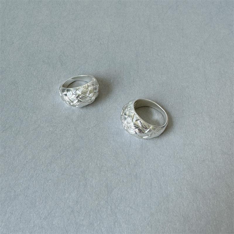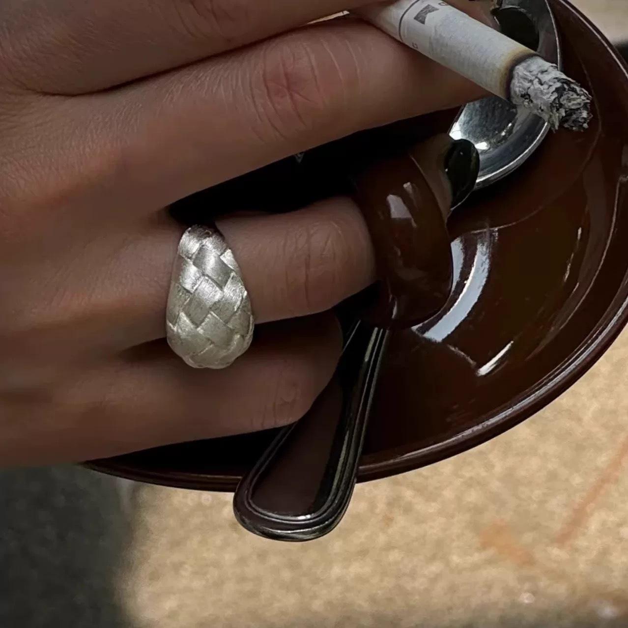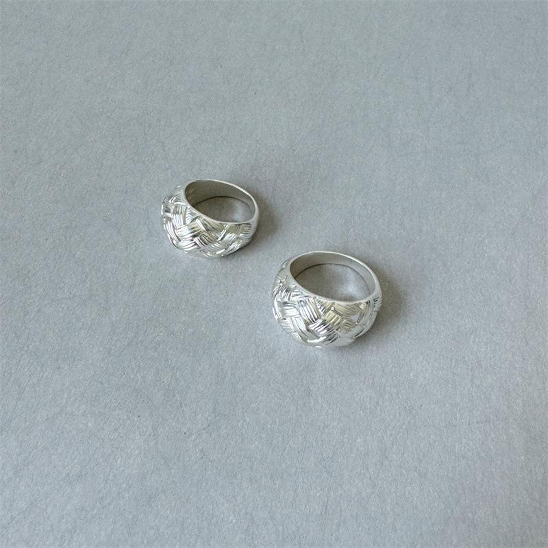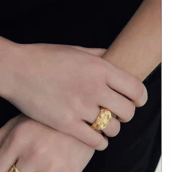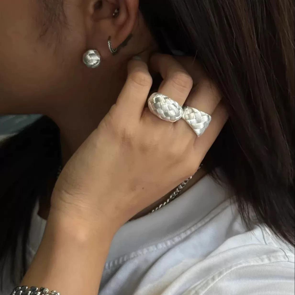 Anillo de diseño de nicho con trefilado tejido a mano, estilo retro europeo y americano, de textura entrelazada simple y metálica de alta calidad para mujer.