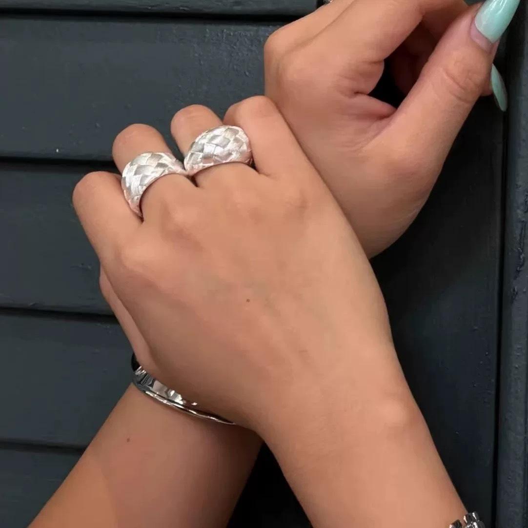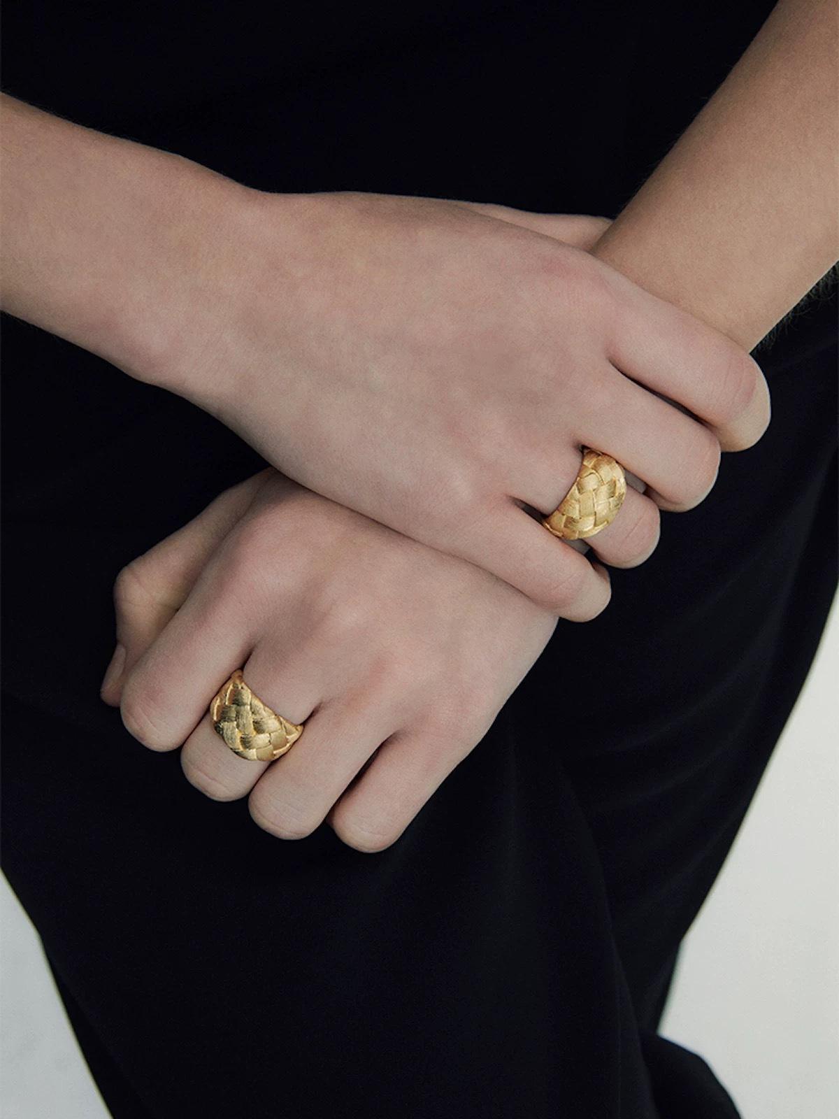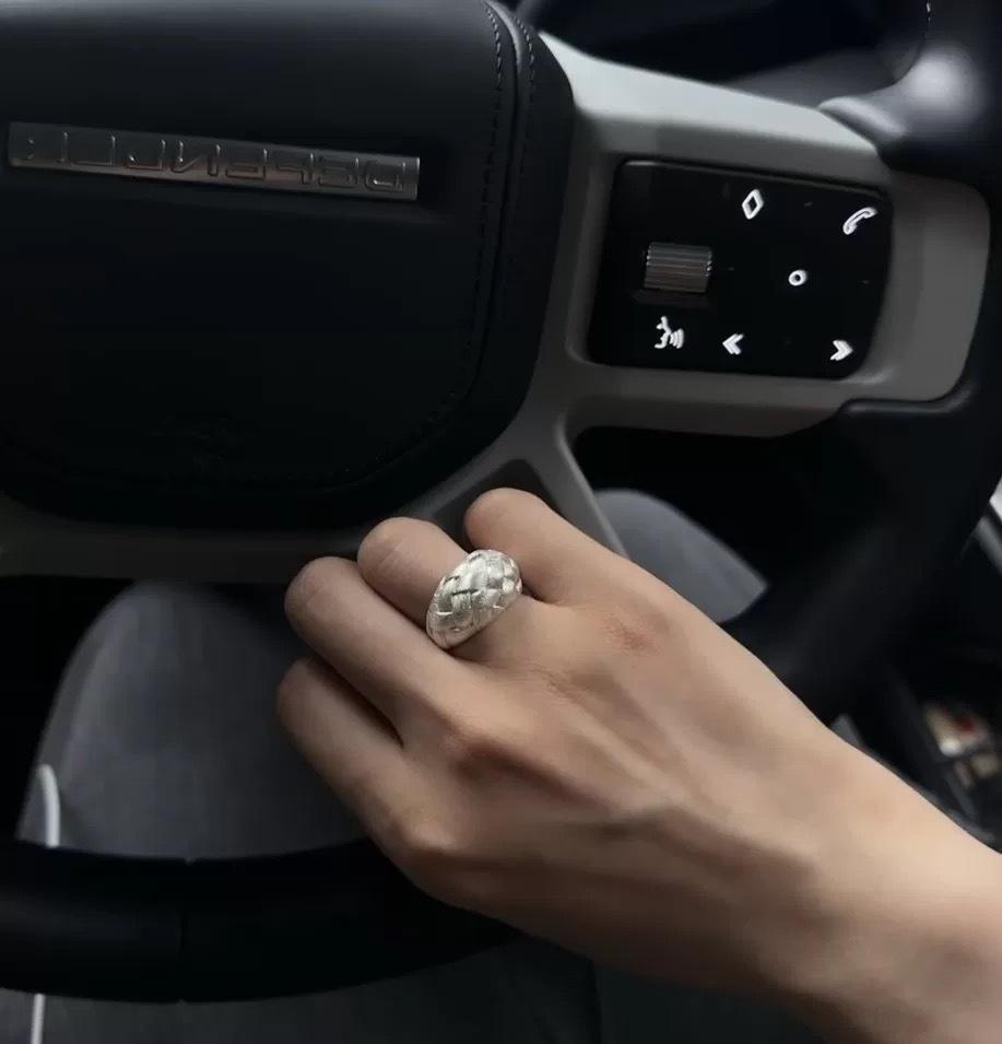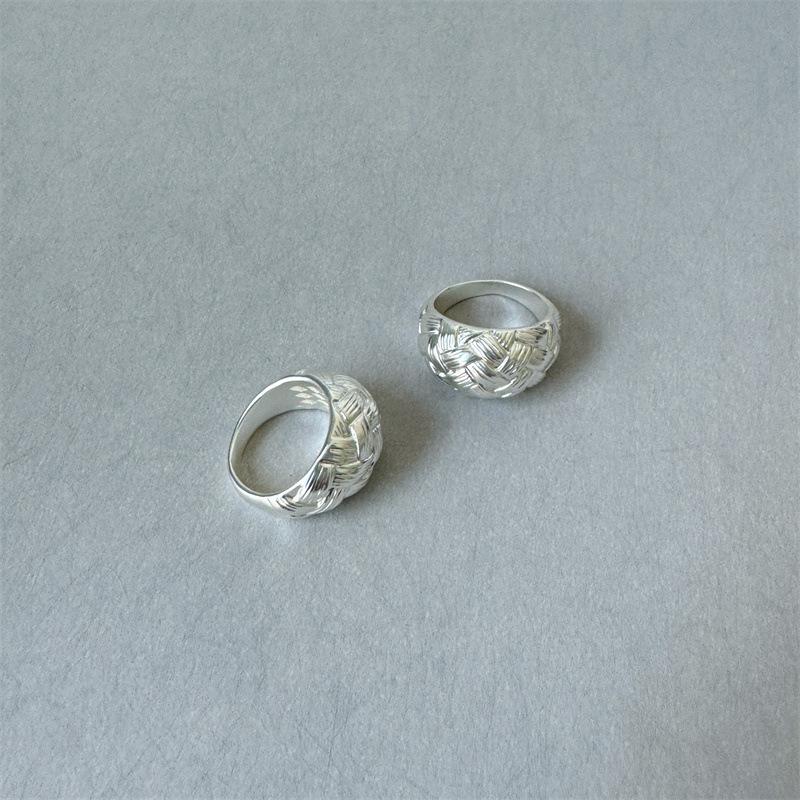 Anillo de diseño de nicho con trefilado tejido a mano, estilo retro europeo y americano, de textura entrelazada simple y metálica de alta calidad para mujer.
