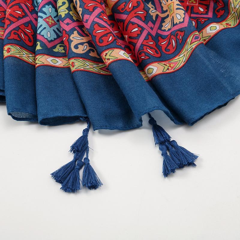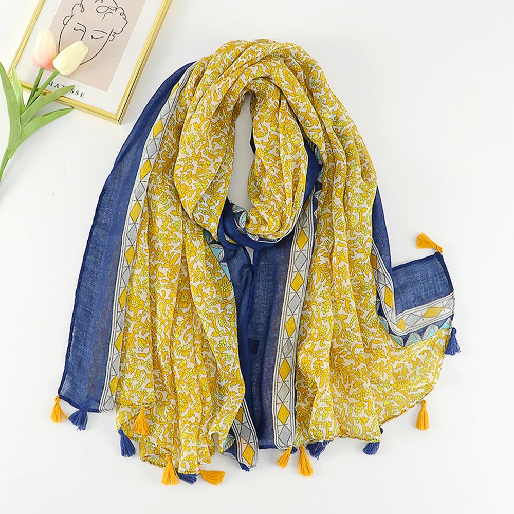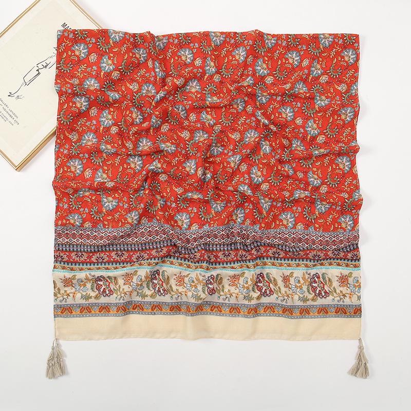 Bufanda de algodón y lino de exportación transfronteriza, ropa de estilo nacional, bufanda de seda, chal con borlas y protector solar de estilo nacional para mujer