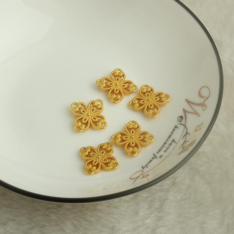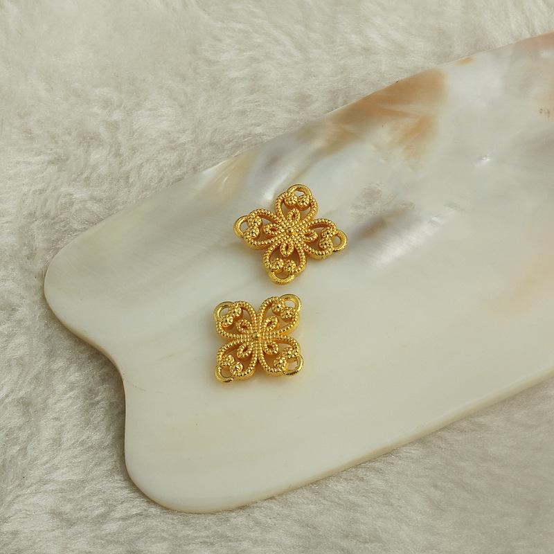 Oro arena envuelto en color oro preservador de color pieza de conexión trébol de cuatro hojas flor de ciruelo accesorios de joyería hechos a mano DIY accesorios de pulsera estilo retro