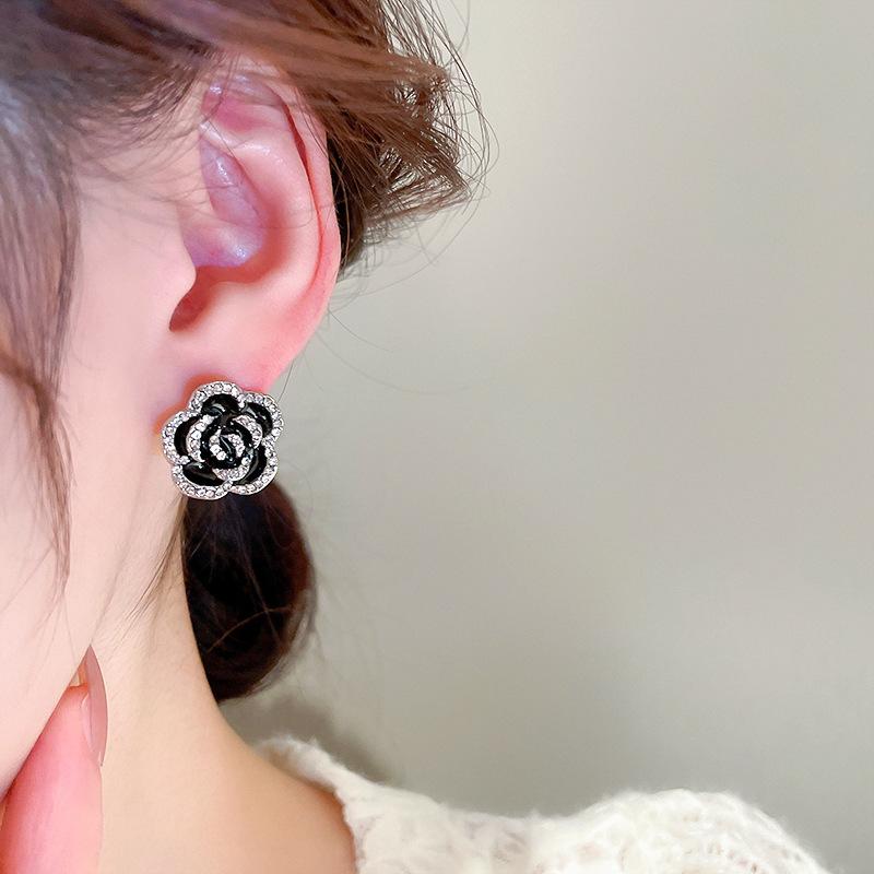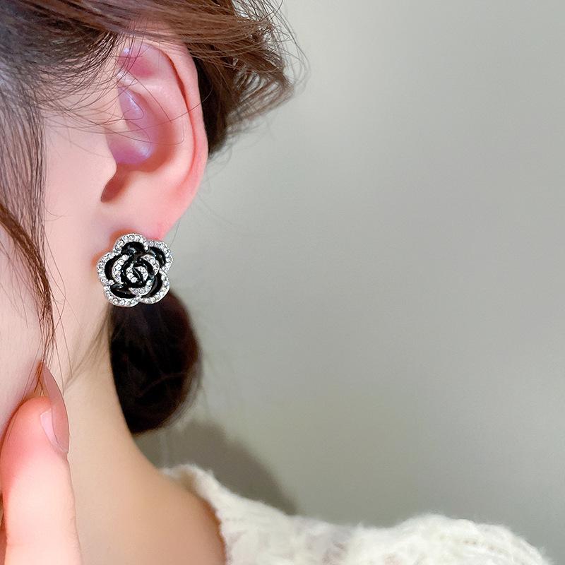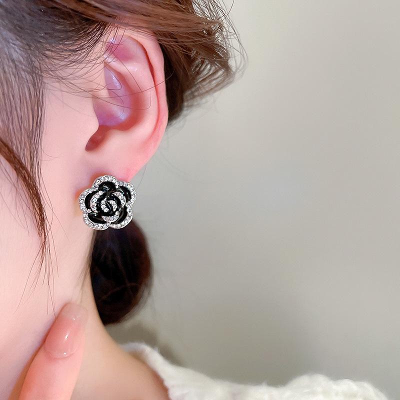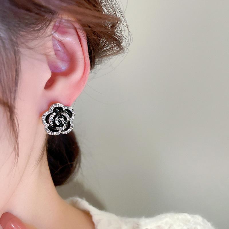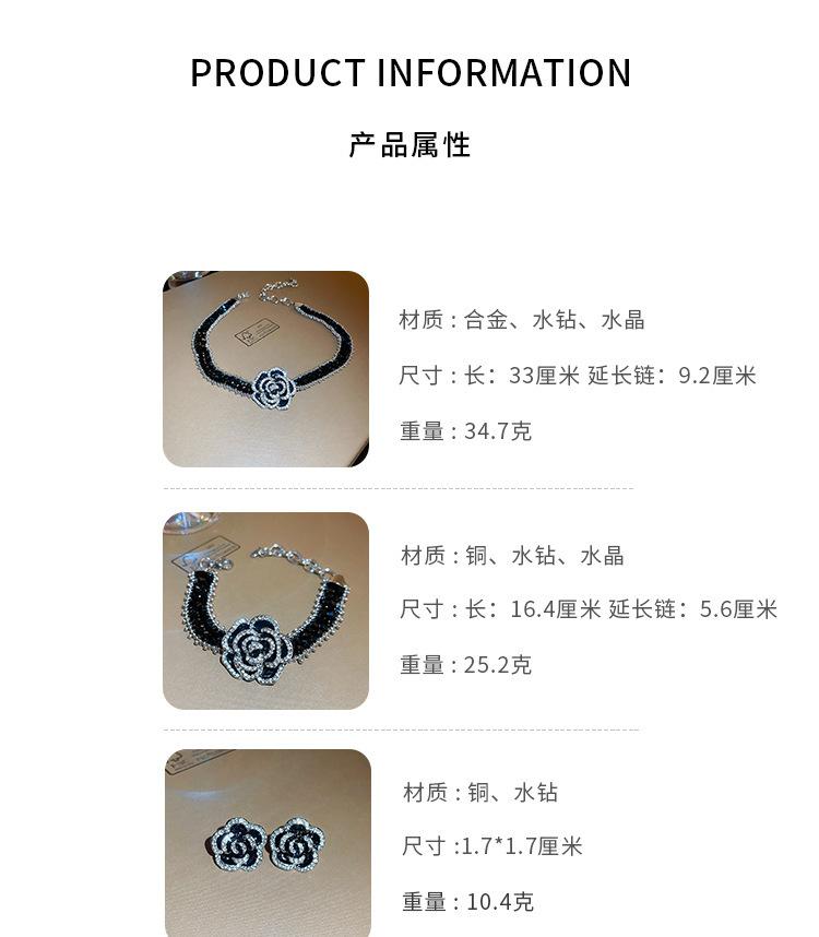 Bracelet-Black (Flowers), Silver Needles-Silver (Flowers), Necklace-Black (Flowers)