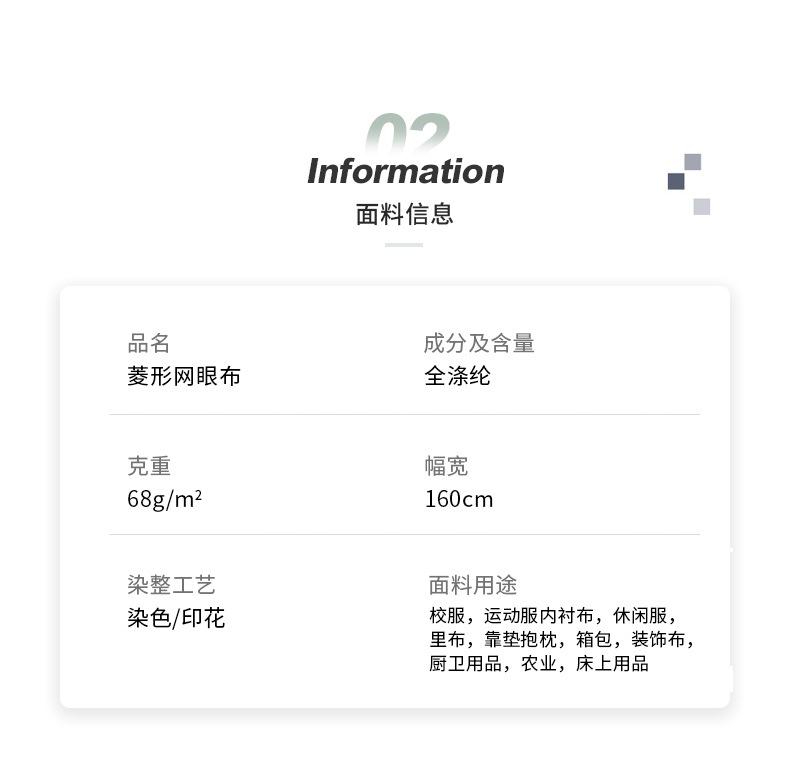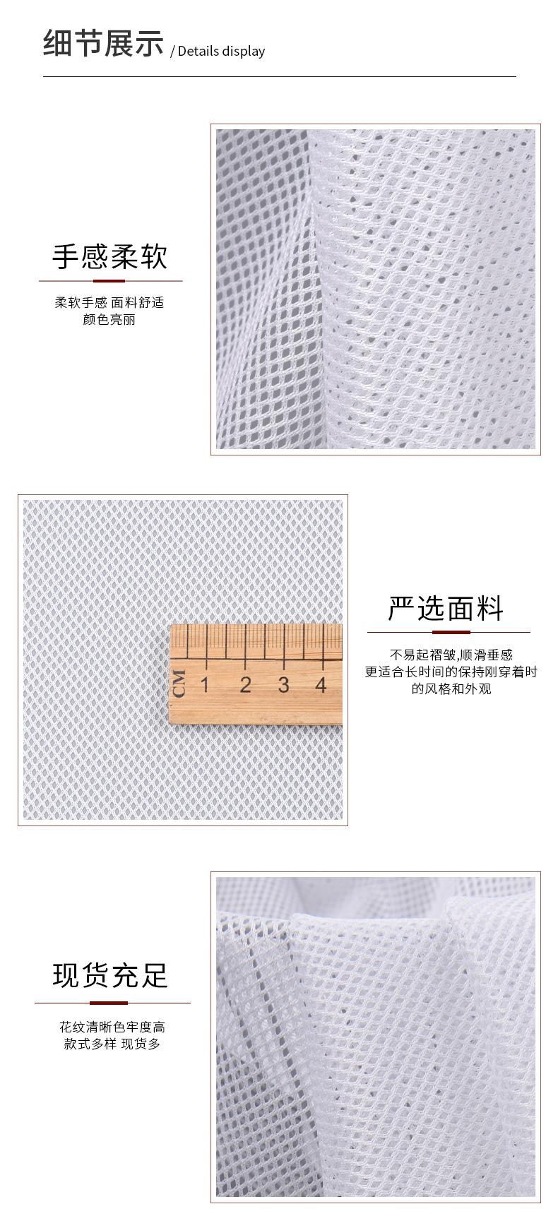 Tela de malla de diamante de poliéster de punto por urdimbre 2*2 de baja elasticidad para forro de bolsas de ropa deportiva