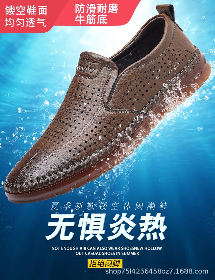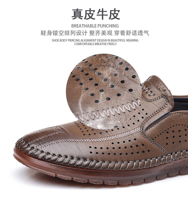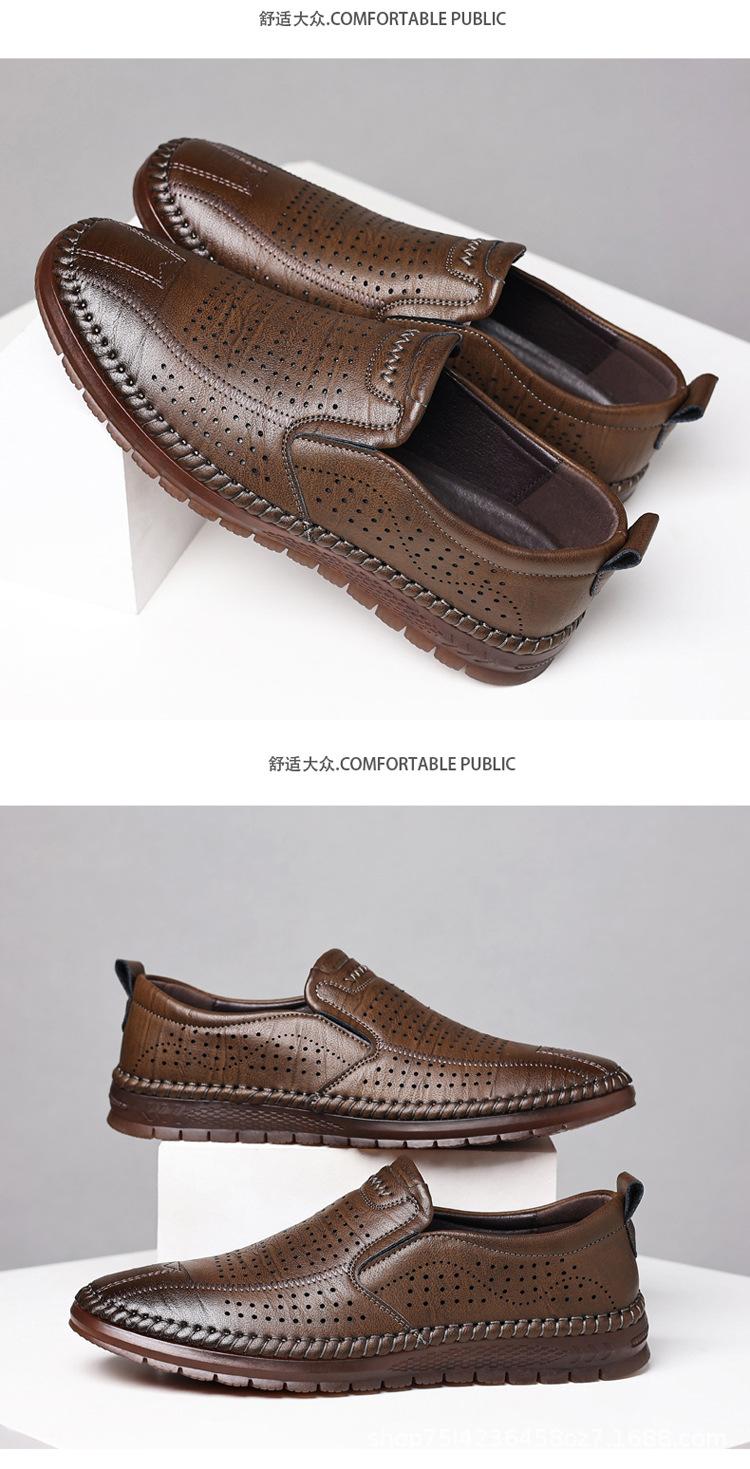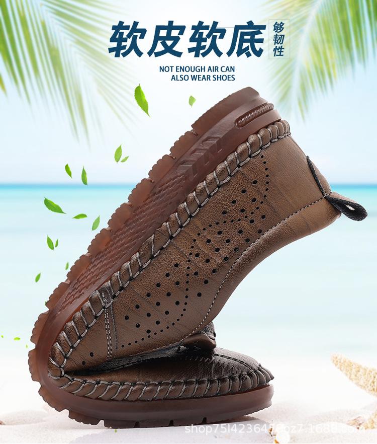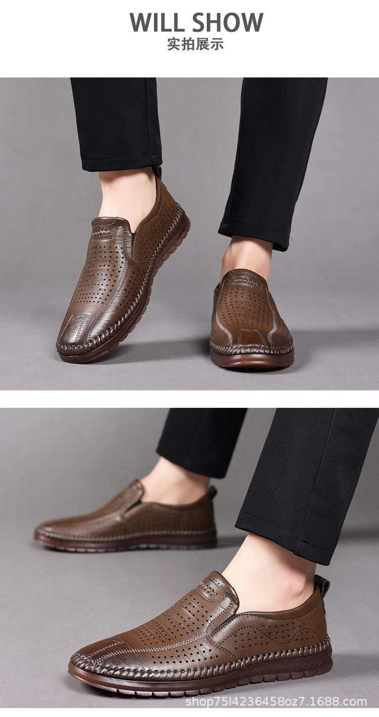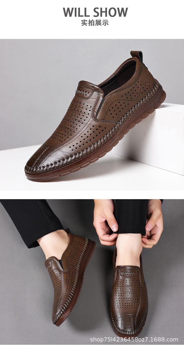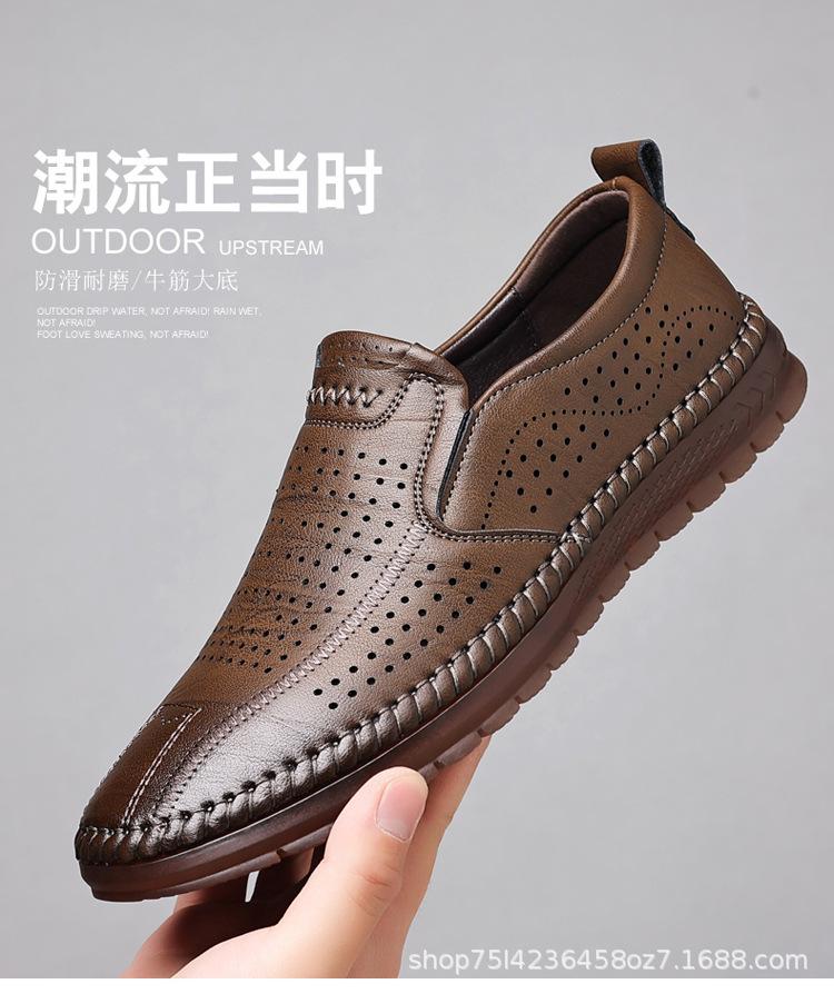 Sandalias huecas, zapatos de cuero para hombre, nuevos zapatos casuales de cuero de verano para hombre, zapatos con agujeros para conducir para hombre, zapatos de cuero de negocios antideslizantes para hombre