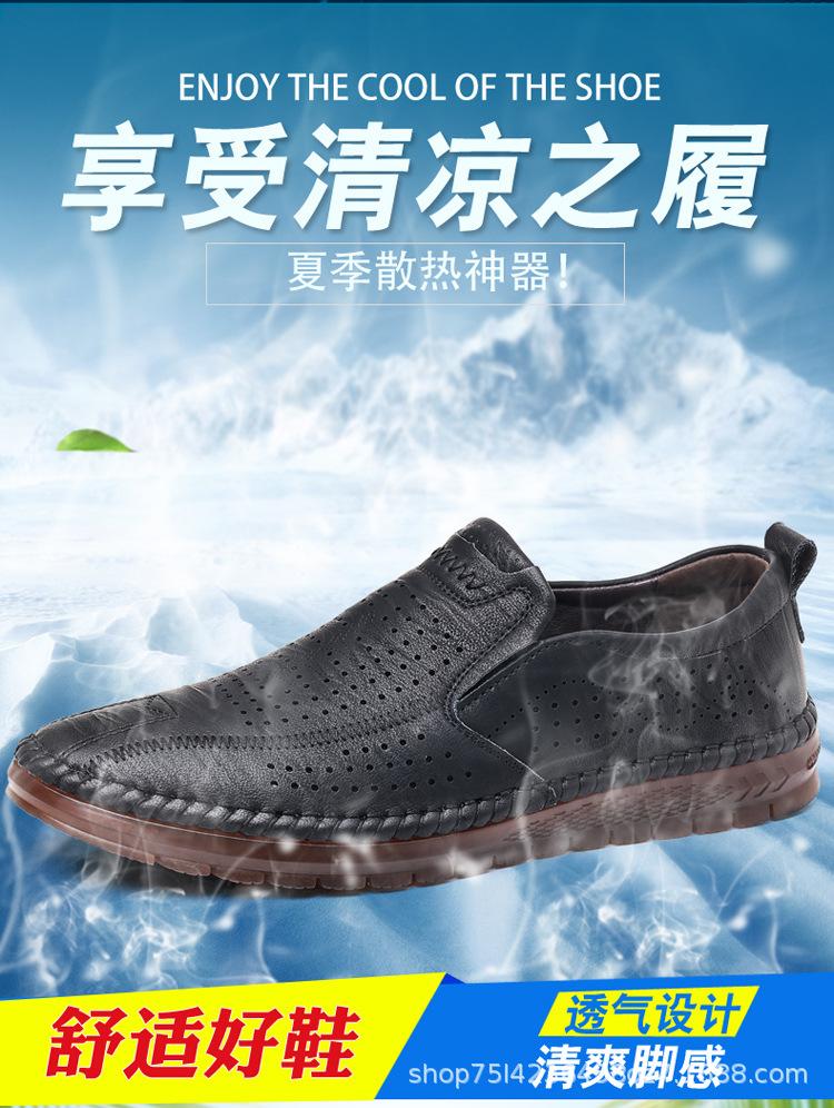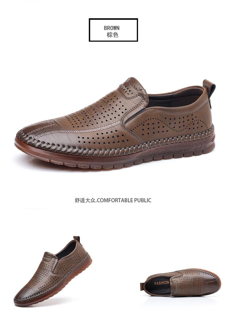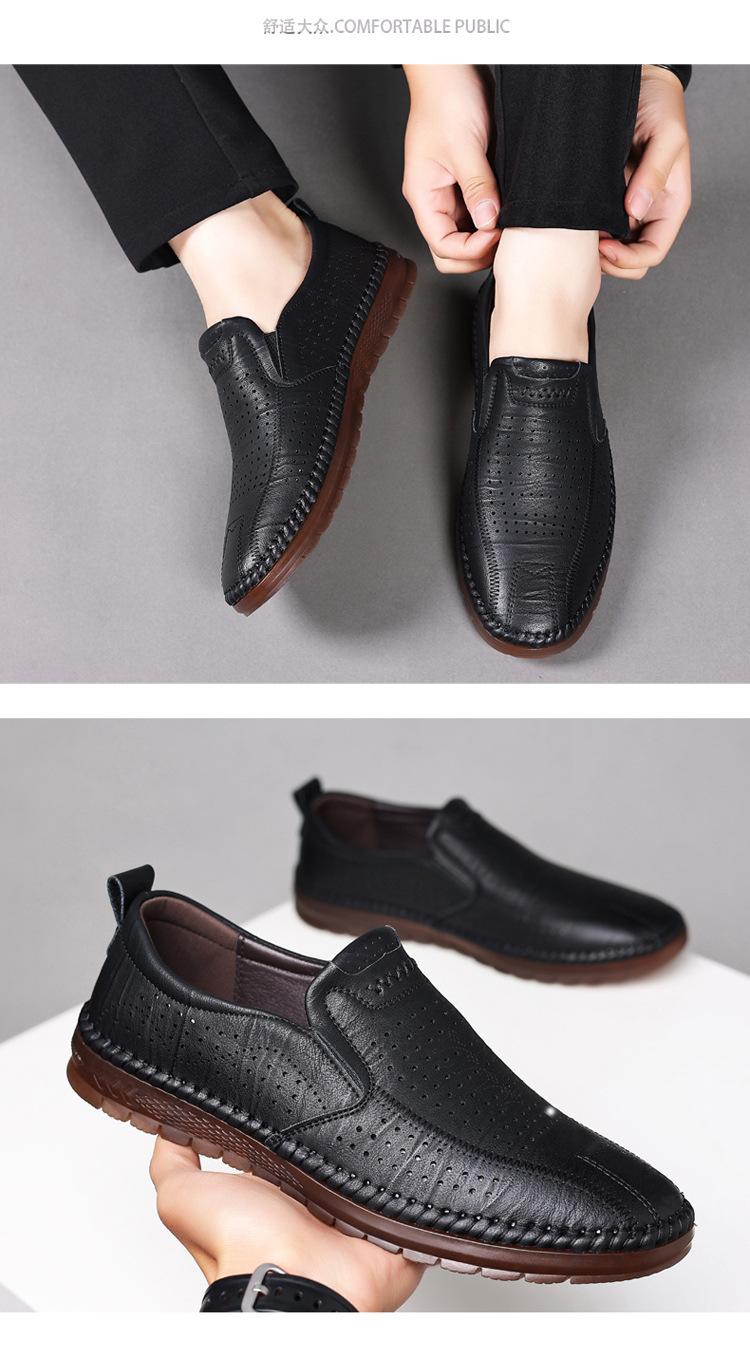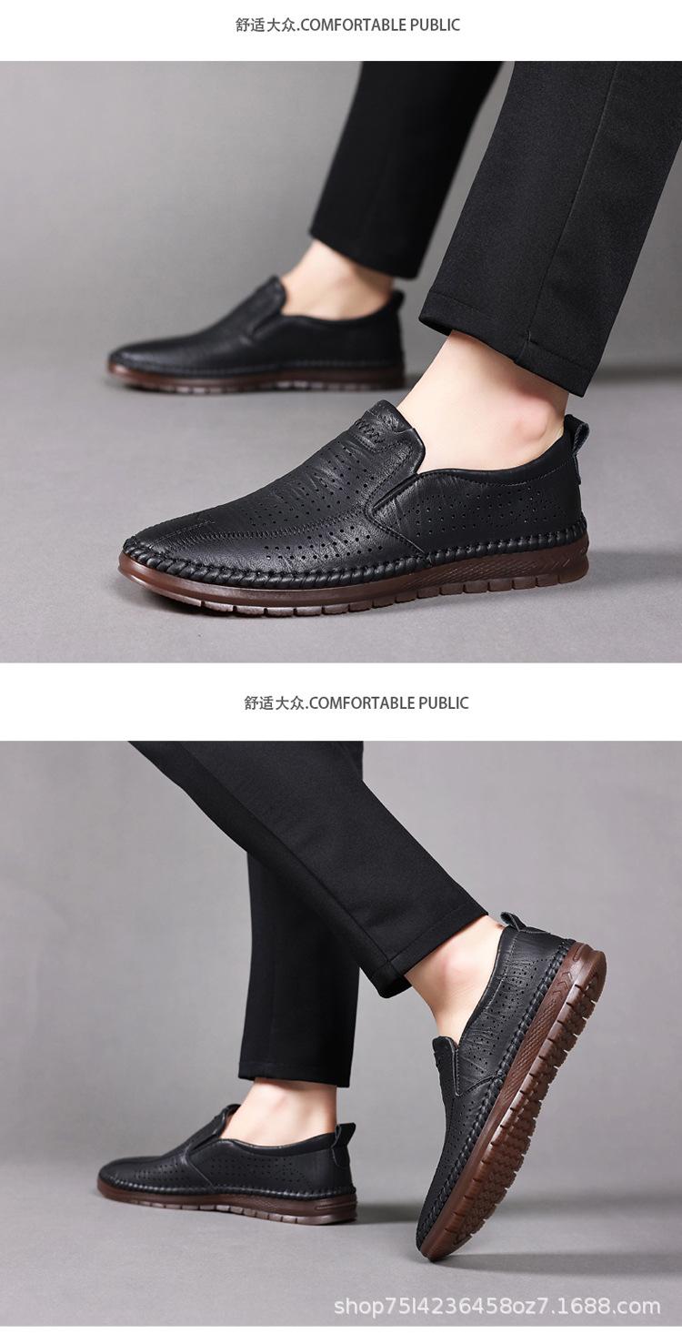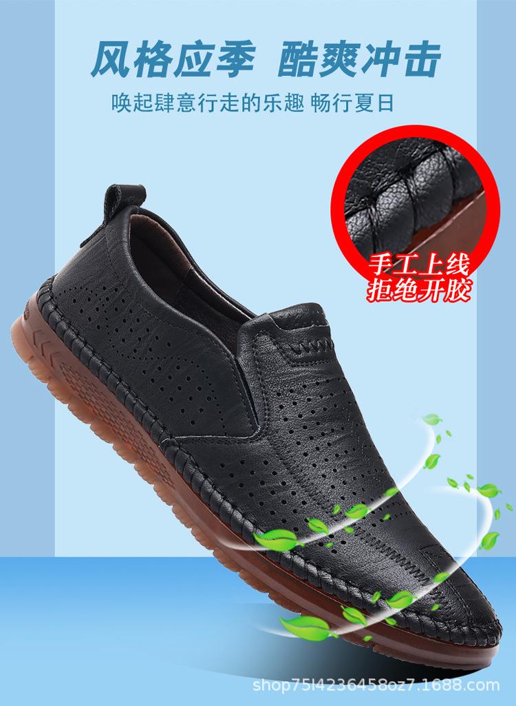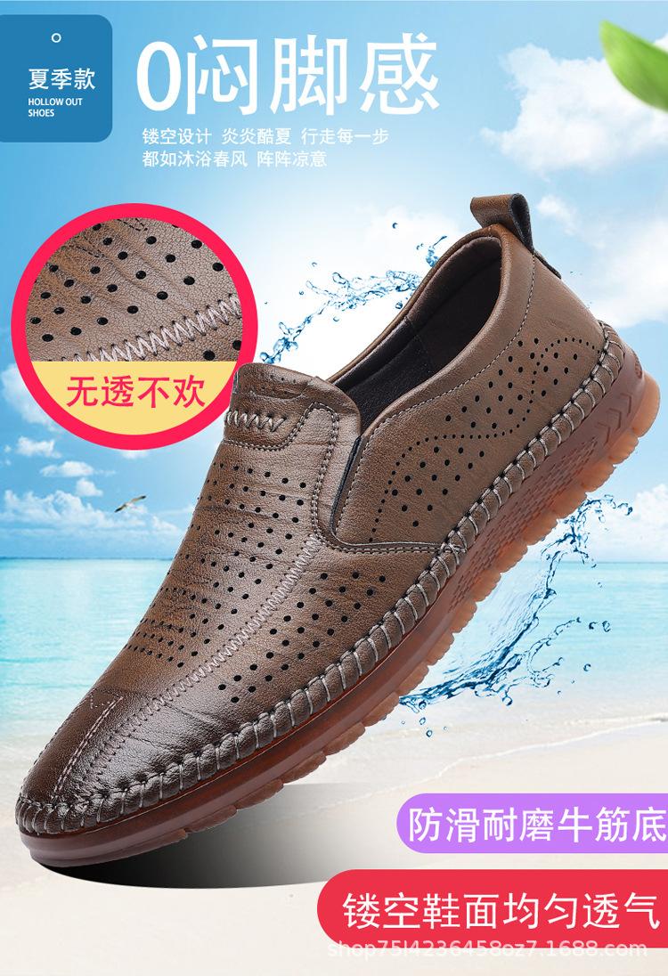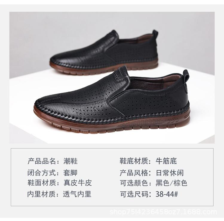 Sandalias huecas, zapatos de cuero para hombre, nuevos zapatos casuales de cuero de verano para hombre, zapatos con agujeros para conducir para hombre, zapatos de cuero de negocios antideslizantes para hombre