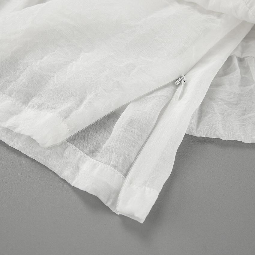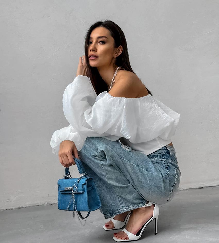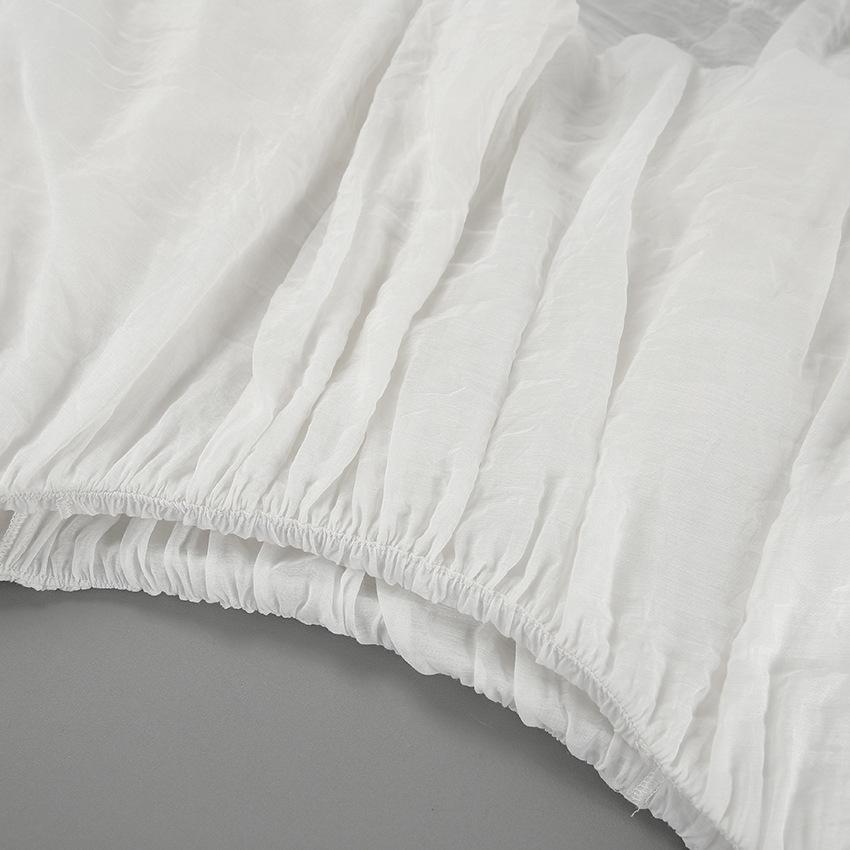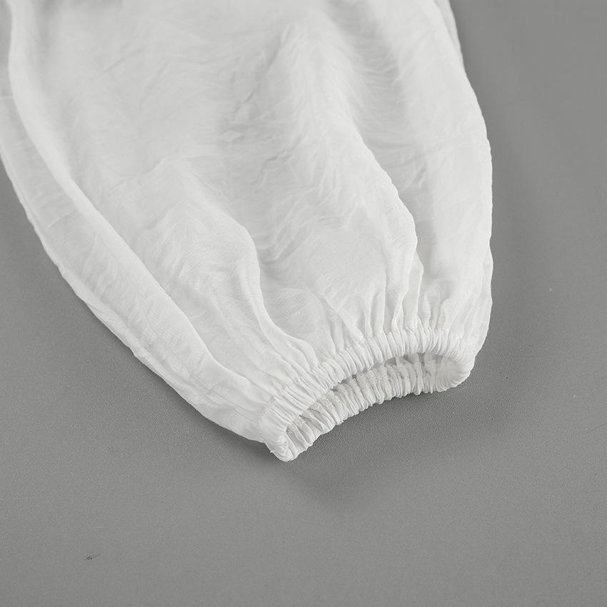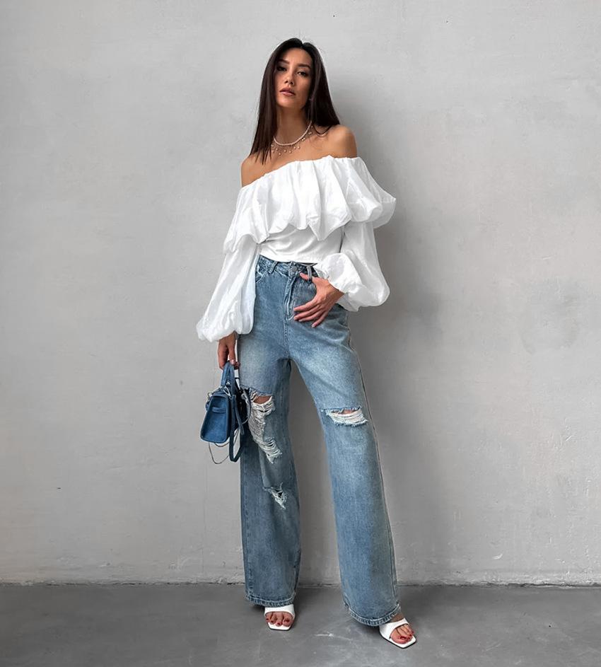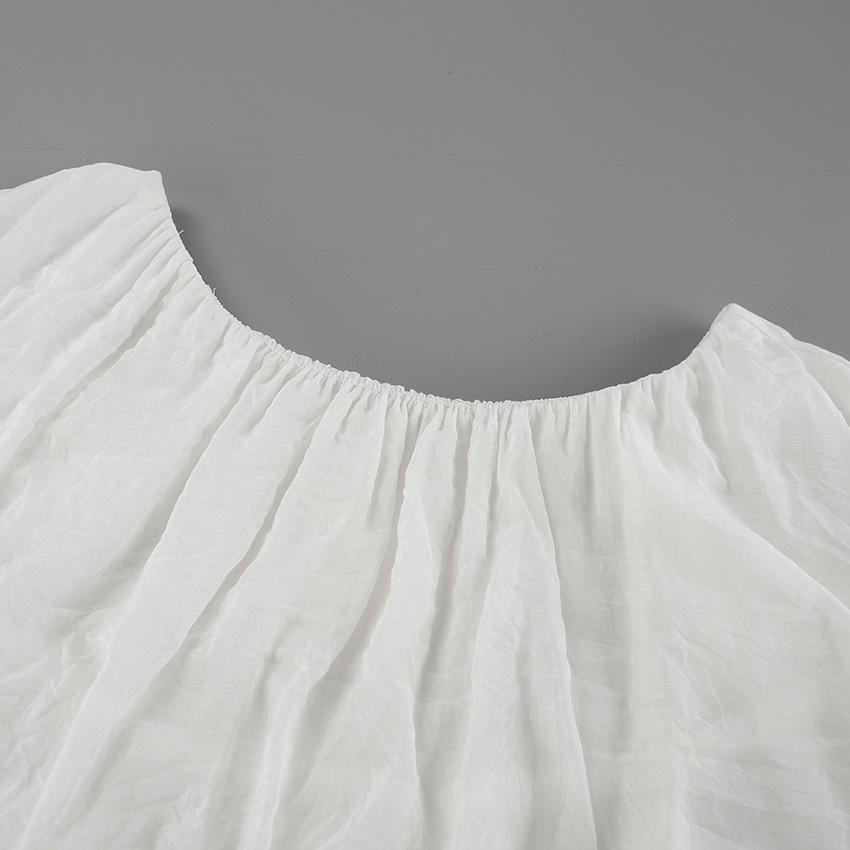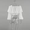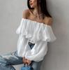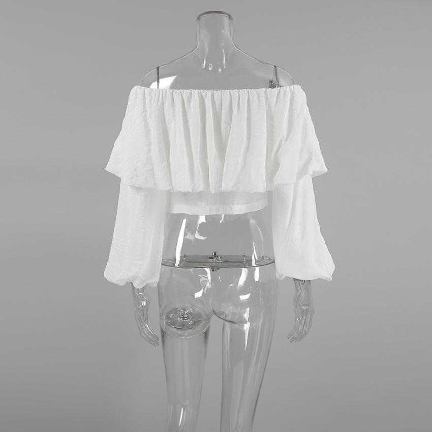 Camisa informal sexy de moda con cuello de un solo personaje y mangas abullonadas, blanca, estilo europeo y americano, con hombros descubiertos, para mujer de verano 2024