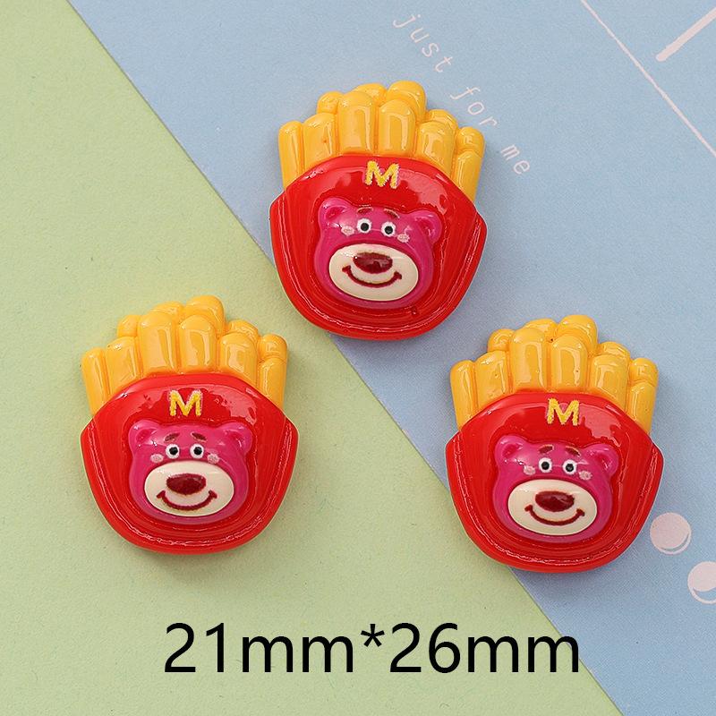 Strawberry bear mixed style, French fries, White flowers, Pink flowers, Hug the chest with both hands, Drink m...