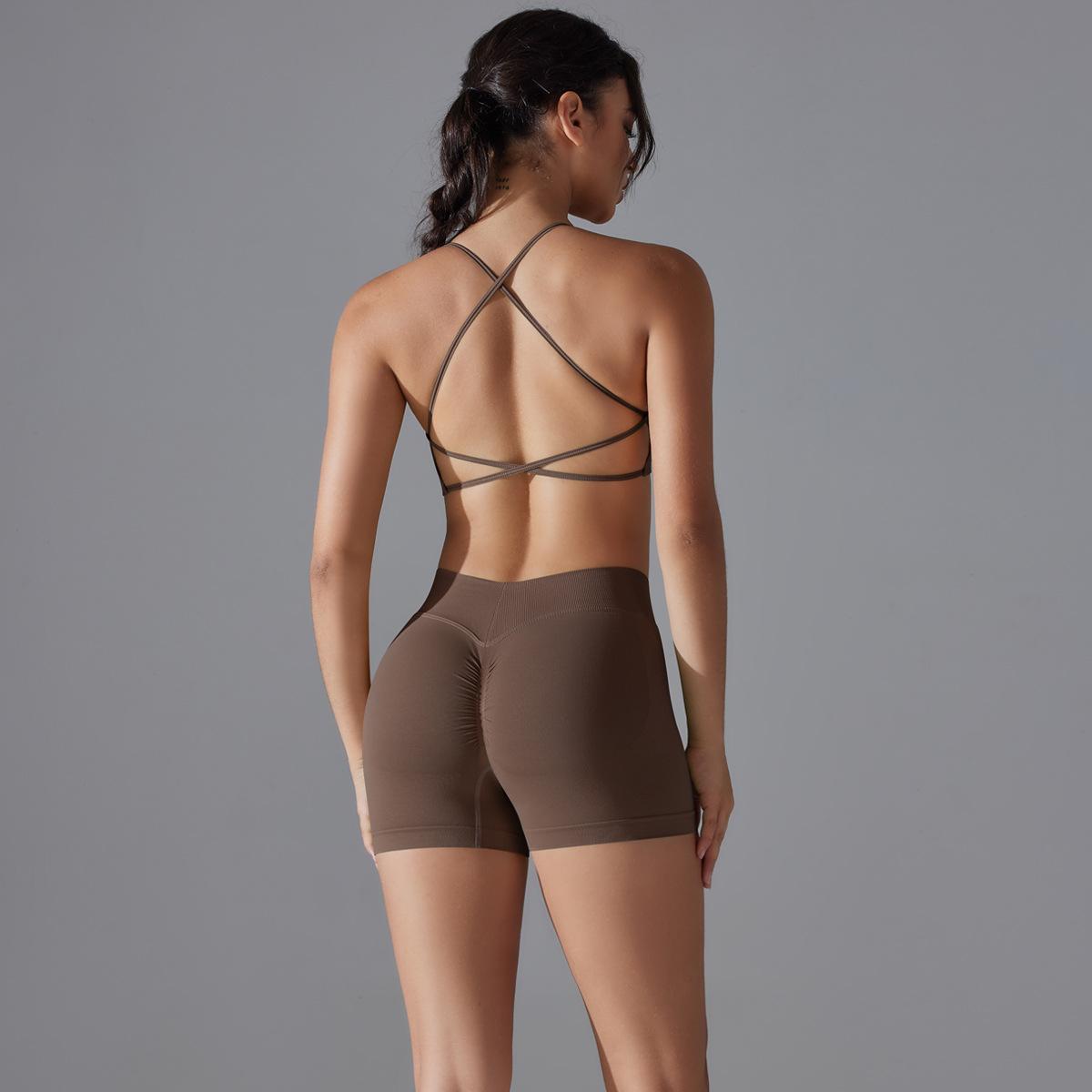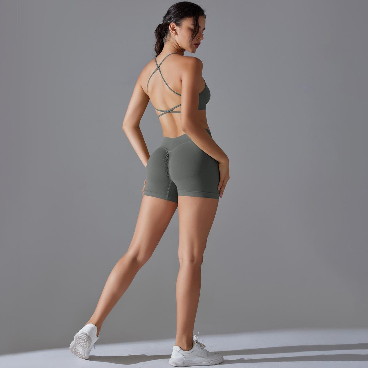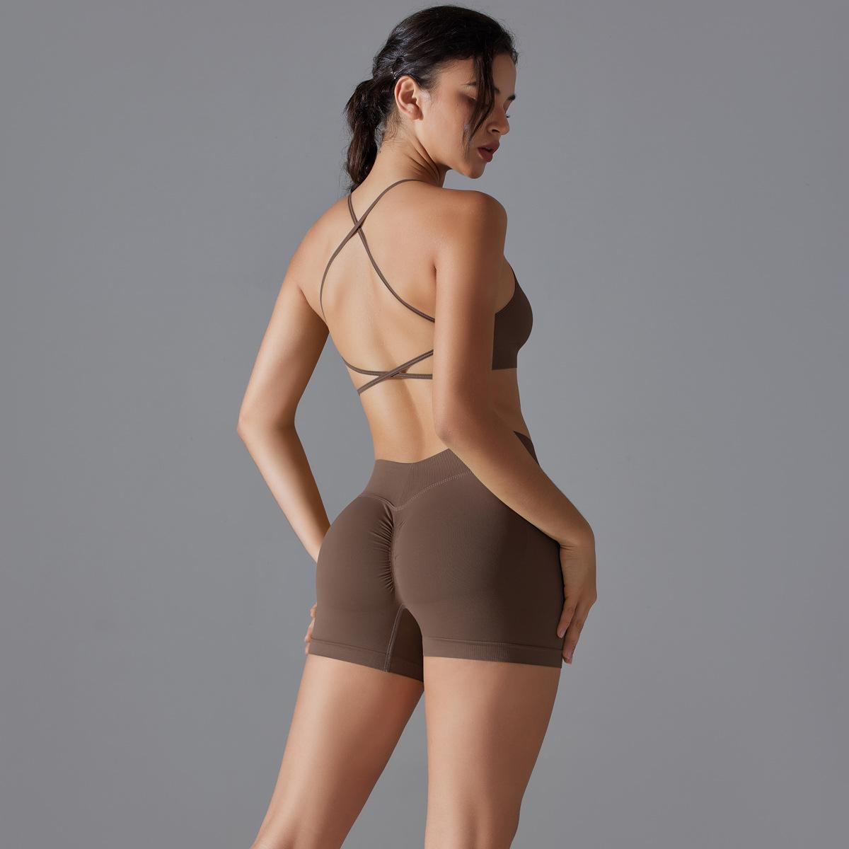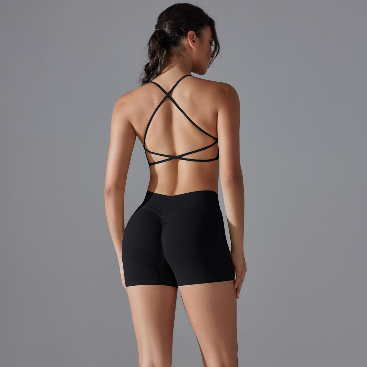 Traje de yoga europeo y americano sin costuras con espalda cruzada, transpirable, de secado rápido, ajustado, corto, deportivo, para correr y hacer ejercicio.