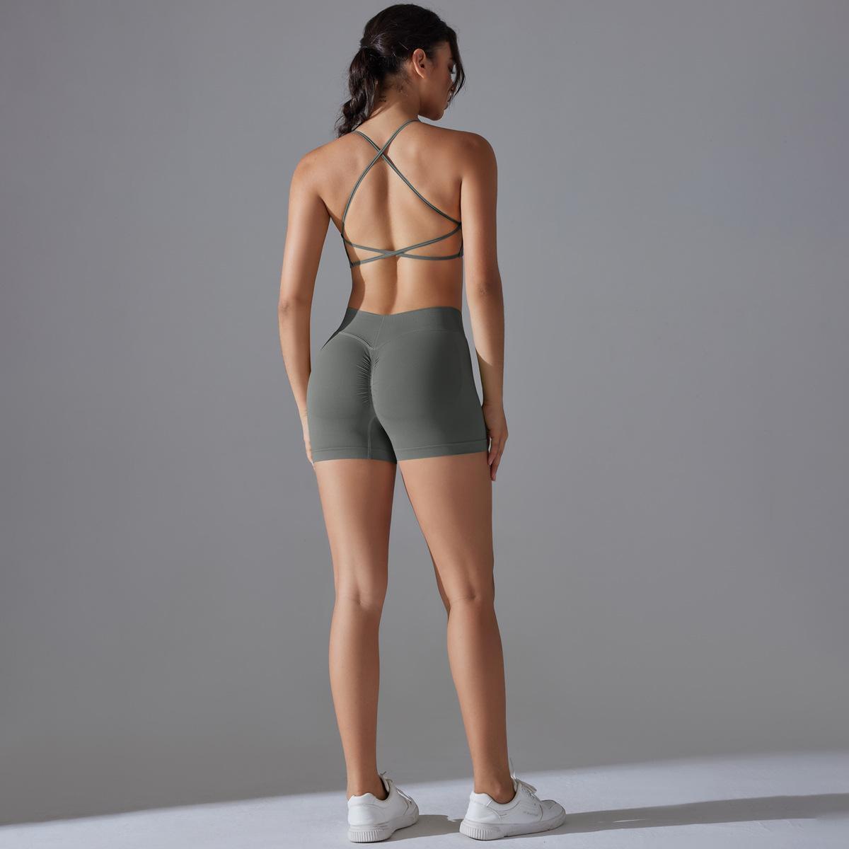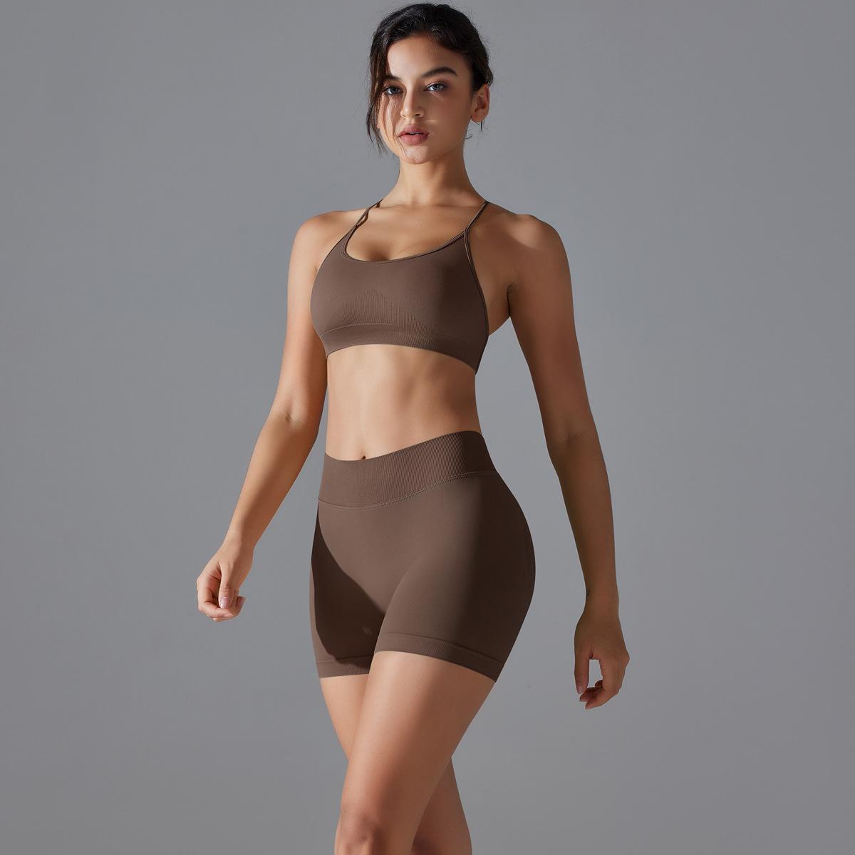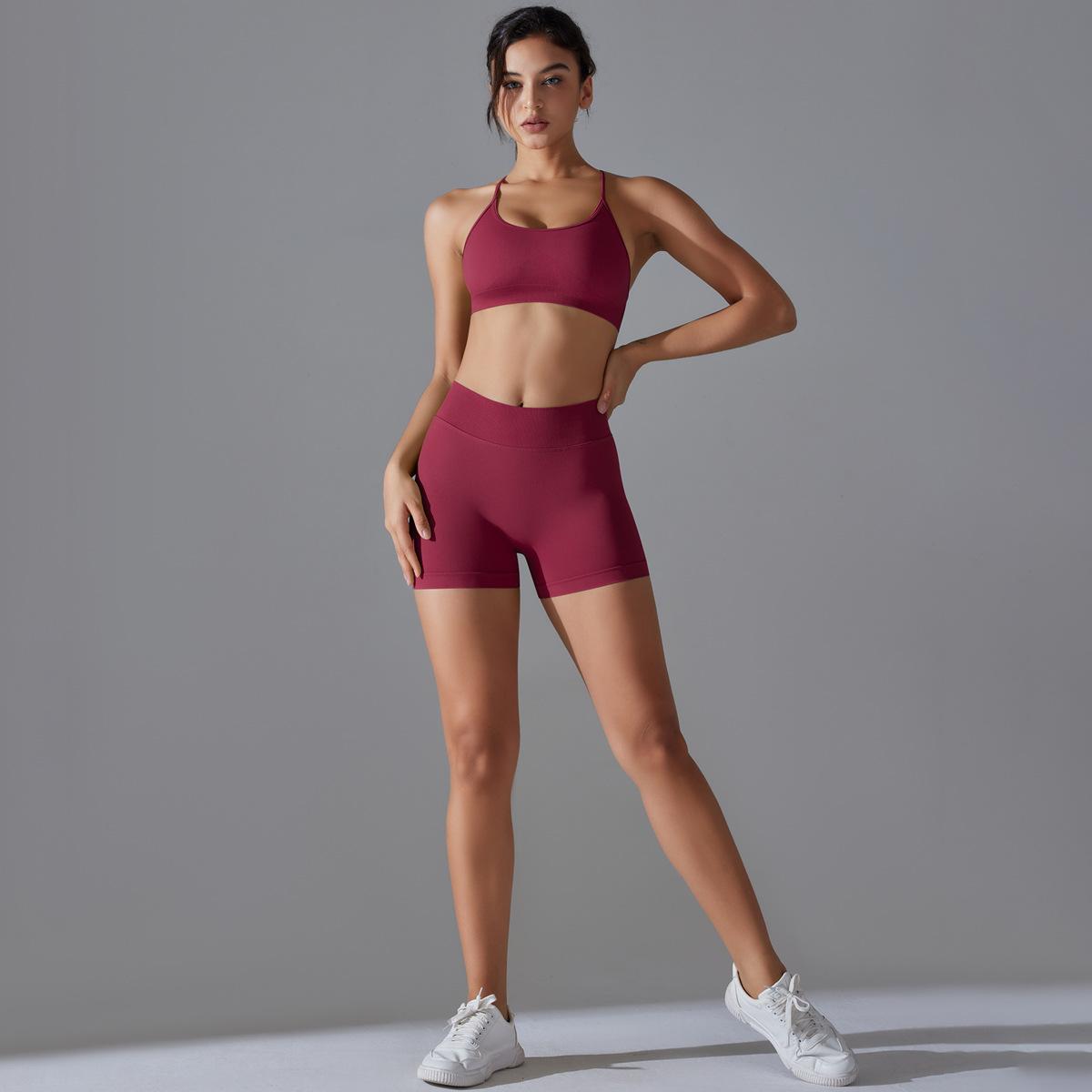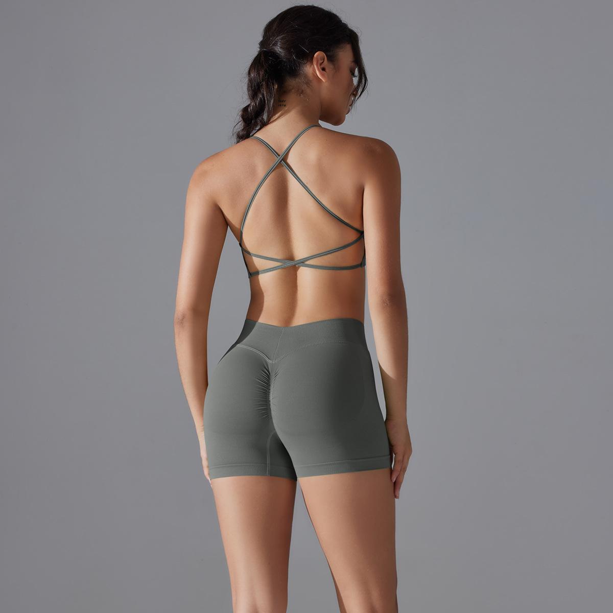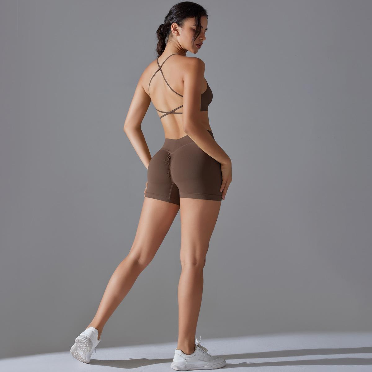 Traje de yoga europeo y americano sin costuras con espalda cruzada, transpirable, de secado rápido, ajustado, corto, deportivo, para correr y hacer ejercicio.